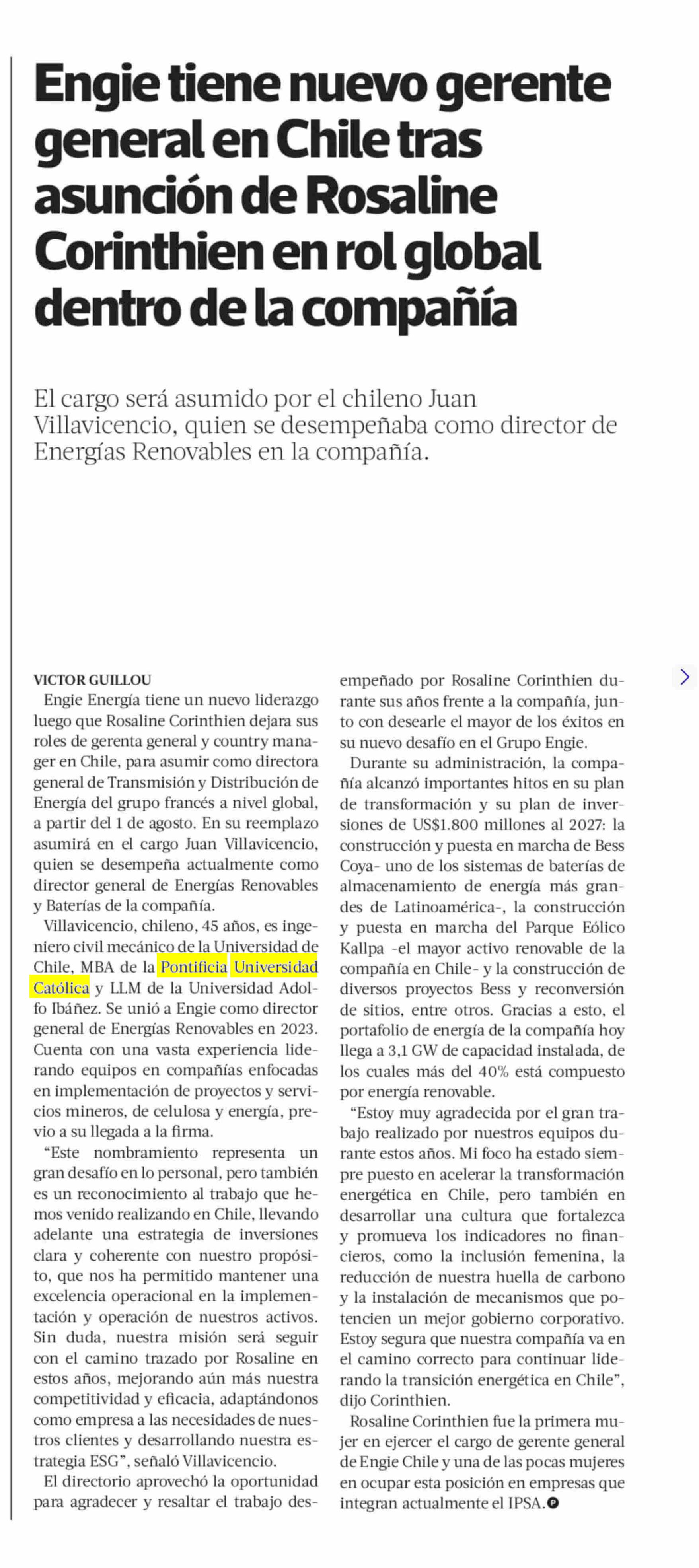 | Título: | Engjie tiene nuevo gerente general en Chile tras asunción de Rosaline Corinthien en rol global dentro de la compañía |
