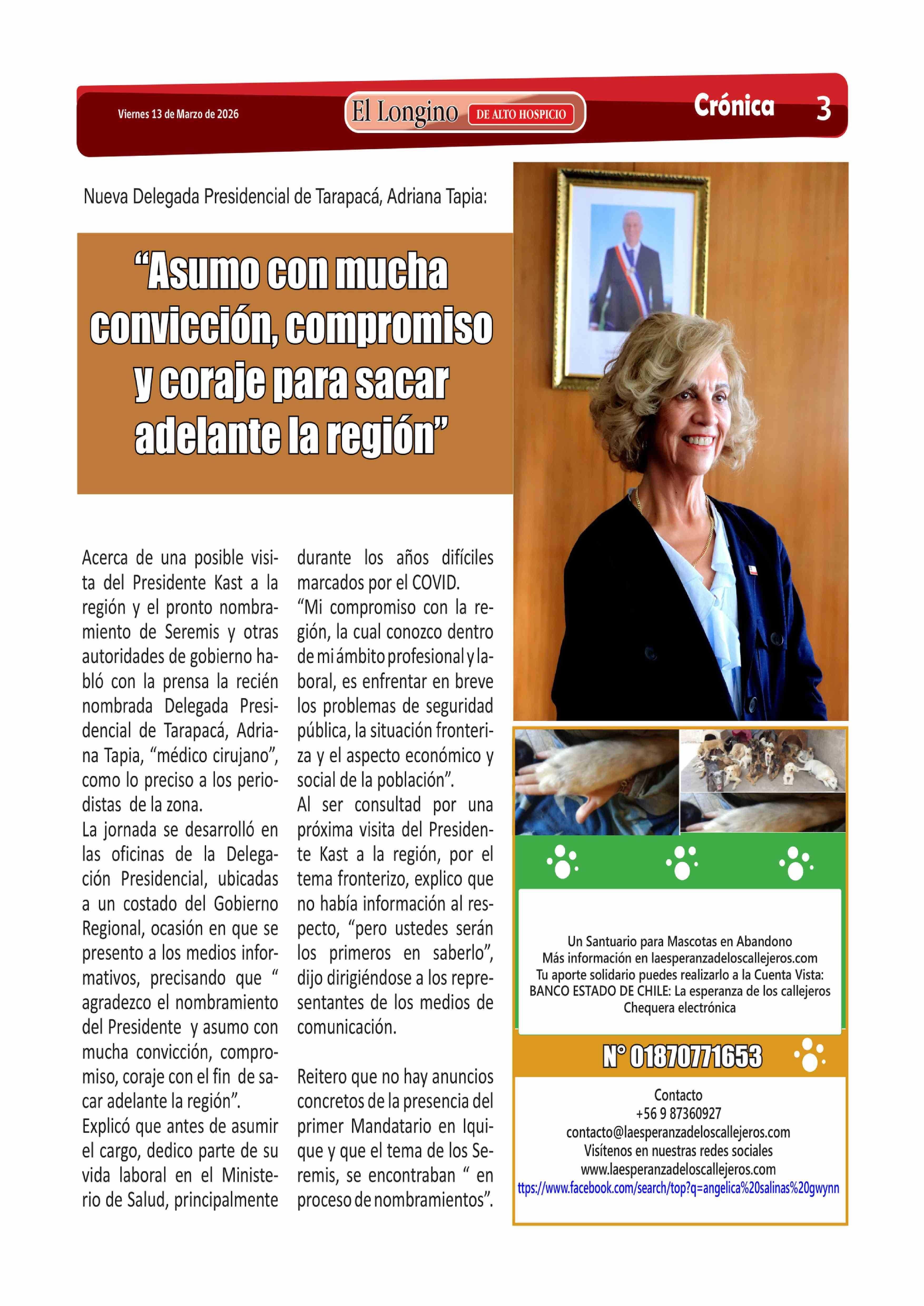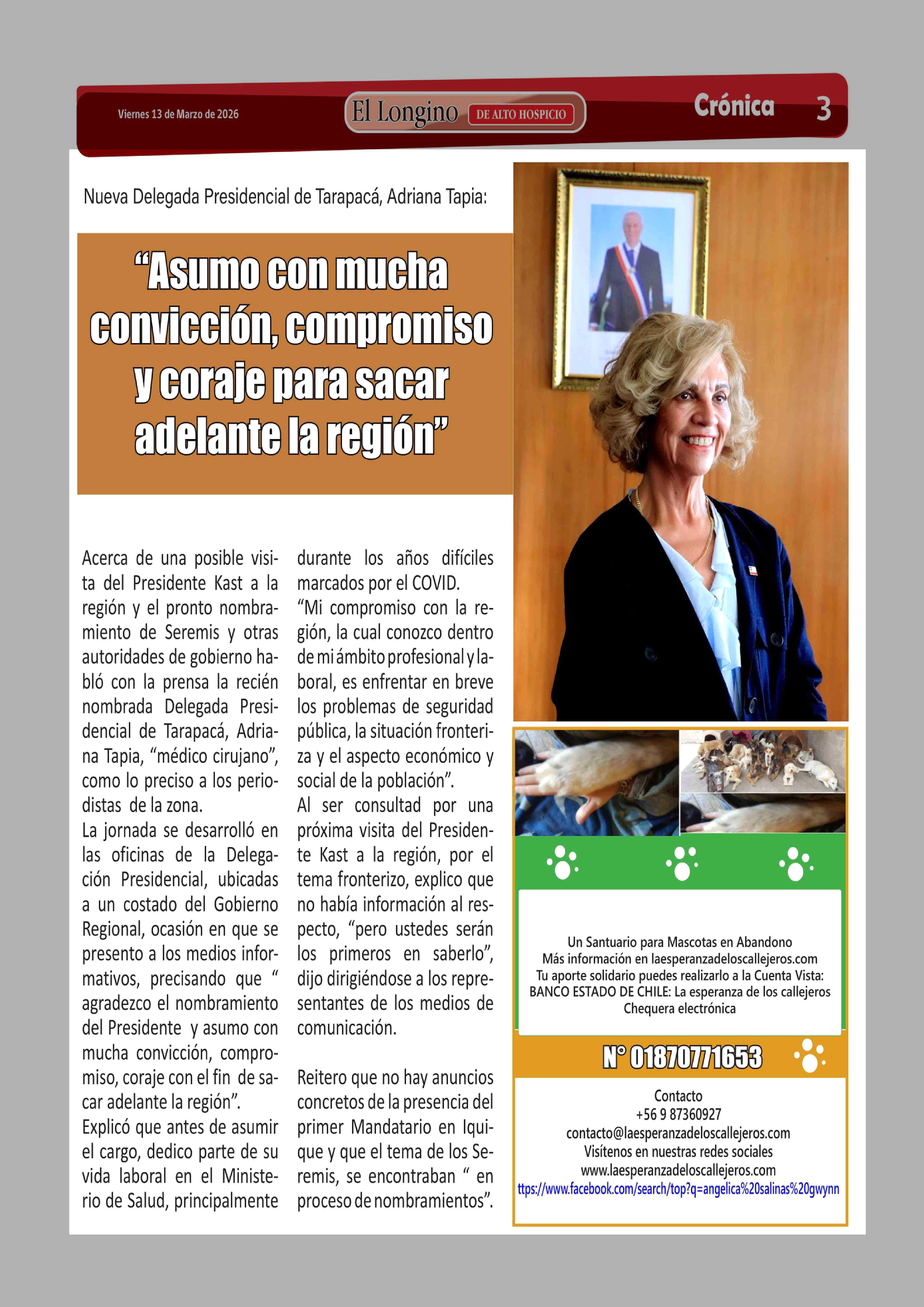 | Título: | "Asumo con mucha convicción, compromiso y coraje para sacar adelante la región" |