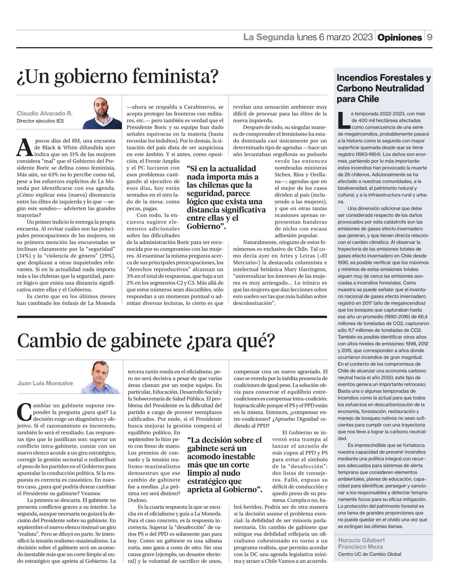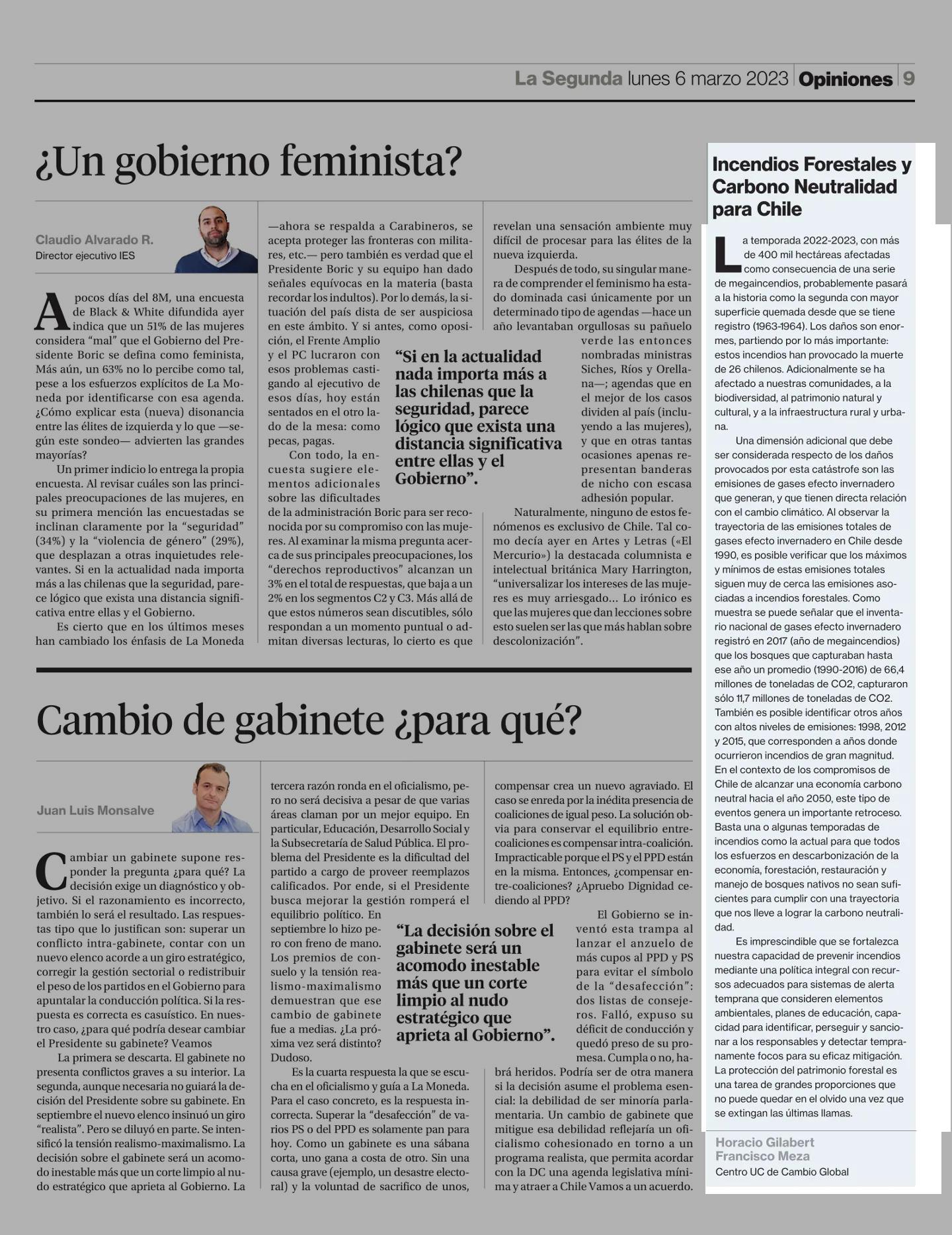 Incendios Forestales y Carbono Neutralidad para Chile 06-03-2023 La Segunda |
