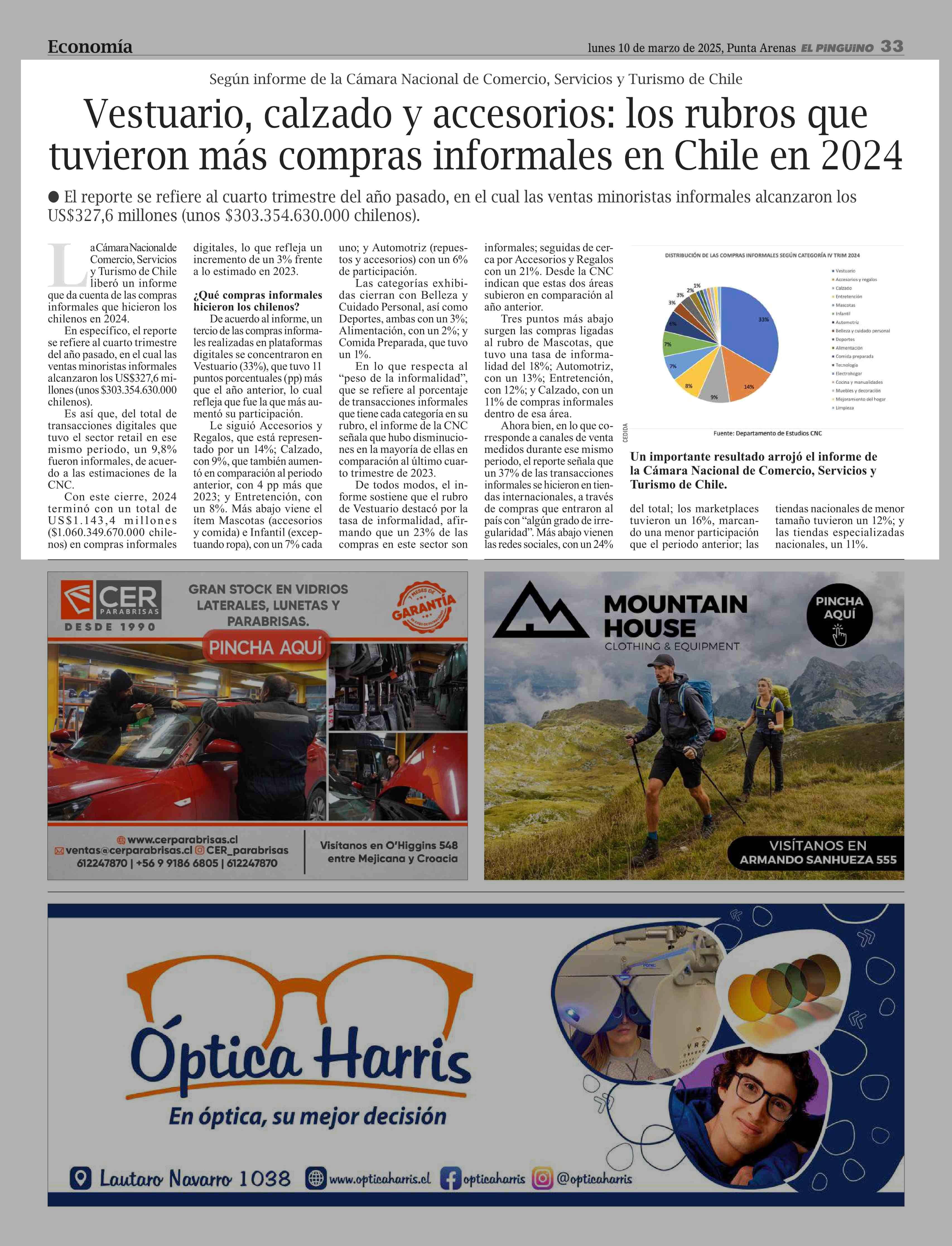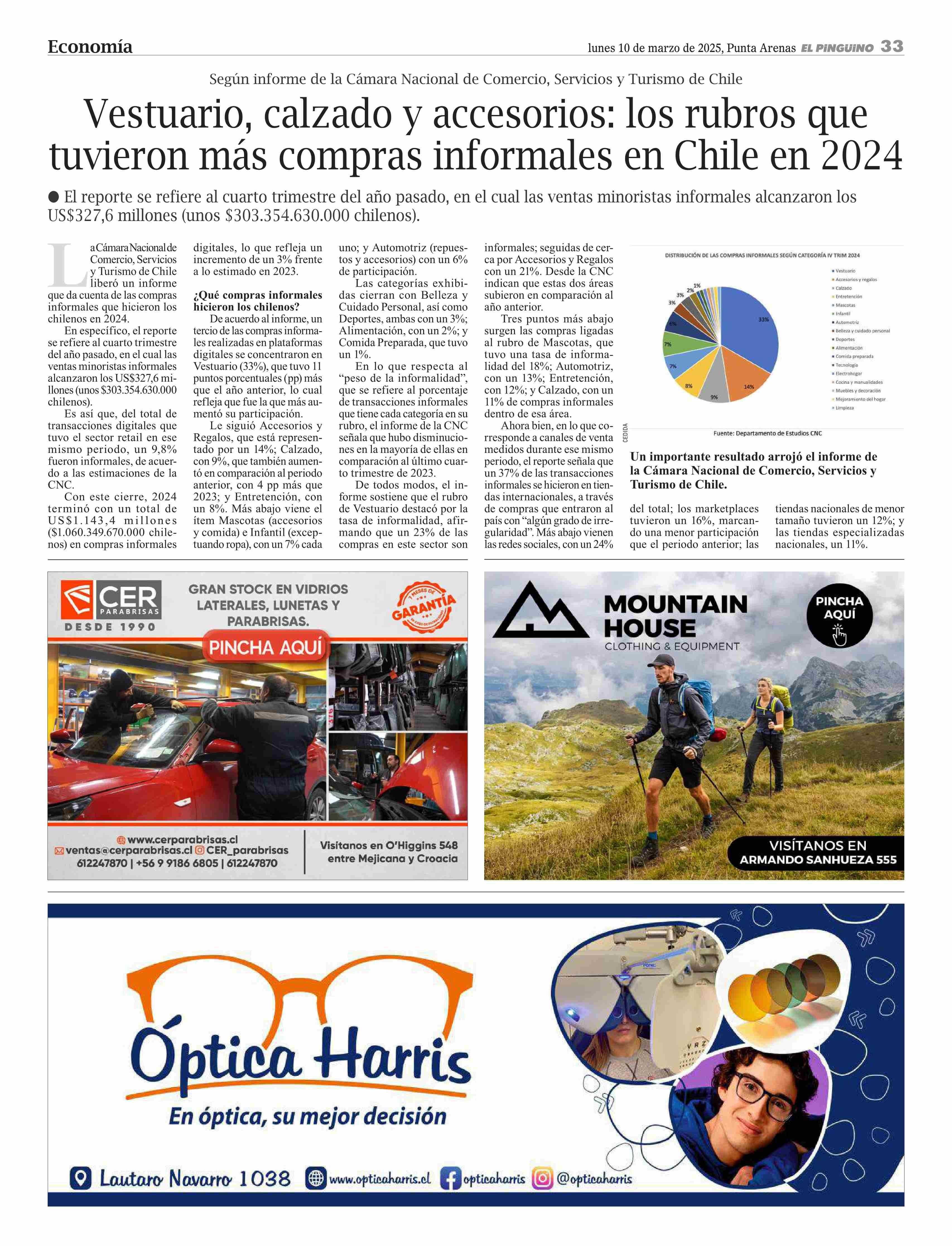 Vestuario, calzado y accesorios: los rubros que tuvieron más compras informales en Chile en 2024 10-03-2025 El Pingüino |