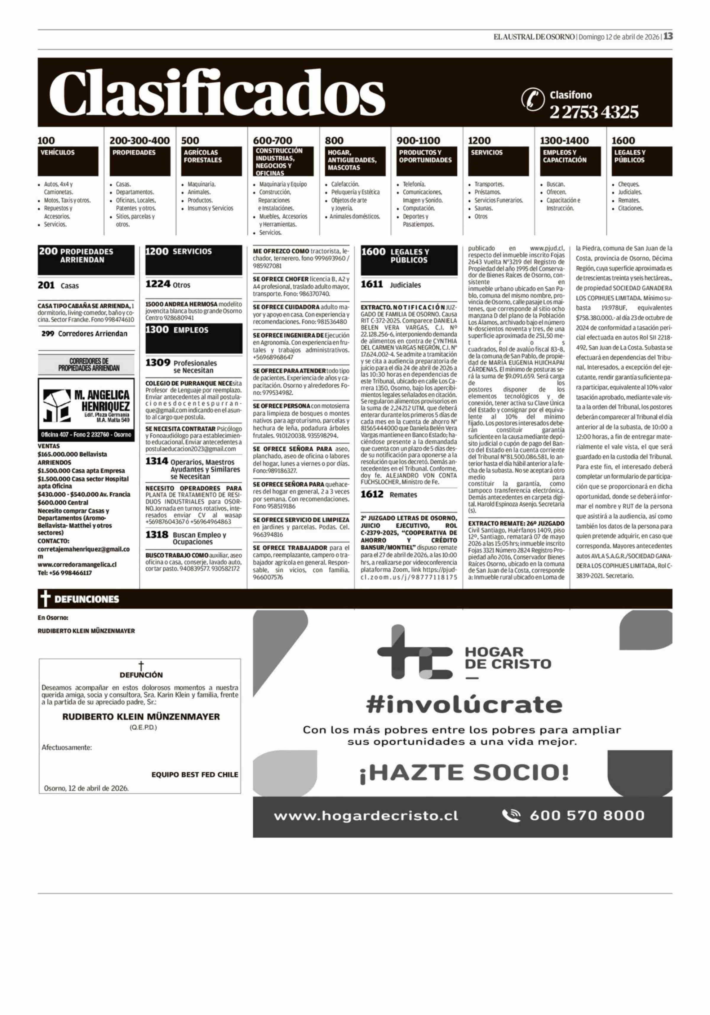 Obituario: + DEFUNCIONES 12-04-2026 El Austral de Osorno |