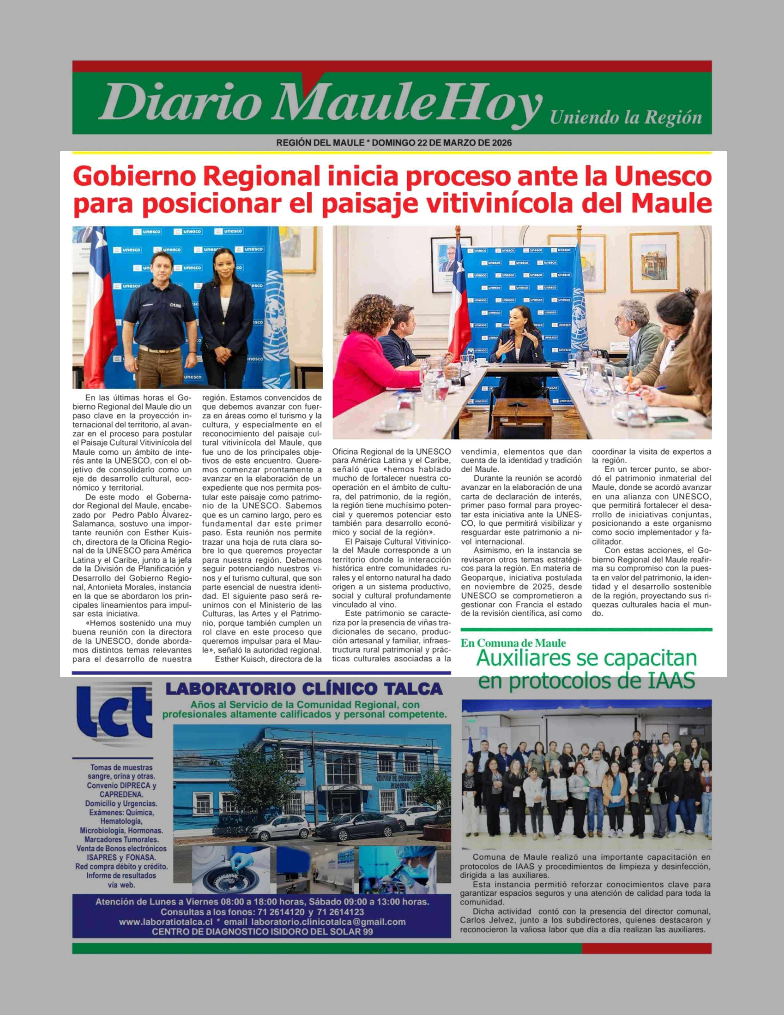 Gobierno Regional inicia proceso ante la Unesco para posicionar el paisaje vitivinícola del Maule 22-03-2026 Maule Hoy |