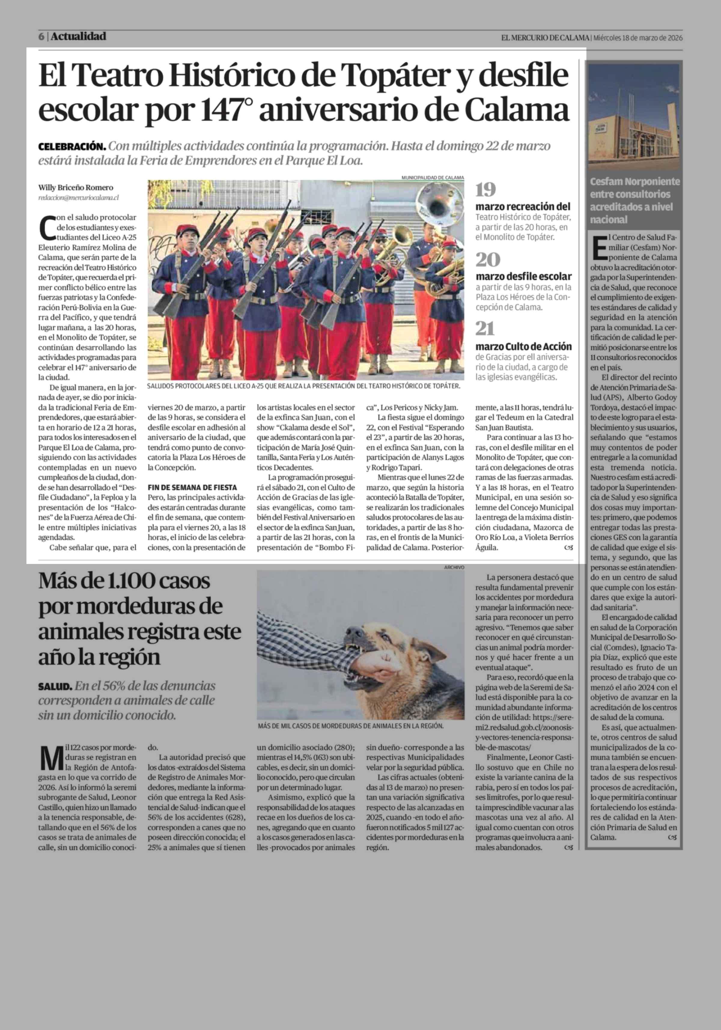 Fecha: 18-03-2026 Sector: Noticia general Región: Región de Antofagasta