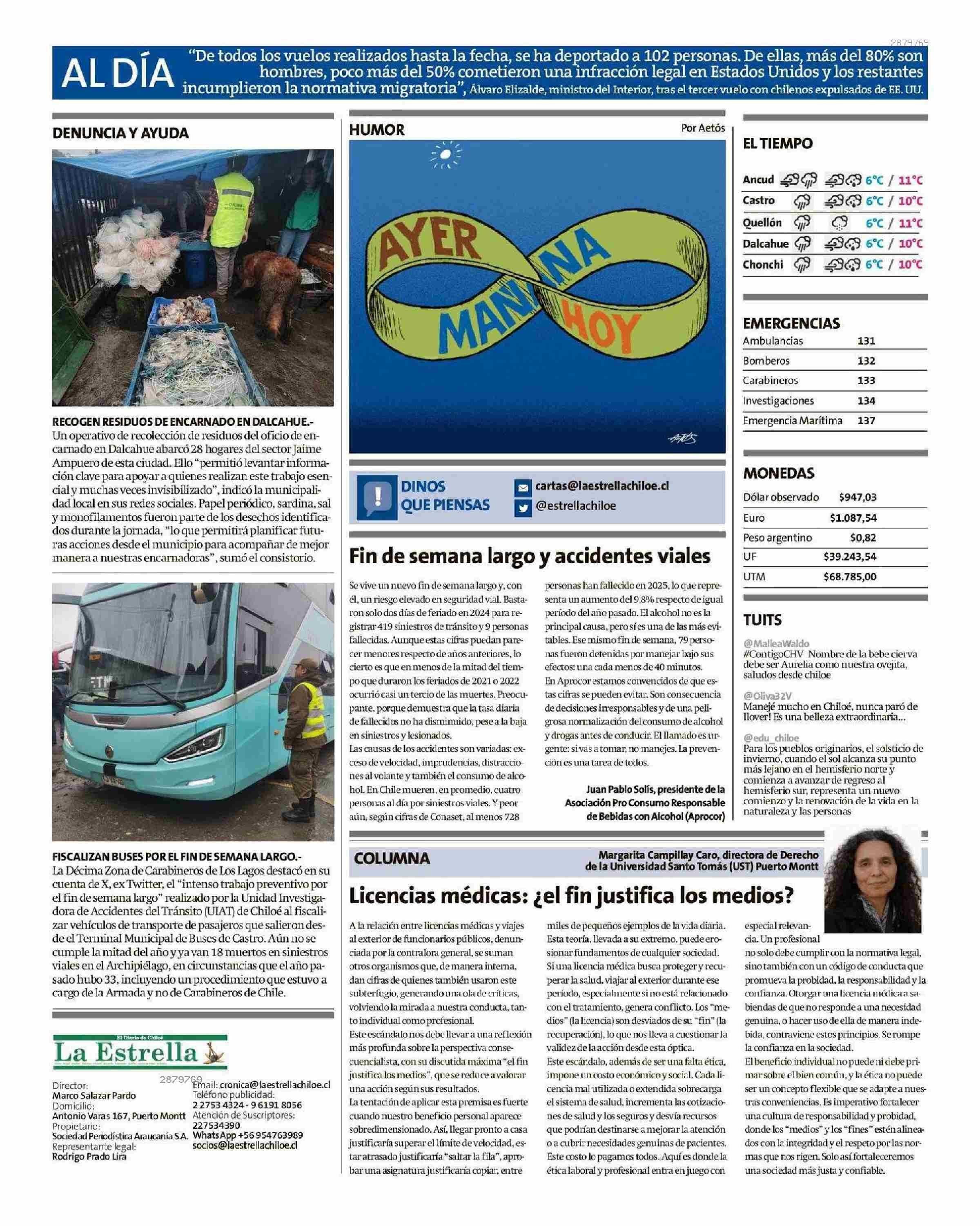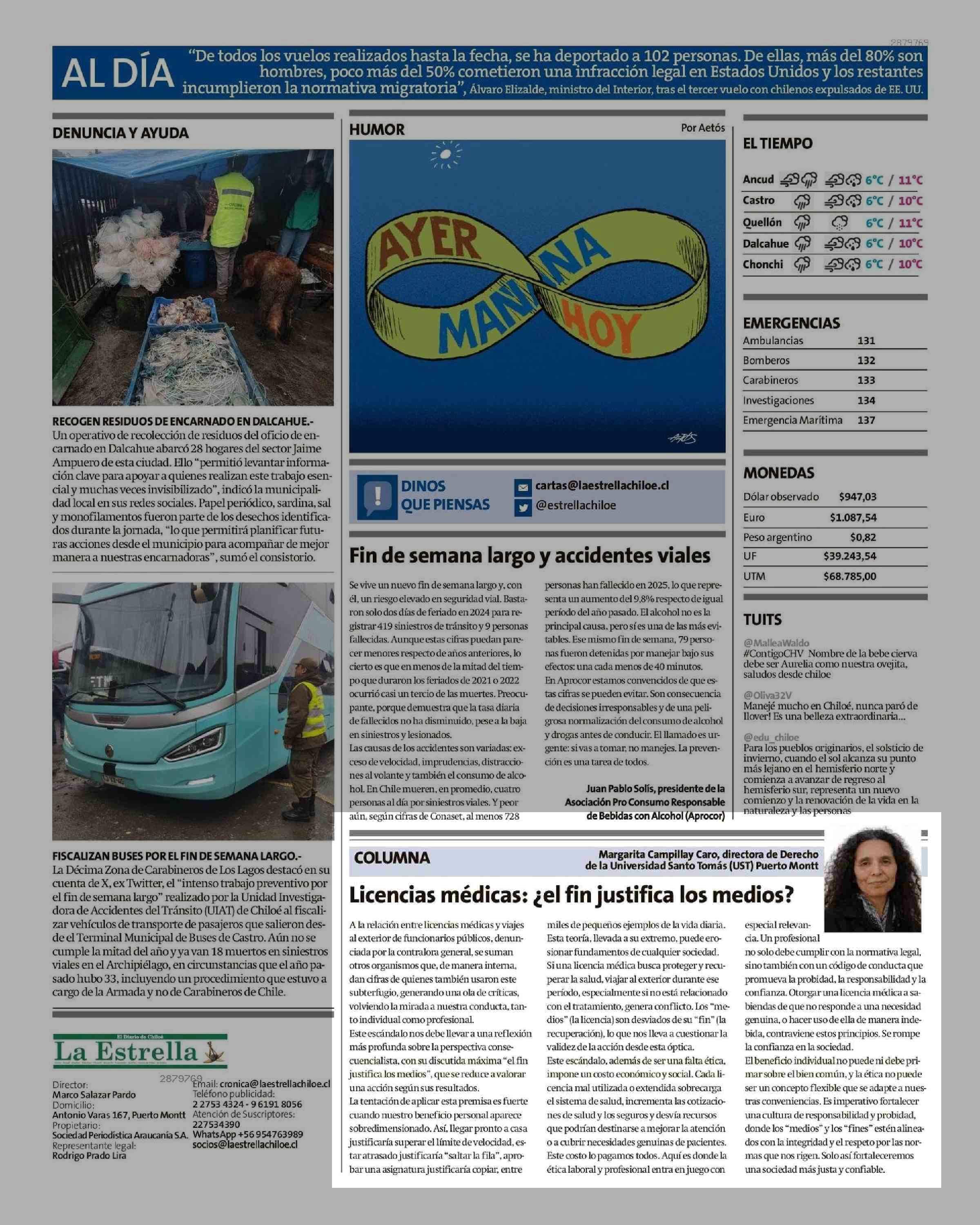 Columnas de Opinión: Licencias médicas: ¿ el fin justifica los medios? 21-06-2025 La Estrella de Chiloé |