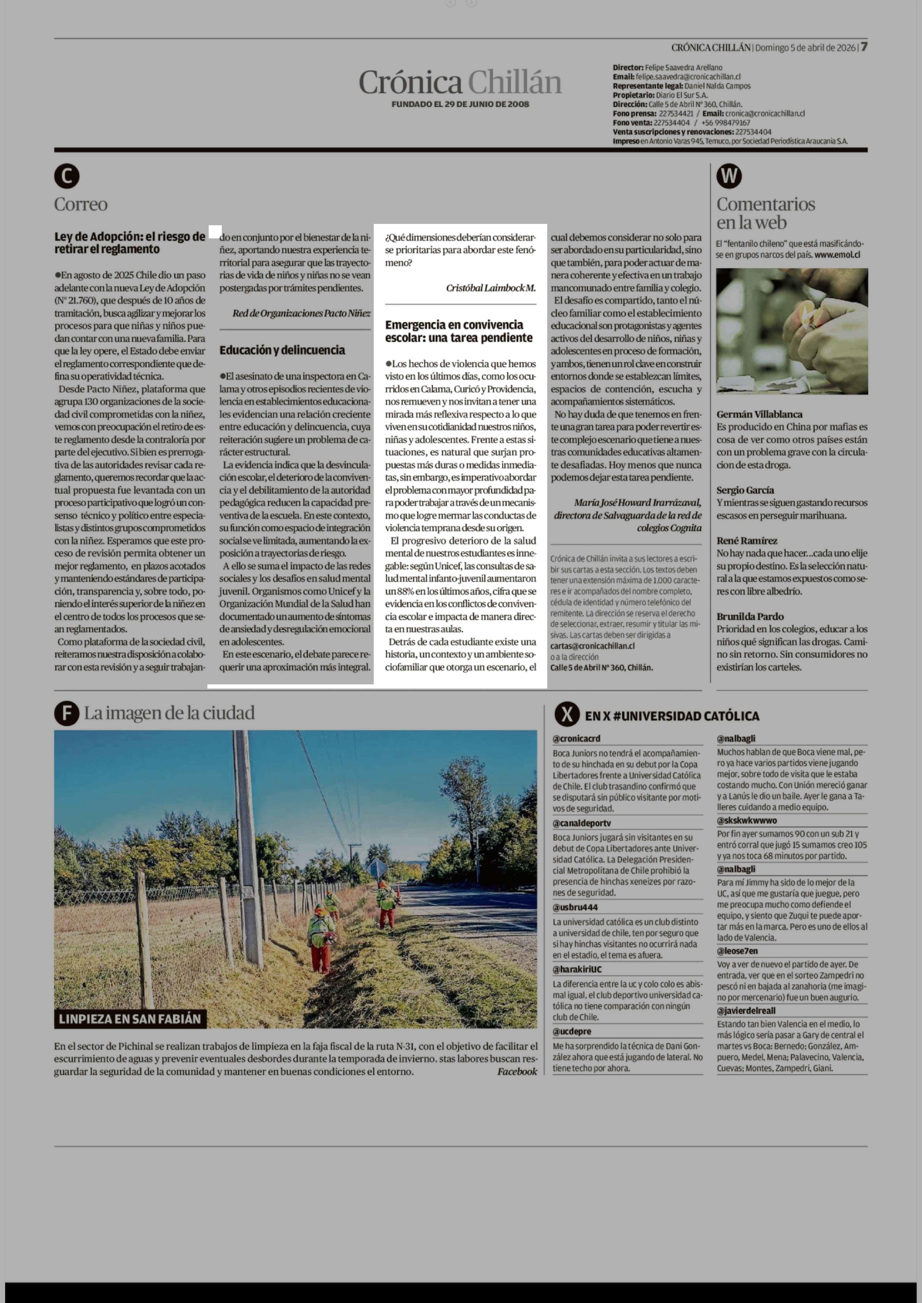 CARTAS: Educación y delincuencia 05-04-2026 Crónica de Chillán |