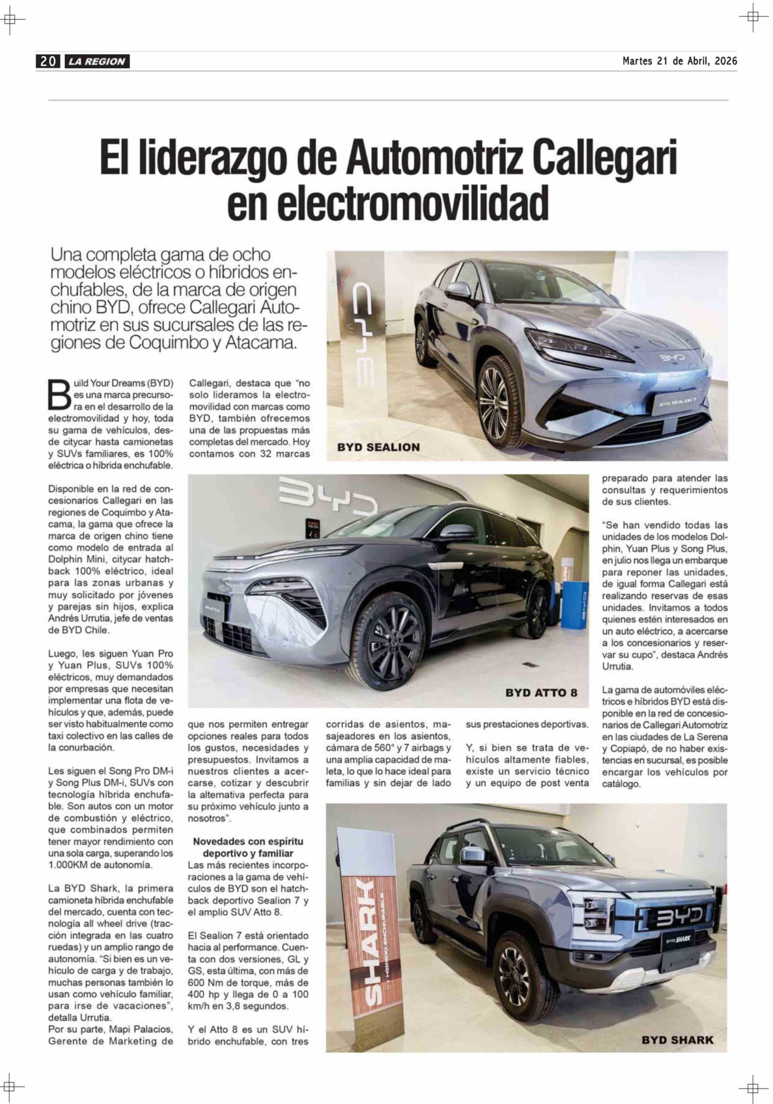 El liderazgo de Automotriz Callegari en electromovilidad 21-04-2026 Diario la Región |