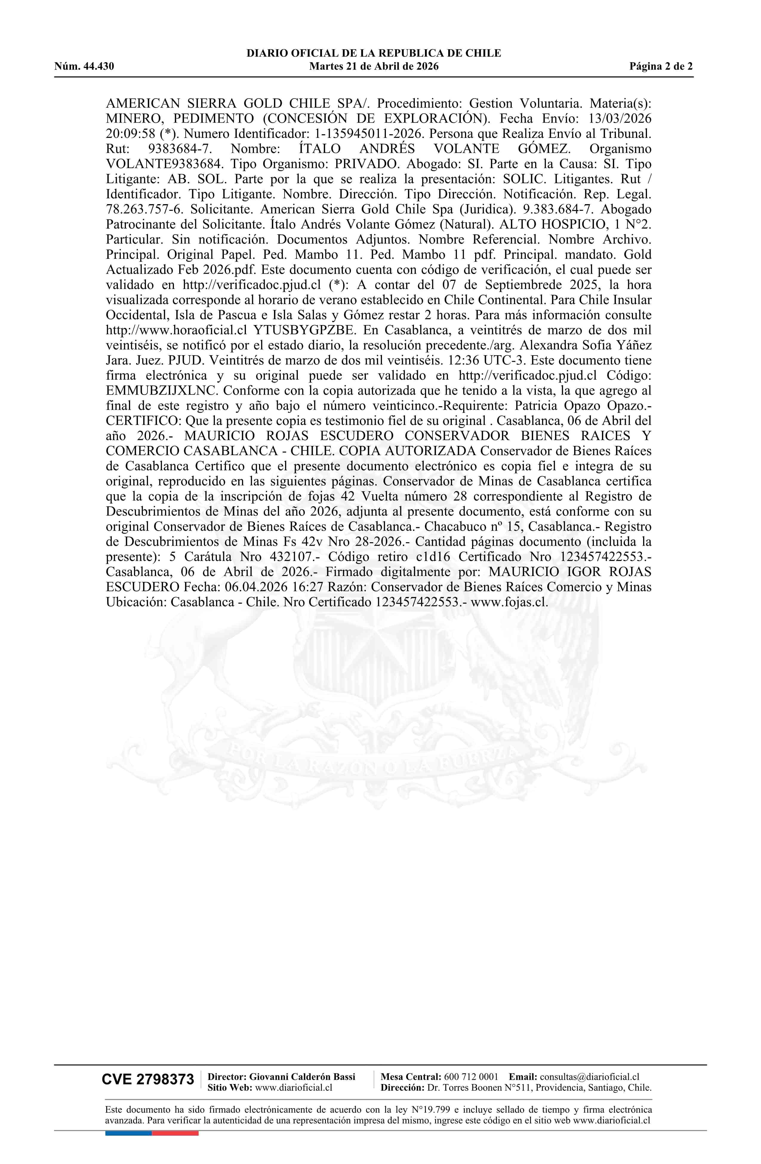 21-04-2026 DIARIO OFICIAL CHILE - BOLETÍN OFICIAL DE MINERÍA