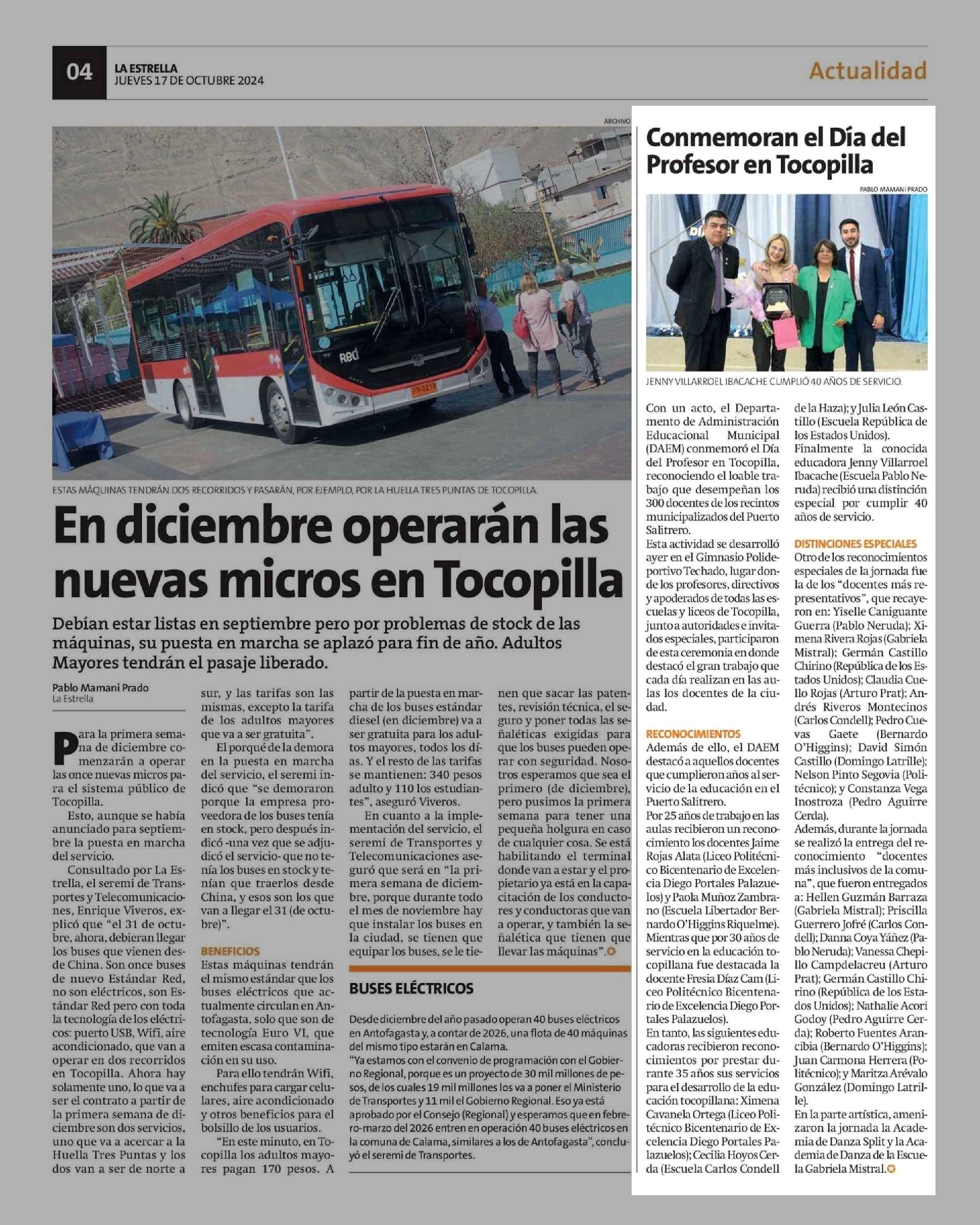 Conmemoran el Día del Profesor en Tocopilla 17-10-2024 La Estrella de Antofagasta |