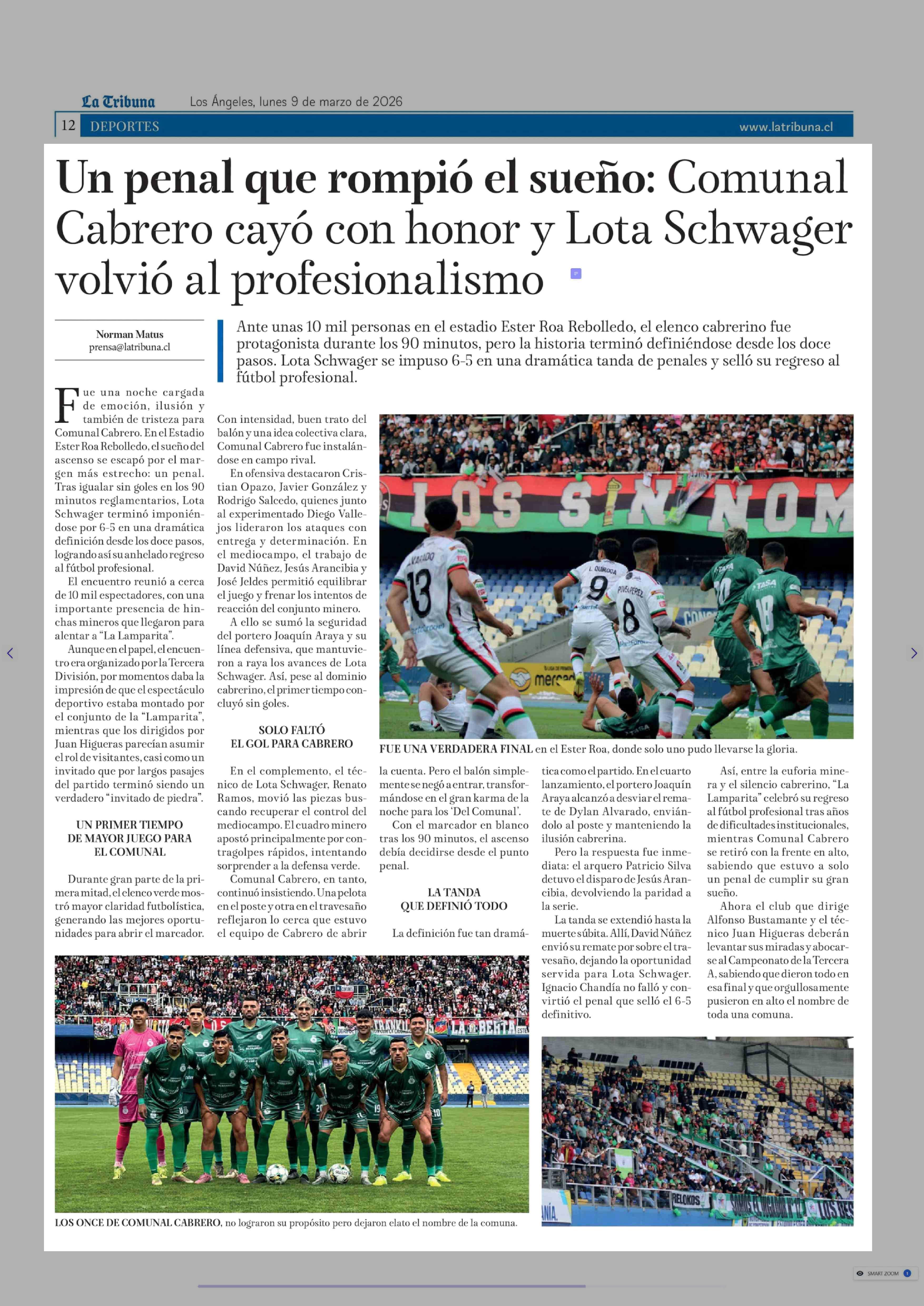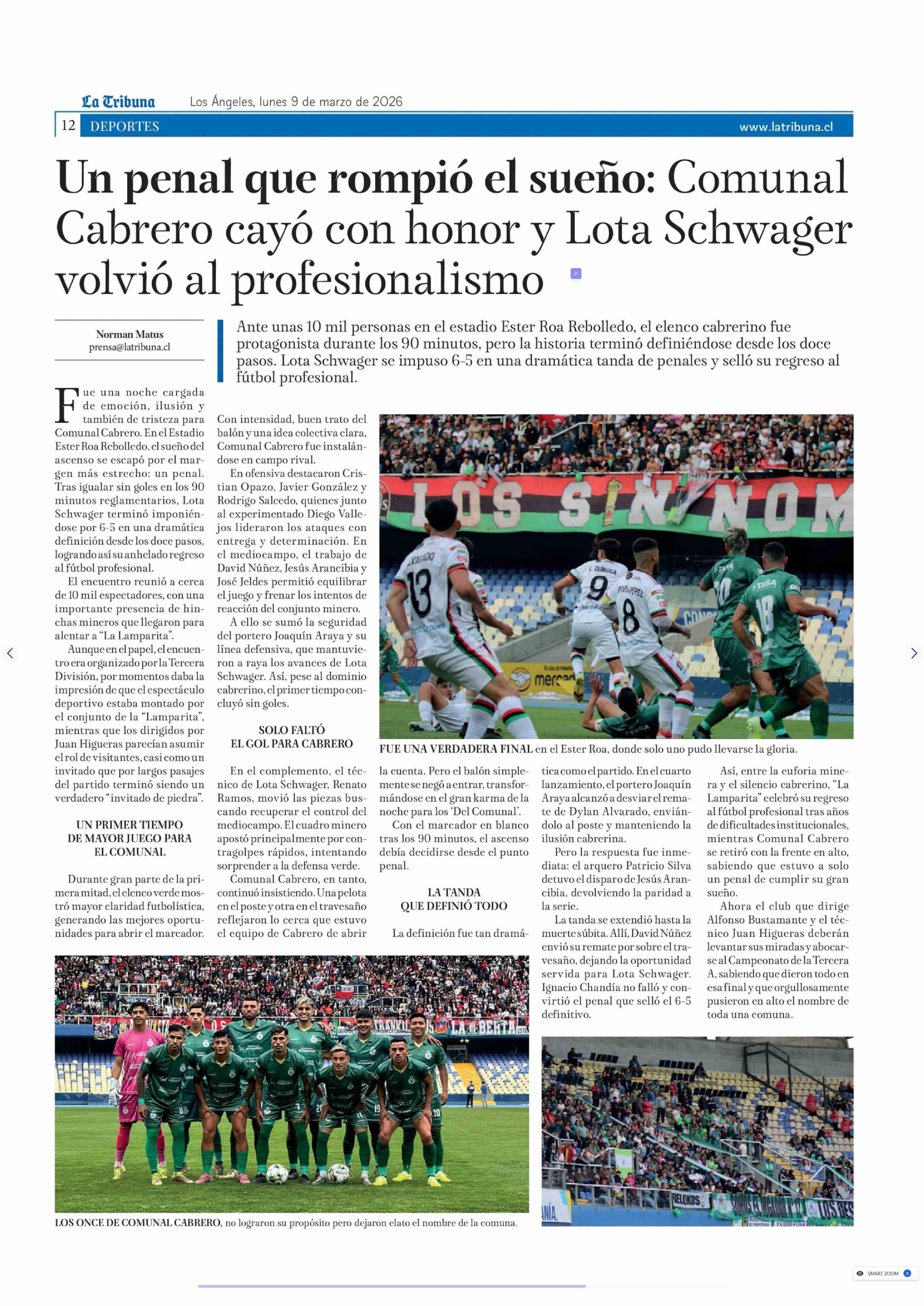 Título: Un penal que rompió el sueño: Comunal Cabrero cayó con honor y Lota Schwager volvió al profesionalismo