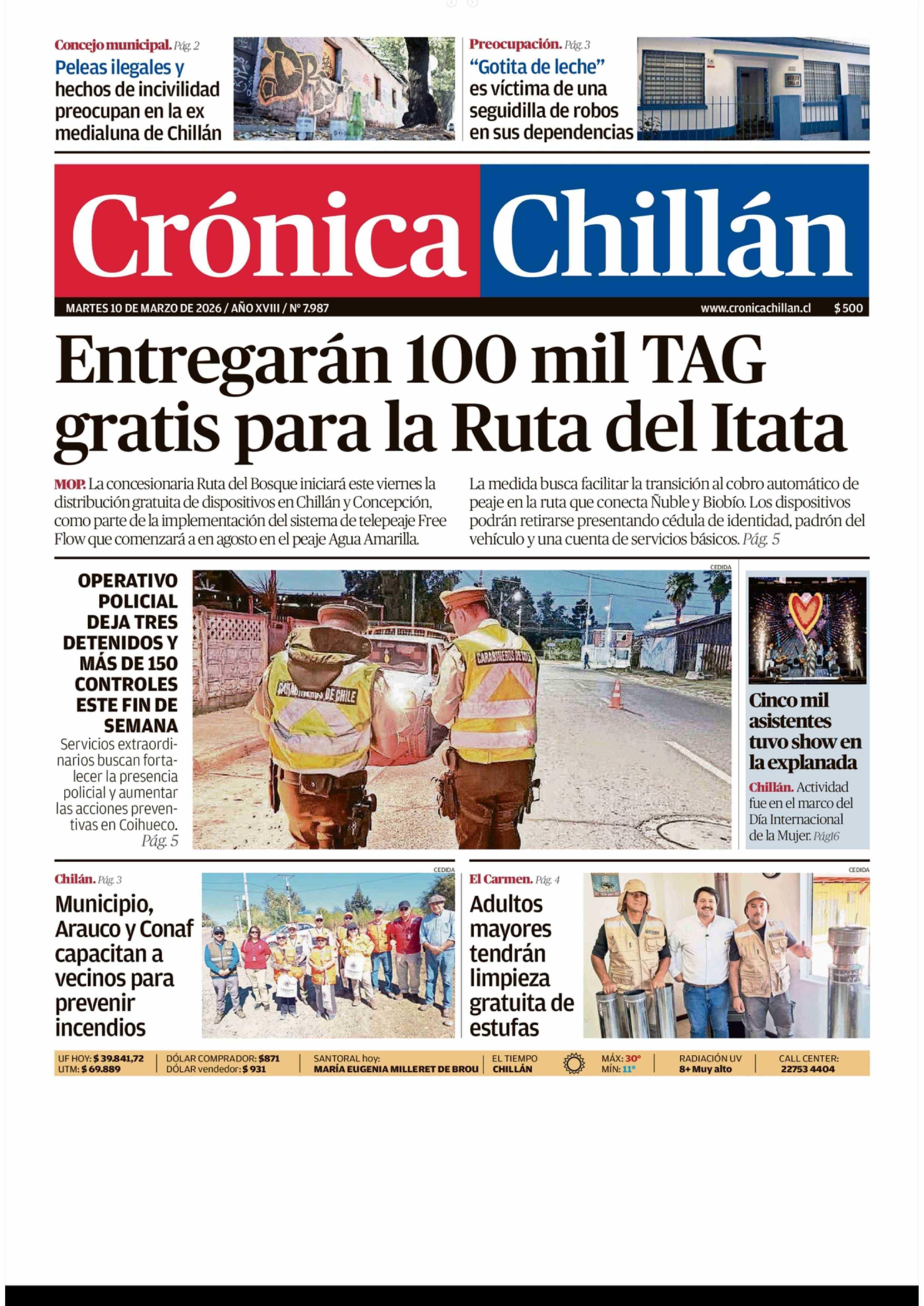 PORTADA CRÓNICA CHILLÁN CHILE 10-03-2026 Crónica de Chillán |