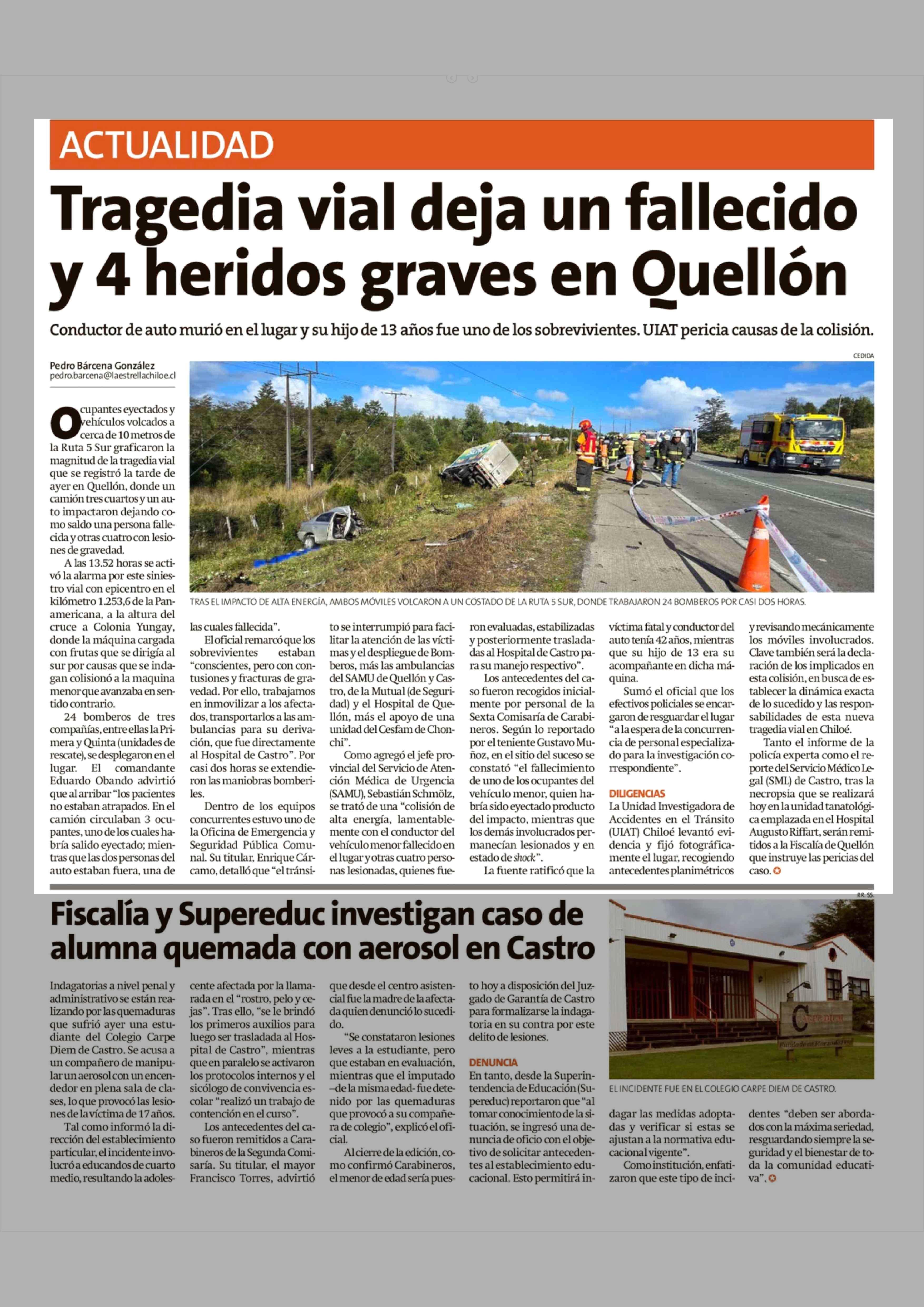 | Título: | Tragedia vial deja un fallecido y 4 heridos graves en Quellón |