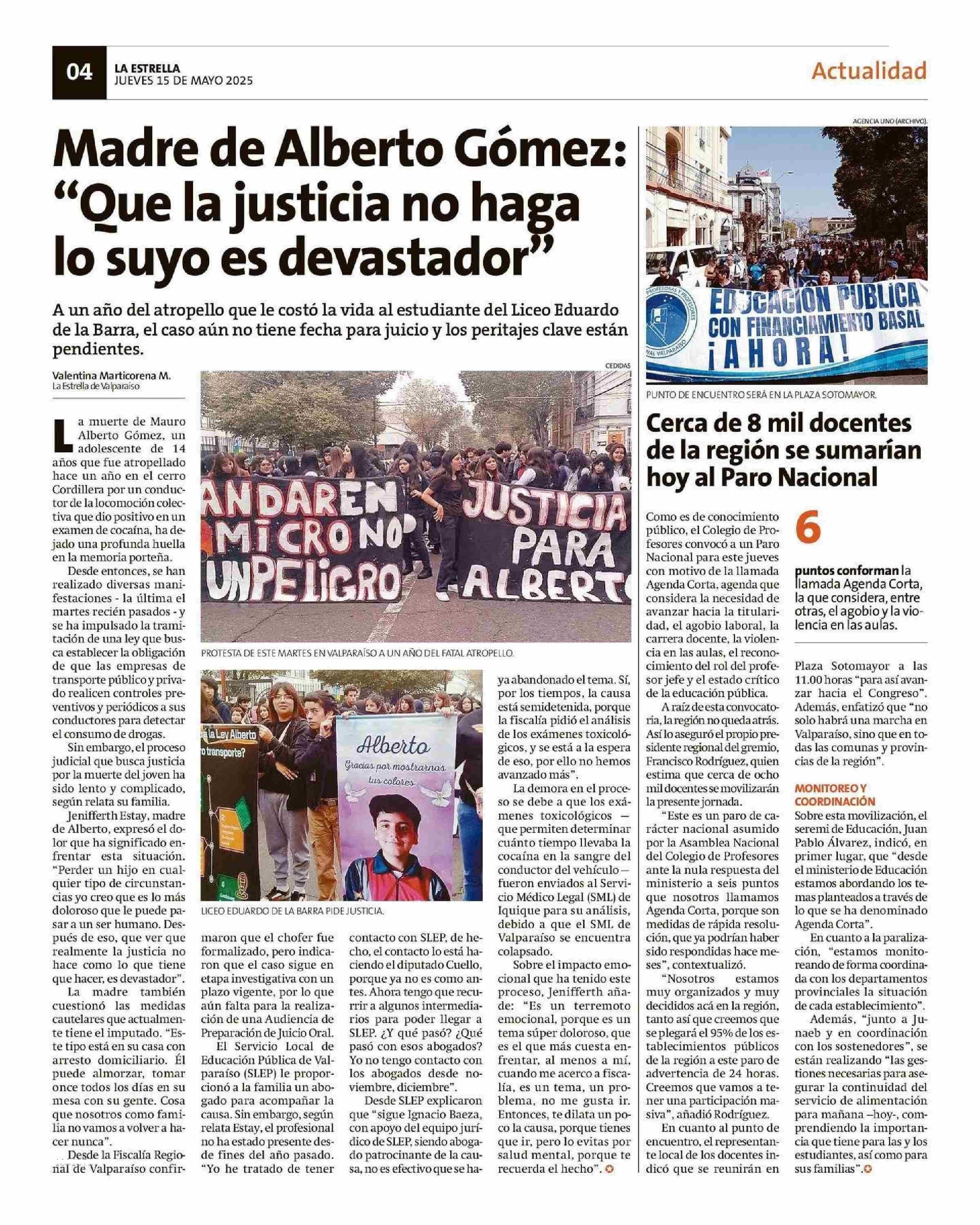 Cerca de 8 mil docentes de la región se sumarían hoy al Paro Nacional 15-05-2025 La Estrella de Valparaíso |