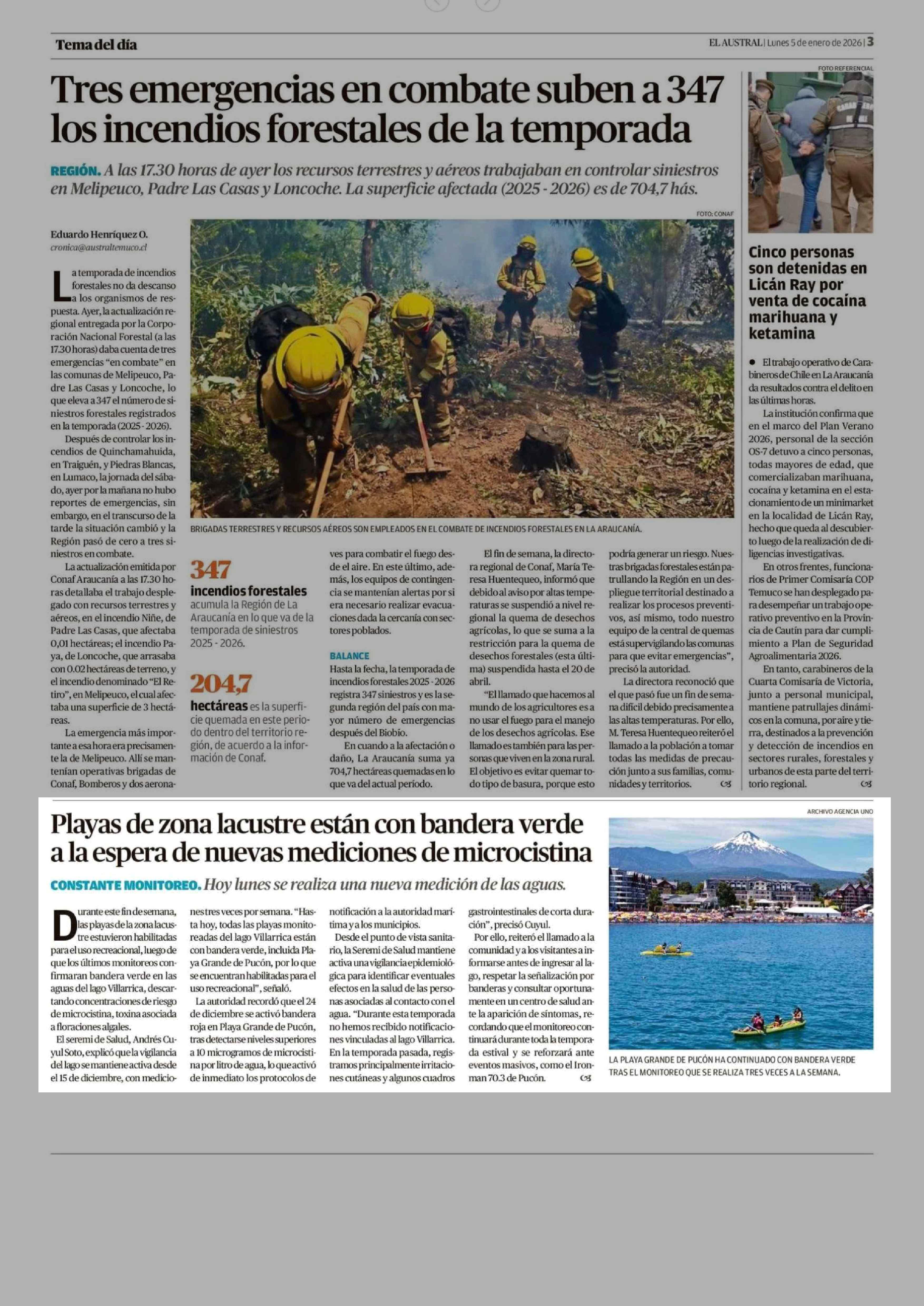 | Fecha: | 05-01-2026 | Sector: | Noticia general | Región: | Región de la Araucanía |