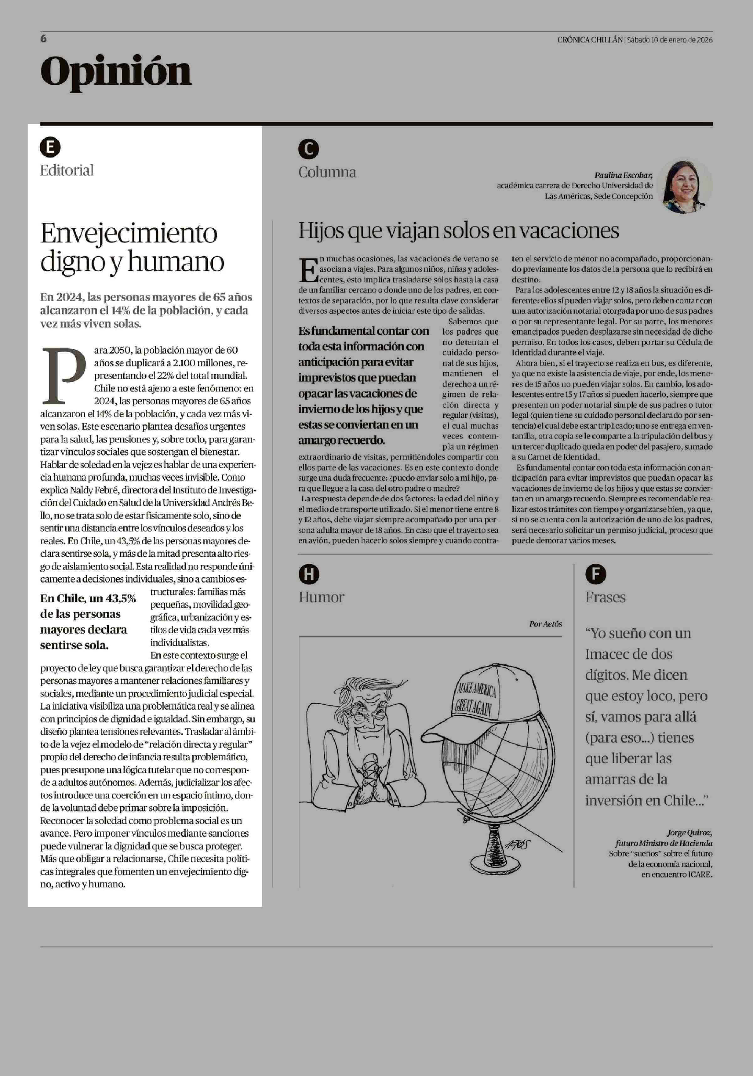 Editorial: Envejecimiento digno y humano 10-01-2026 Crónica de Chillán |