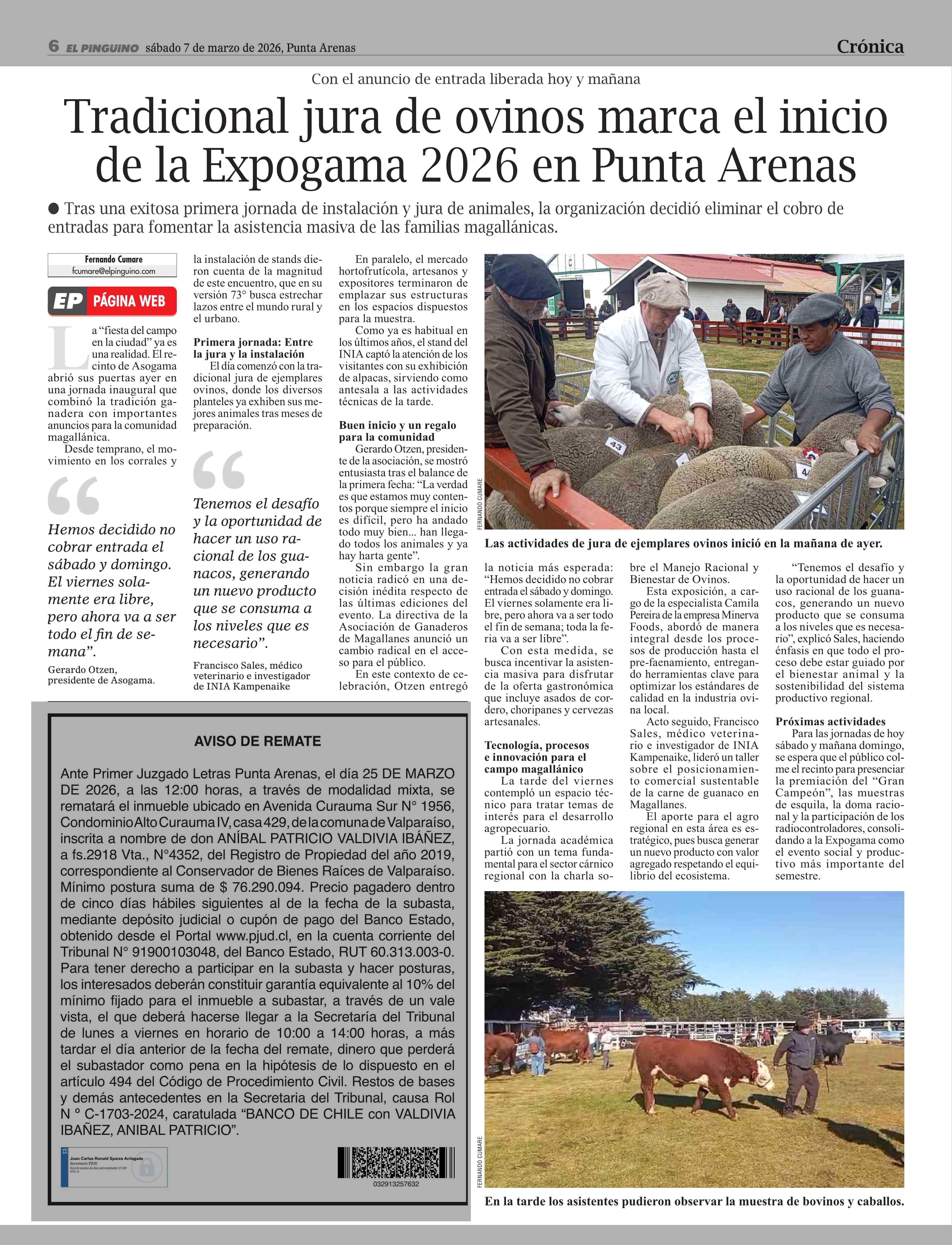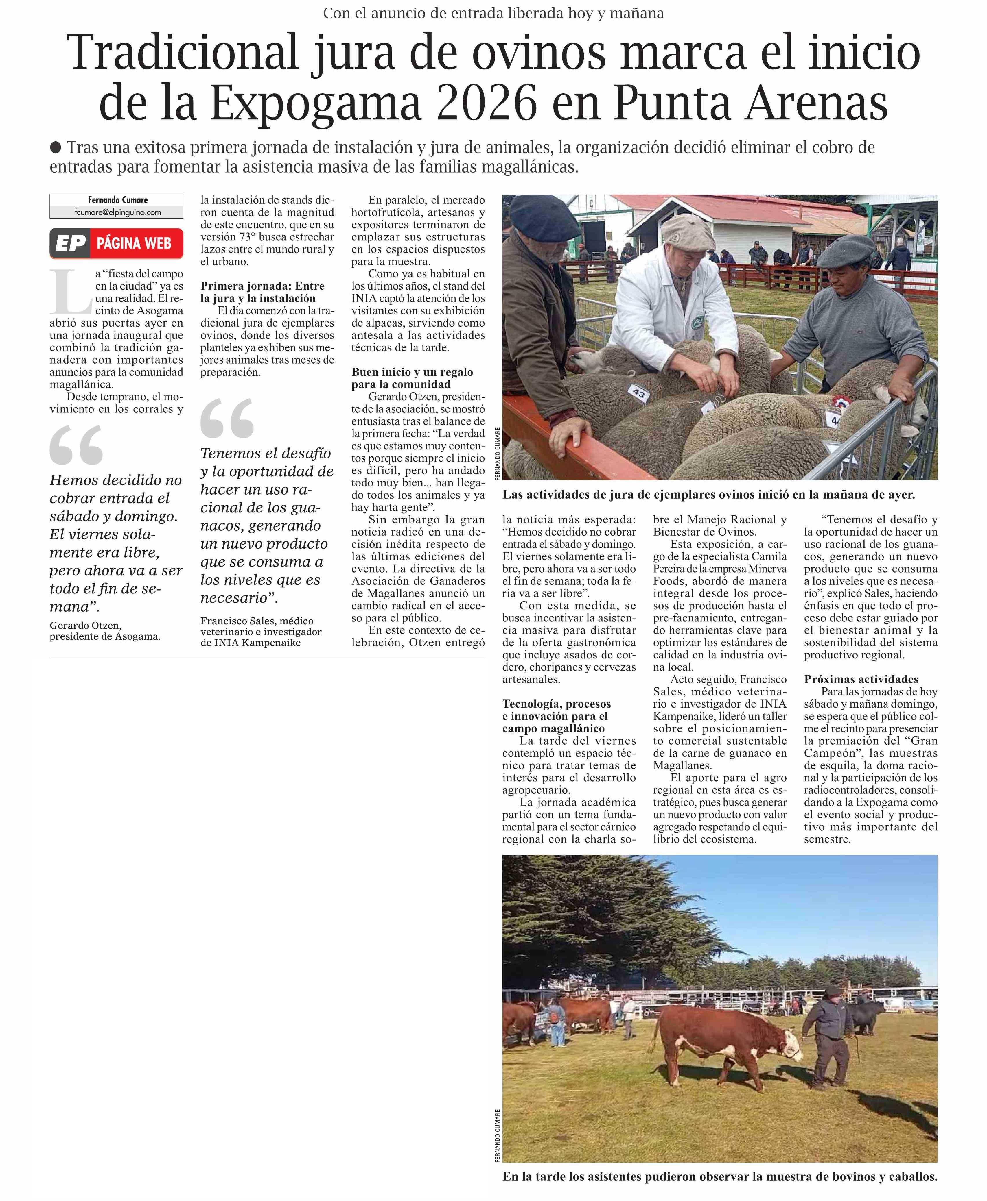 Título: Tradicional jura de ovinos marca el inicio de la Expogama 2026 en Punta Arenas