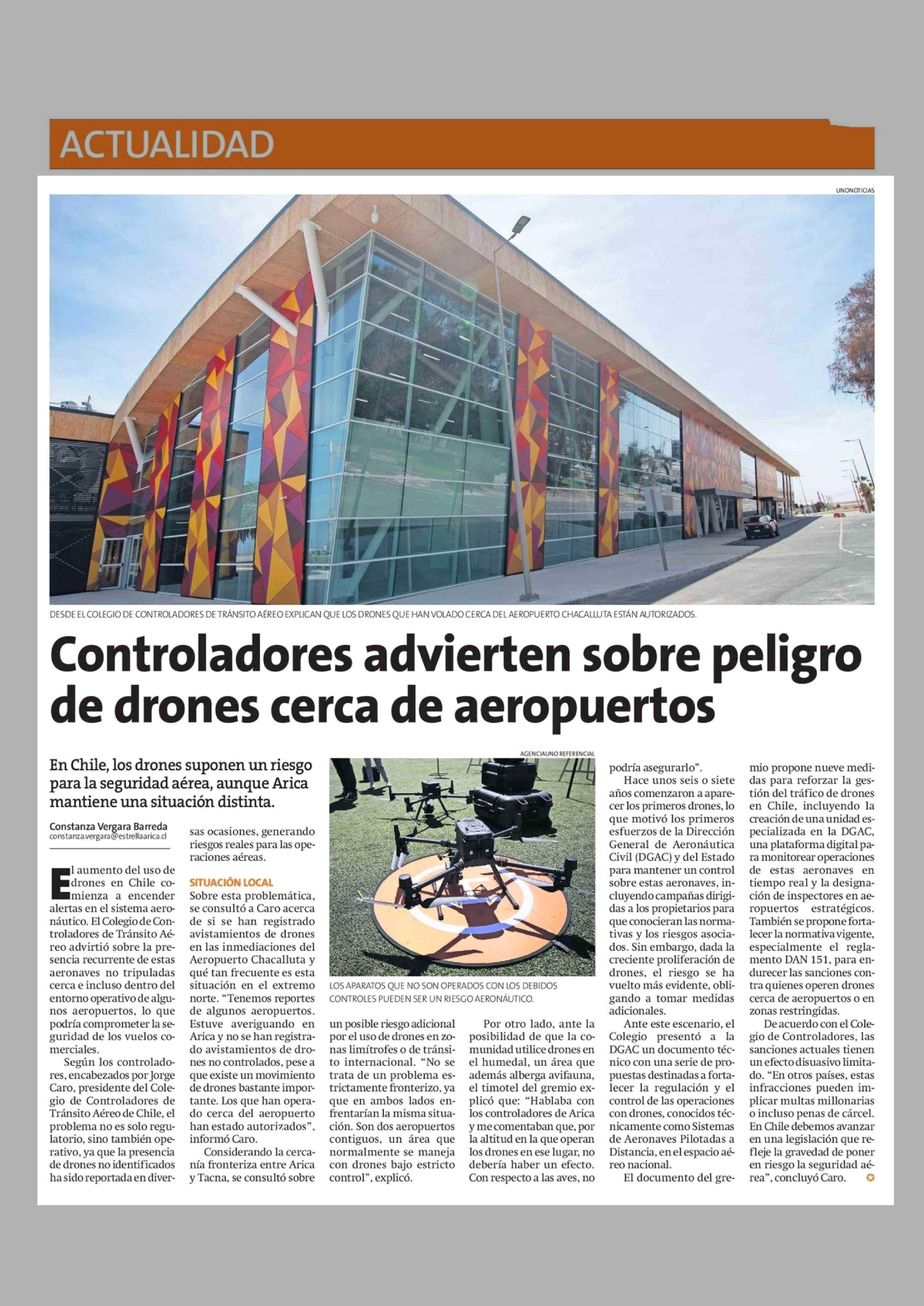 Controladores advierten sobre peligro de drones cerca de aeropuertos 22-04-2026 La Estrella de Arica |