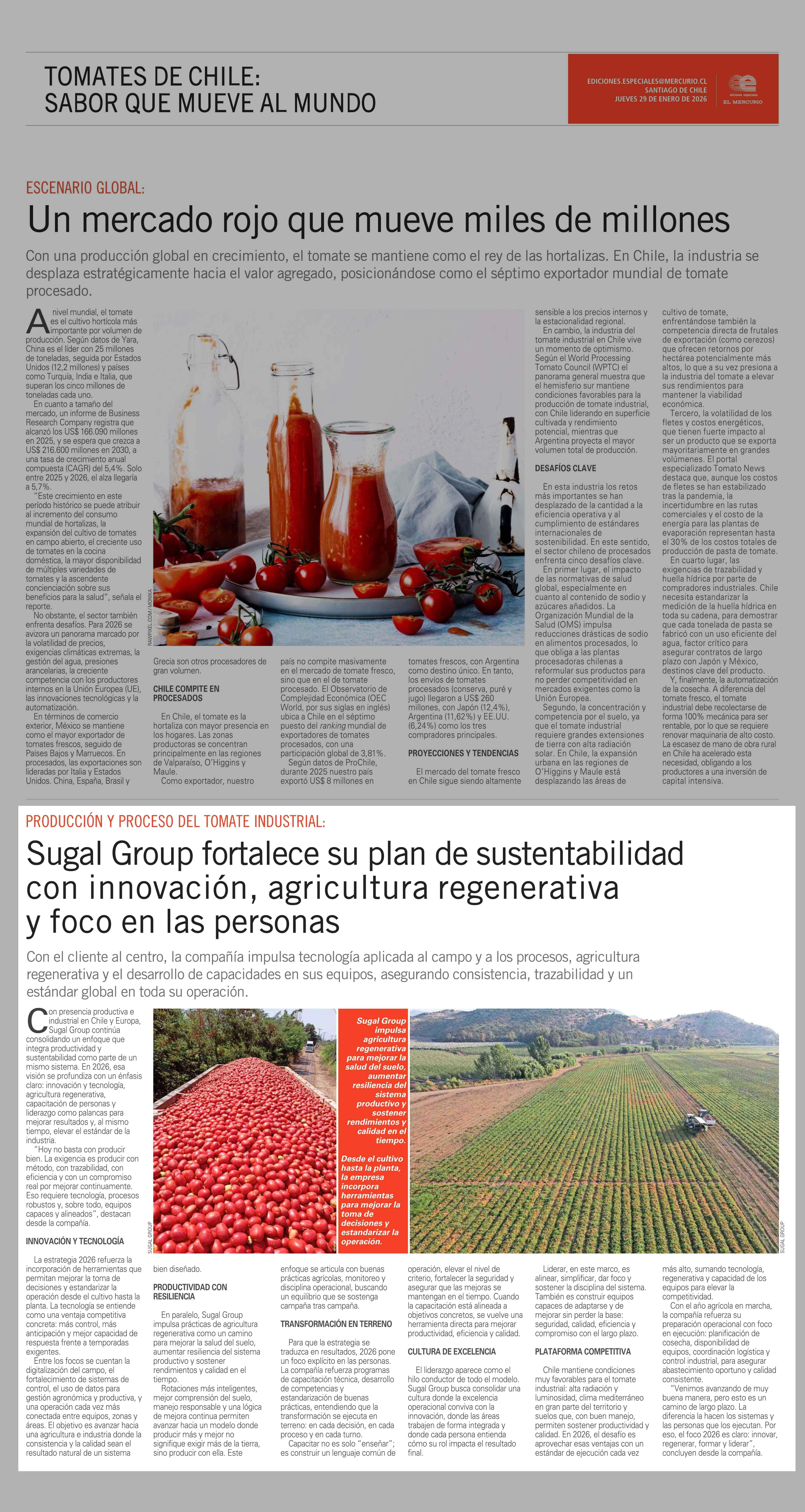 Título: Sugal Group fortalece su plan de sustentabilidad con innovación, agricultura regenerativa y foco en las personas