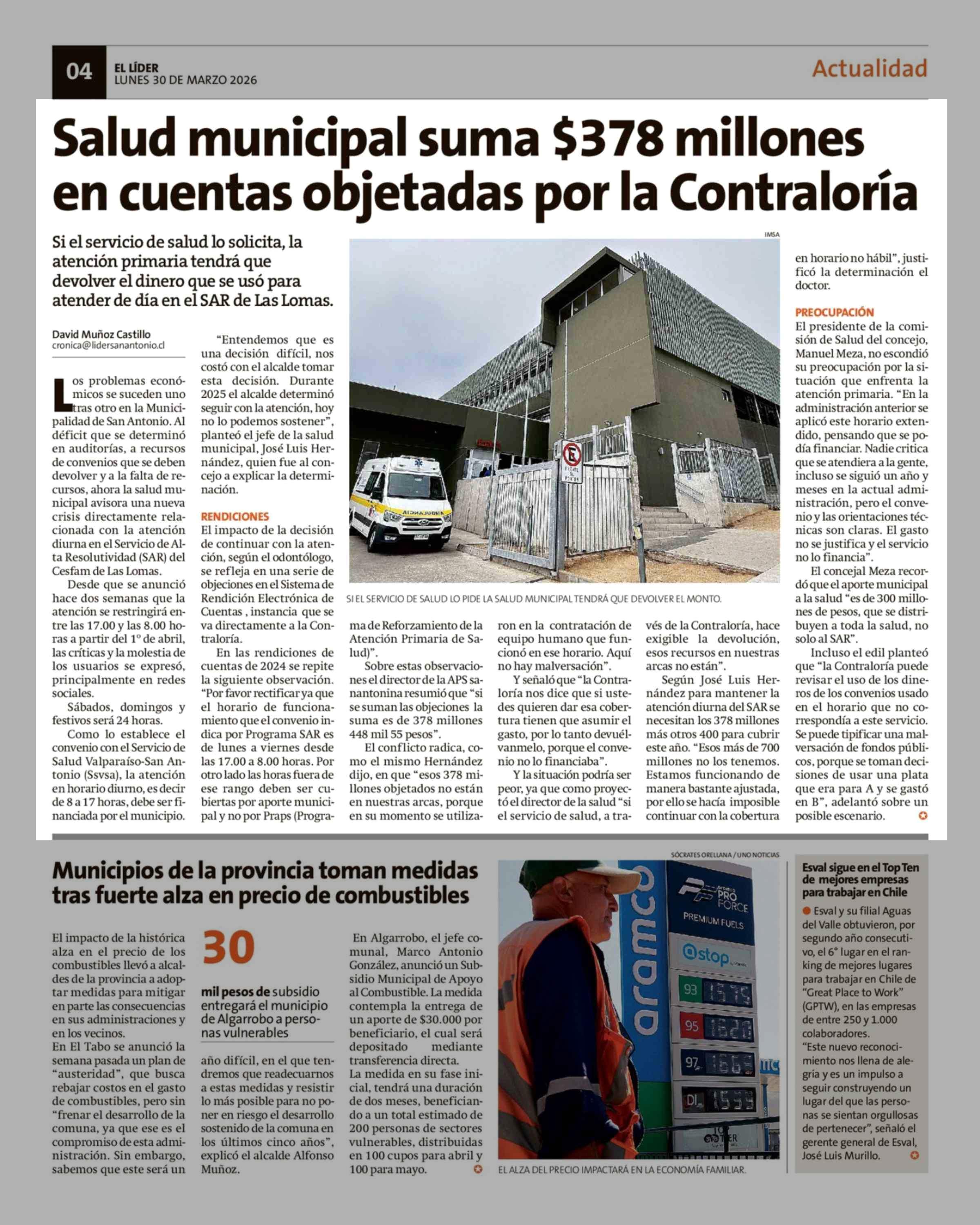 Título: Salud municipal suma $378 millones en cuentas objetadas por la Contraloría