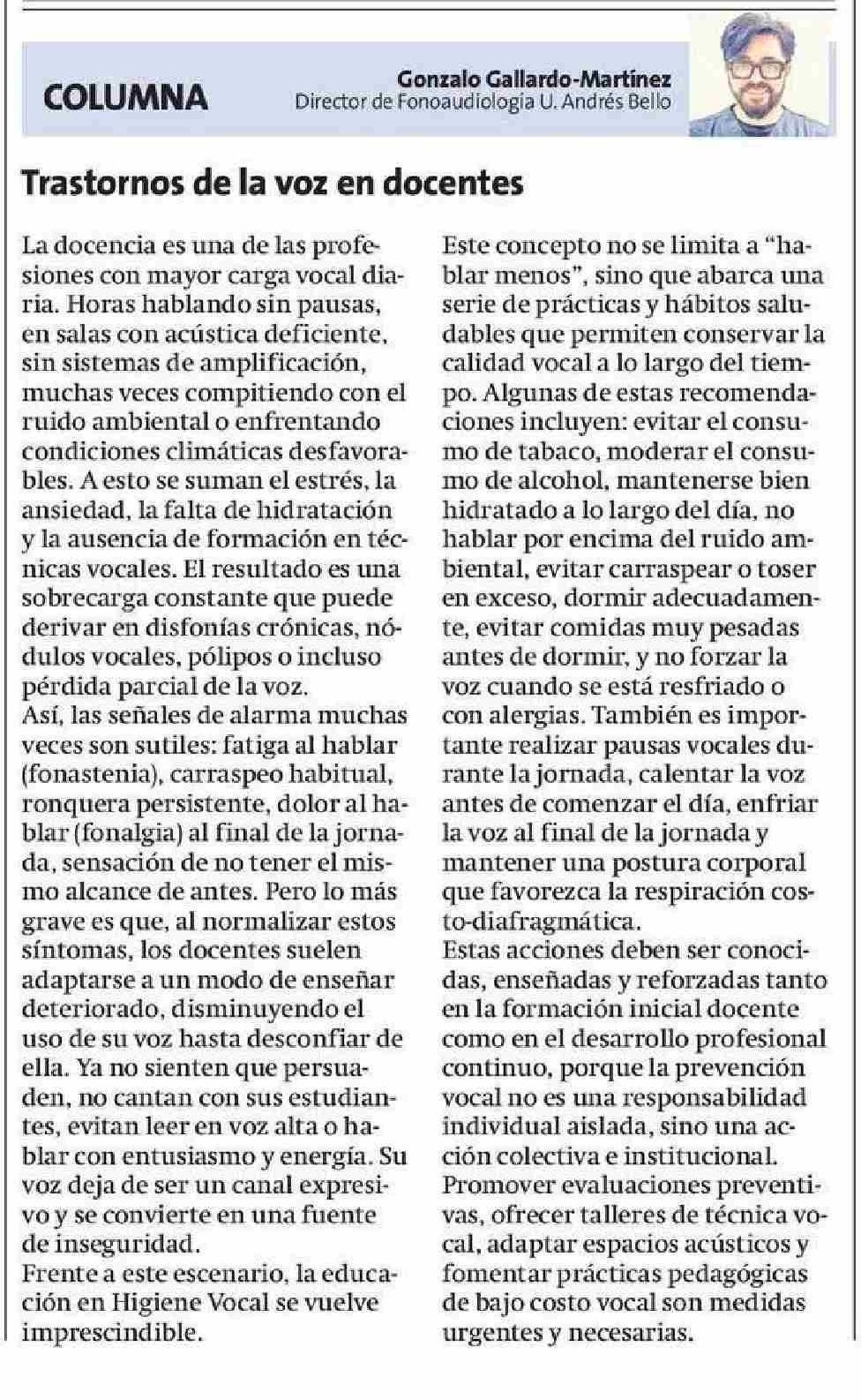 Trastornos de la voz en docentes 29-05-2025 La Estrella de Concepción |