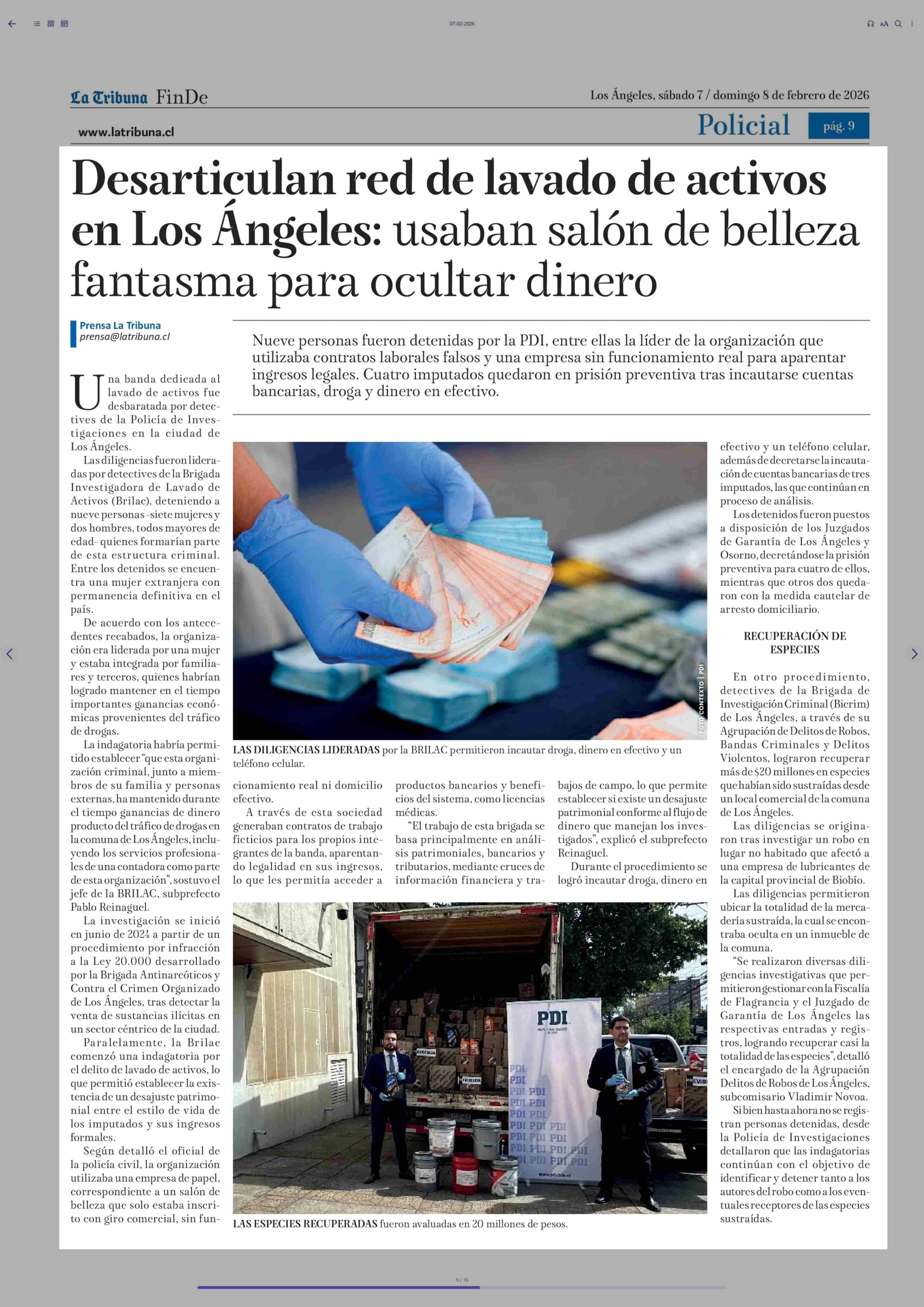 Desarticulan red de lavado de activos en Los Ángeles: usaban salón de belleza fantasma para ocultar dinero 07-02-2026 La Tribuna |