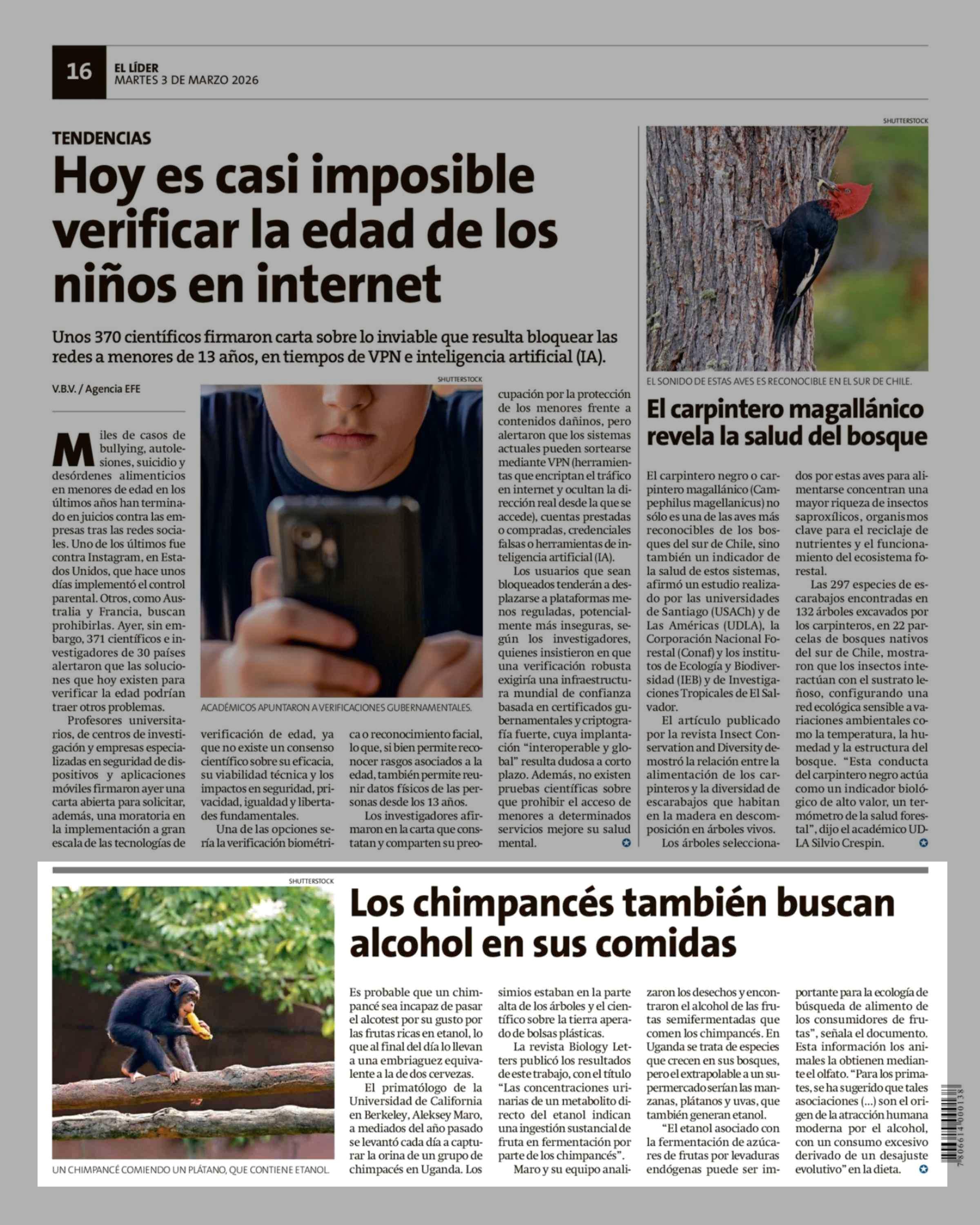 Los chimpancés también buscan alcohol en sus comidas 03-03-2026 El Líder |