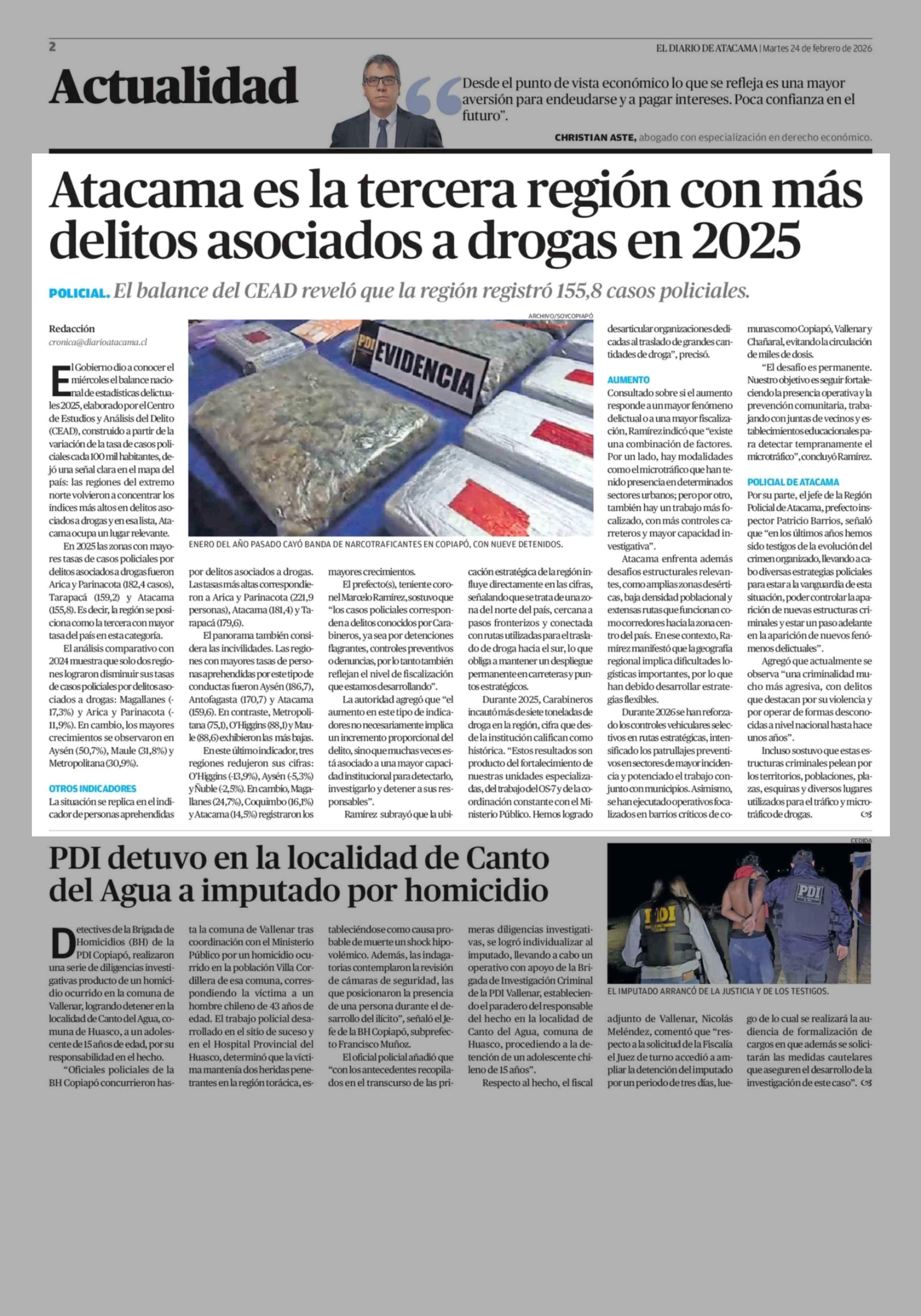 Atacama es la tercera región con más delitos asociados a drogas en 2025 24-02-2026 El Diario de Atacama |