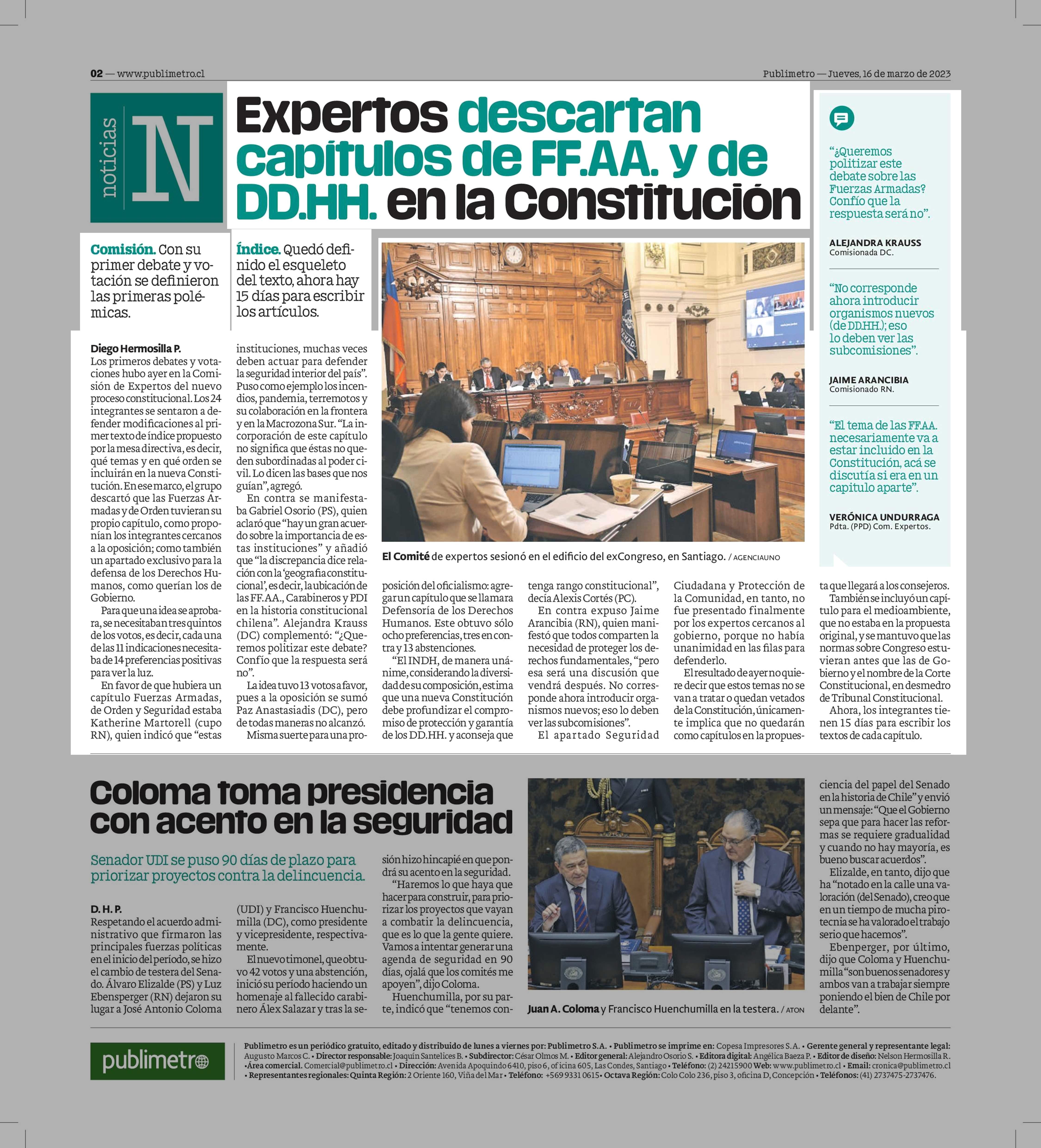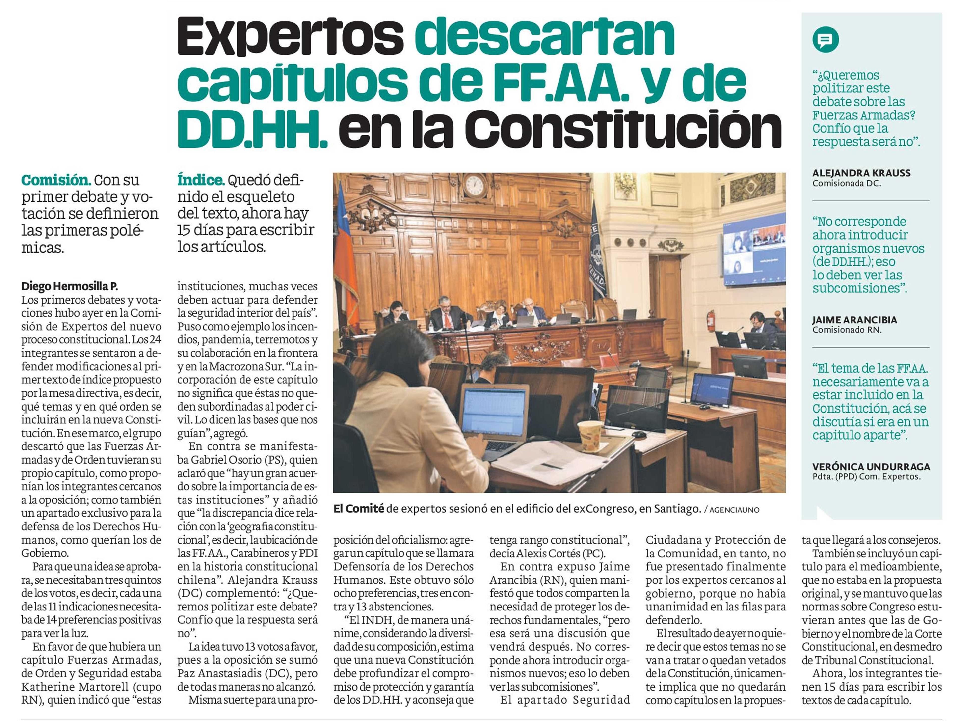 Expertos descartan capítulos de FF.AA. y de DD.HH. en la Constitución 16-03-2023 Publimetro |
