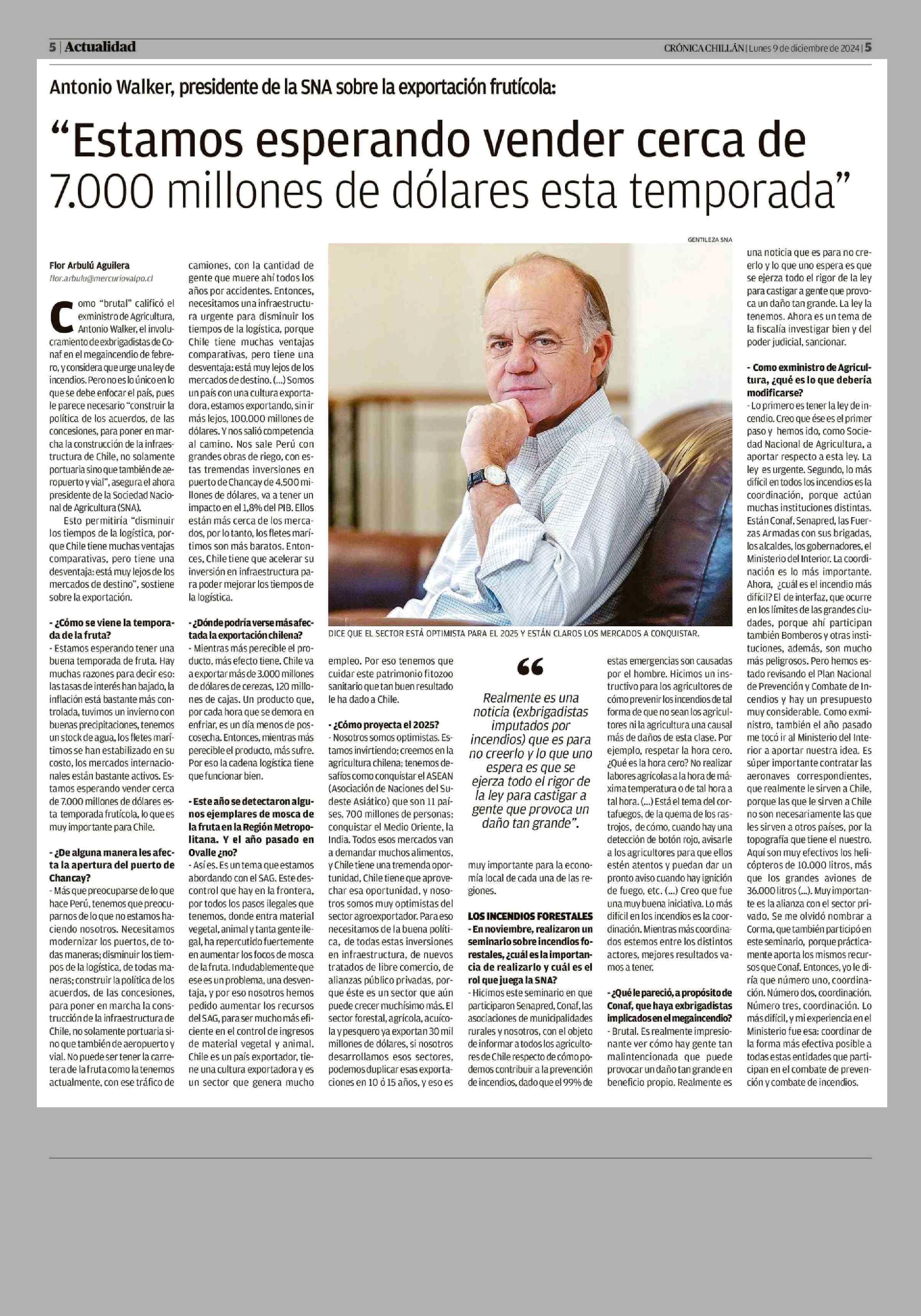 “Estamos esperando vender cerca de 7.000 millones de dolares esta temporada” 09-12-2024 Crónica de Chillán |