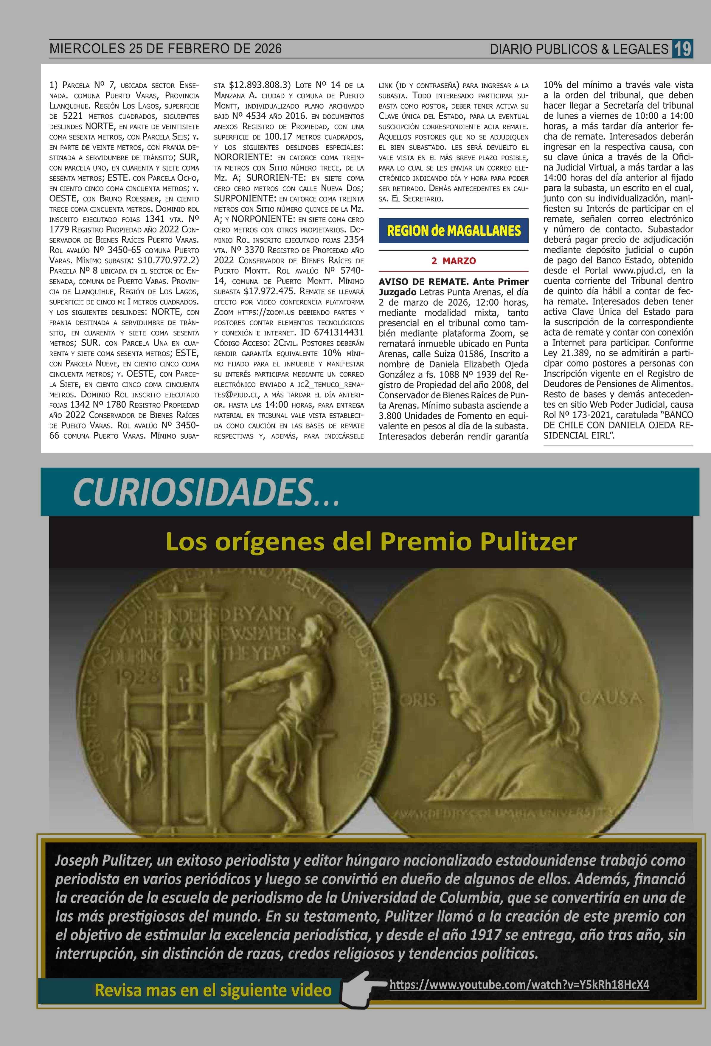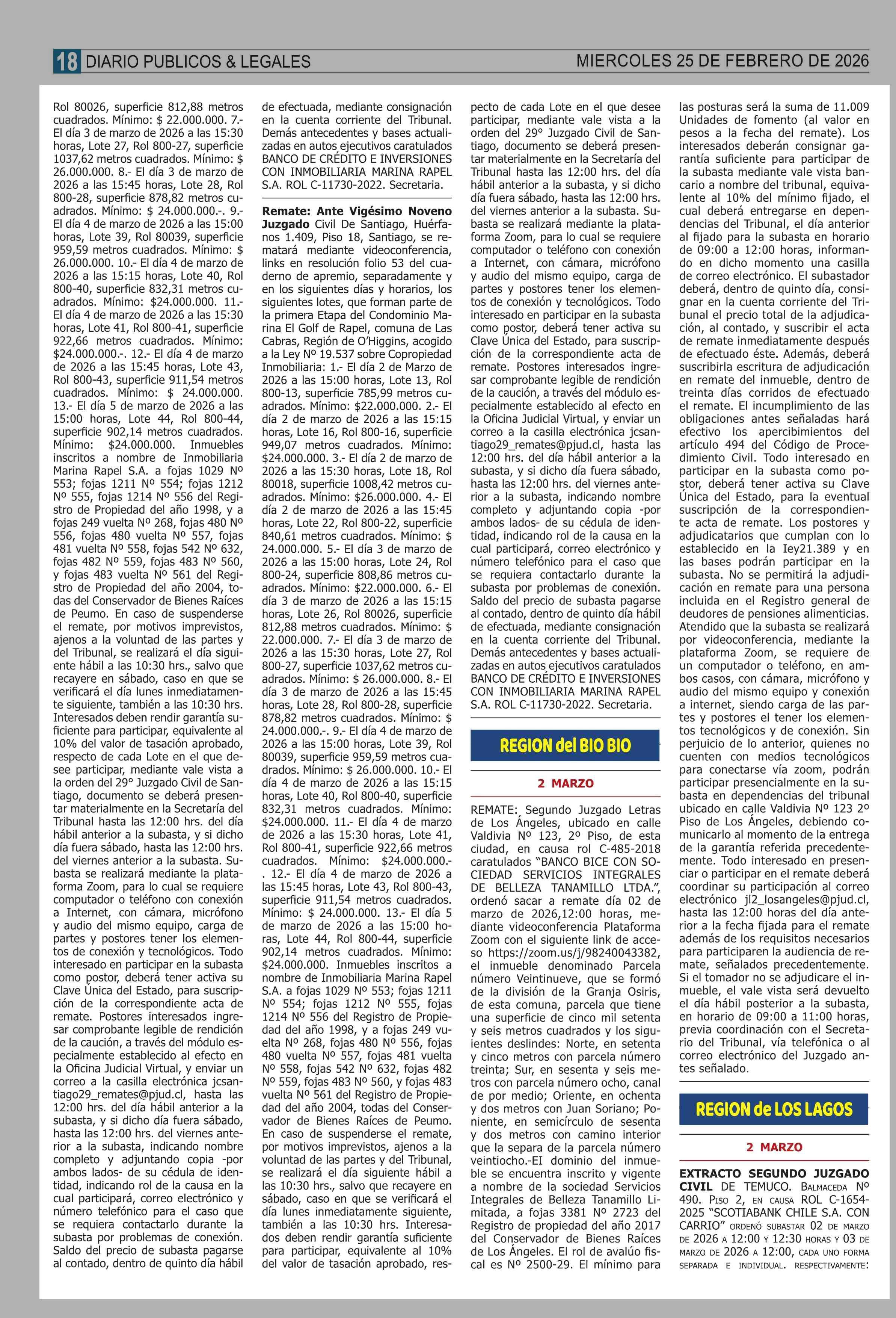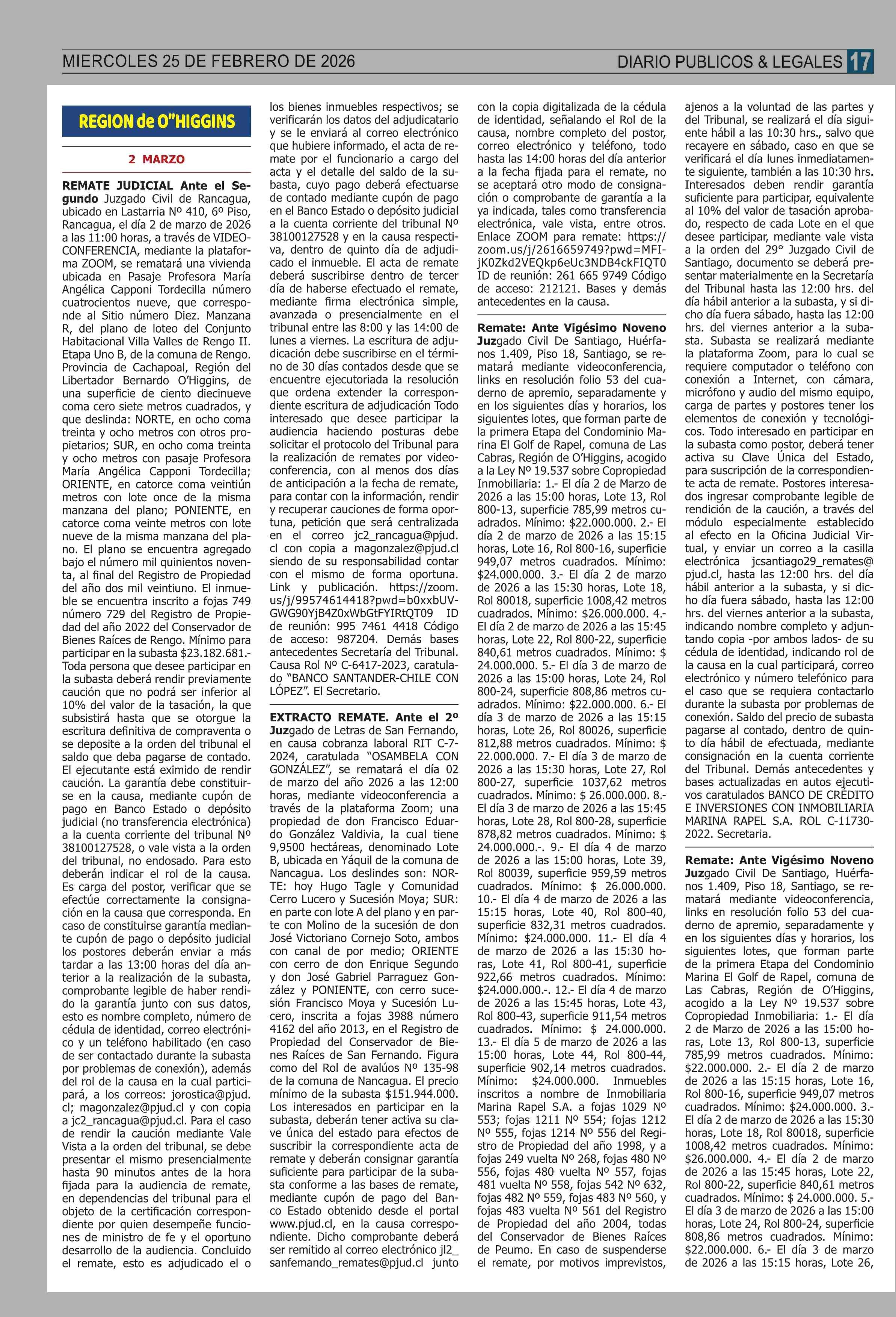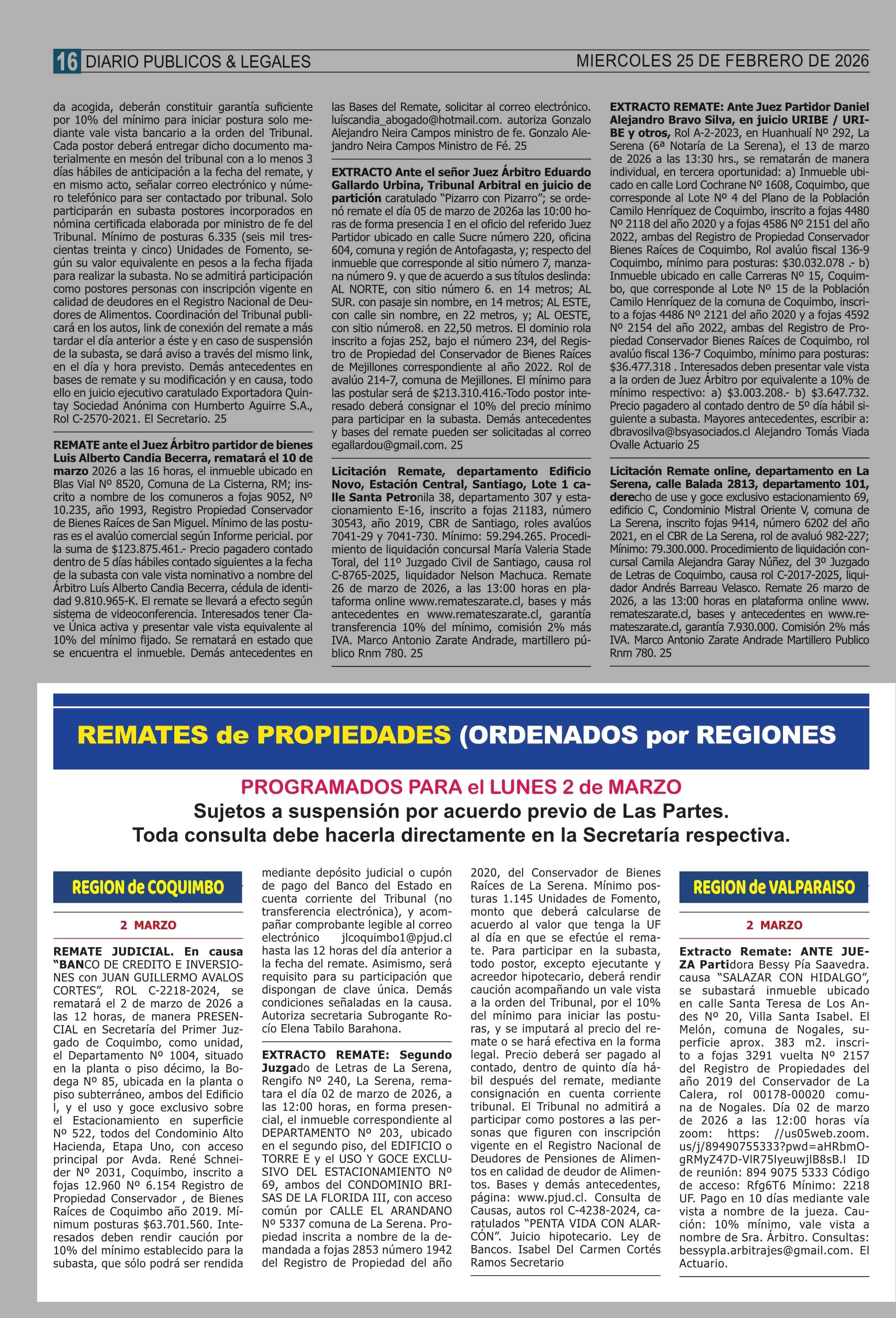 Fecha: 25-02-2026 Sector: Remates Región: Región Metropolitana de Santiago