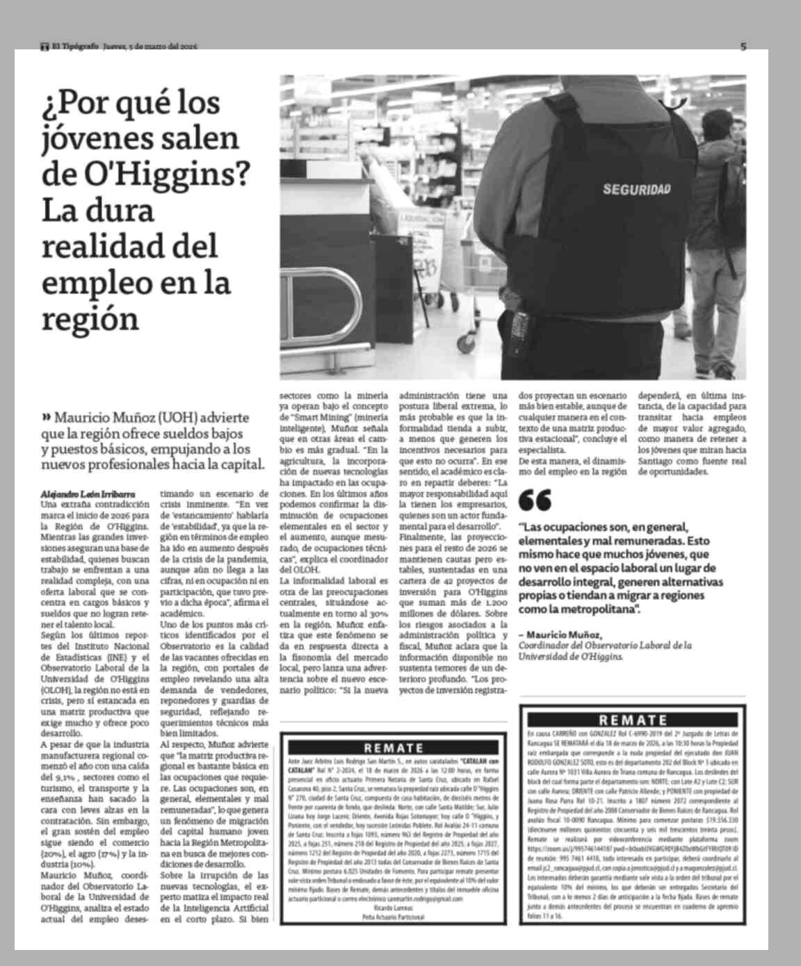 ¿Por qué los jóvenes salen de O'Higgins? La dura realidad del empleo en la región 05-03-2026 El Tipógrafo |