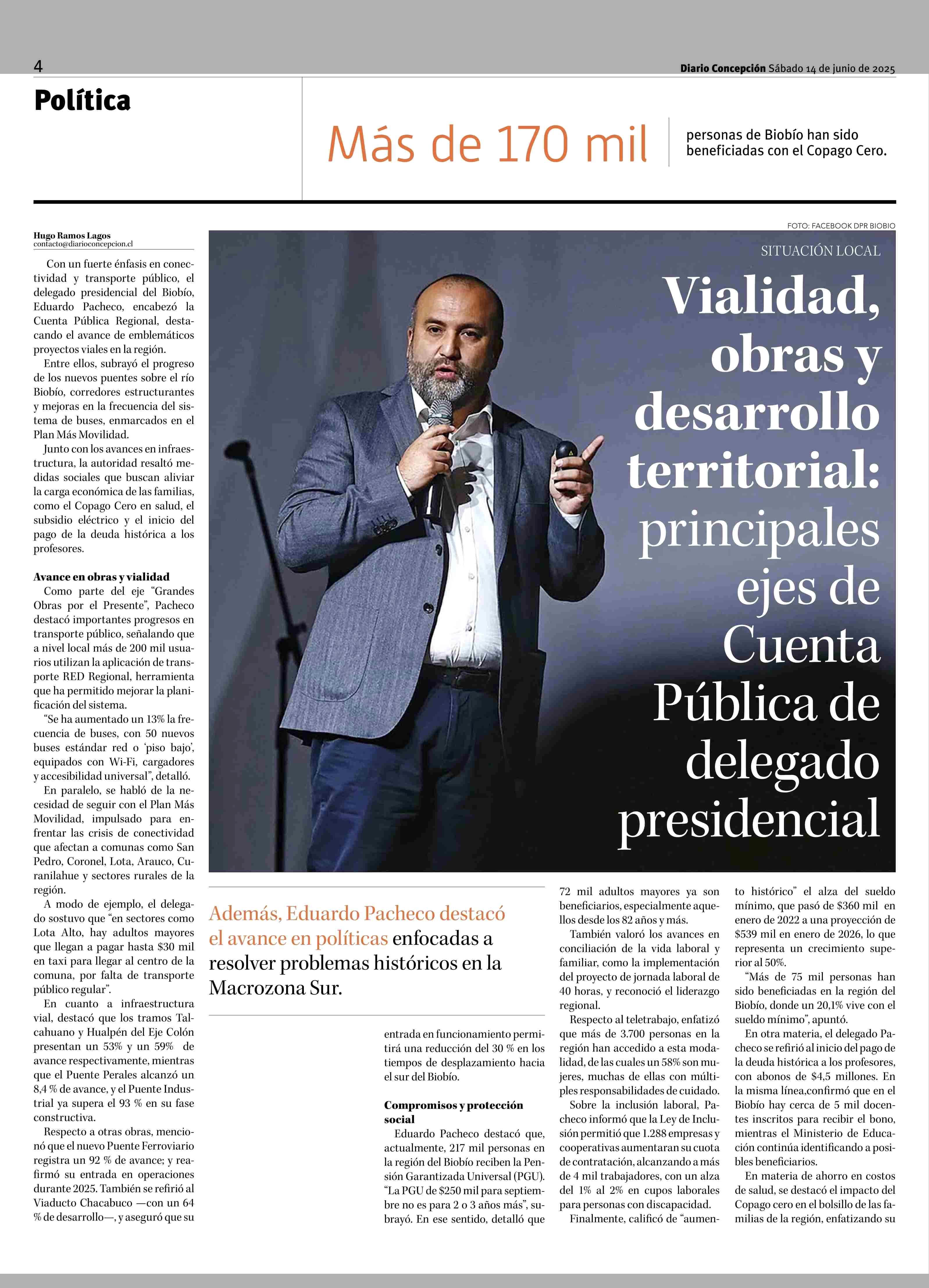 Vialidad, obras y desarrollo territorial: principales ejes de Cuenta Pública de delegado presidencial 14-06-2025 Diario Concepción |