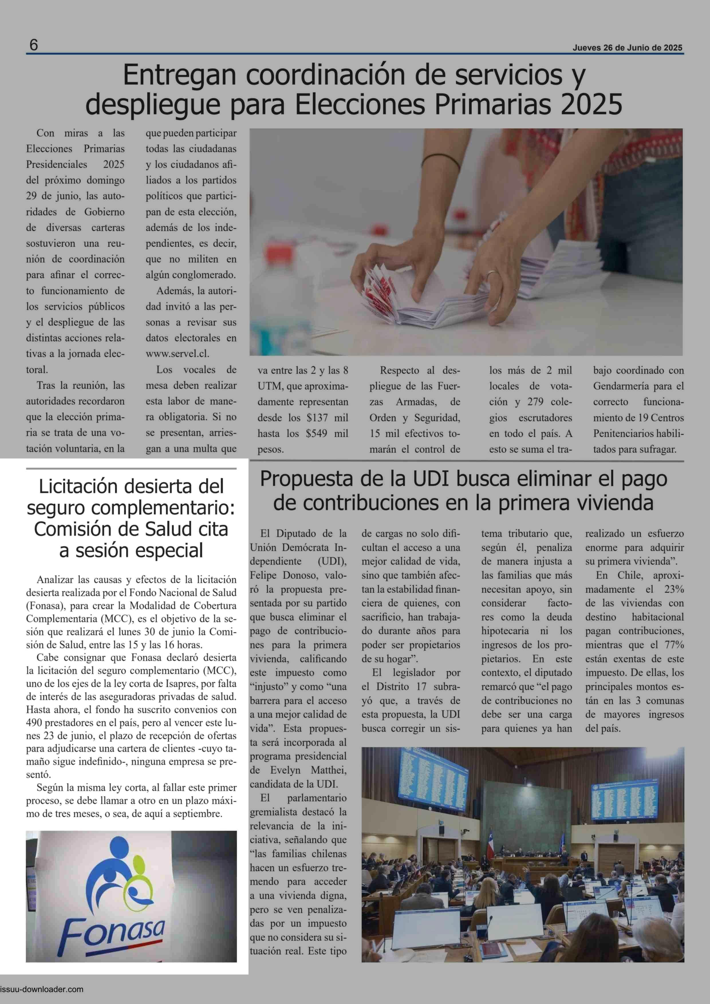 | Título: | Licitación desierta del seguro complementario: Comisión de Salud cita a sesión especial |