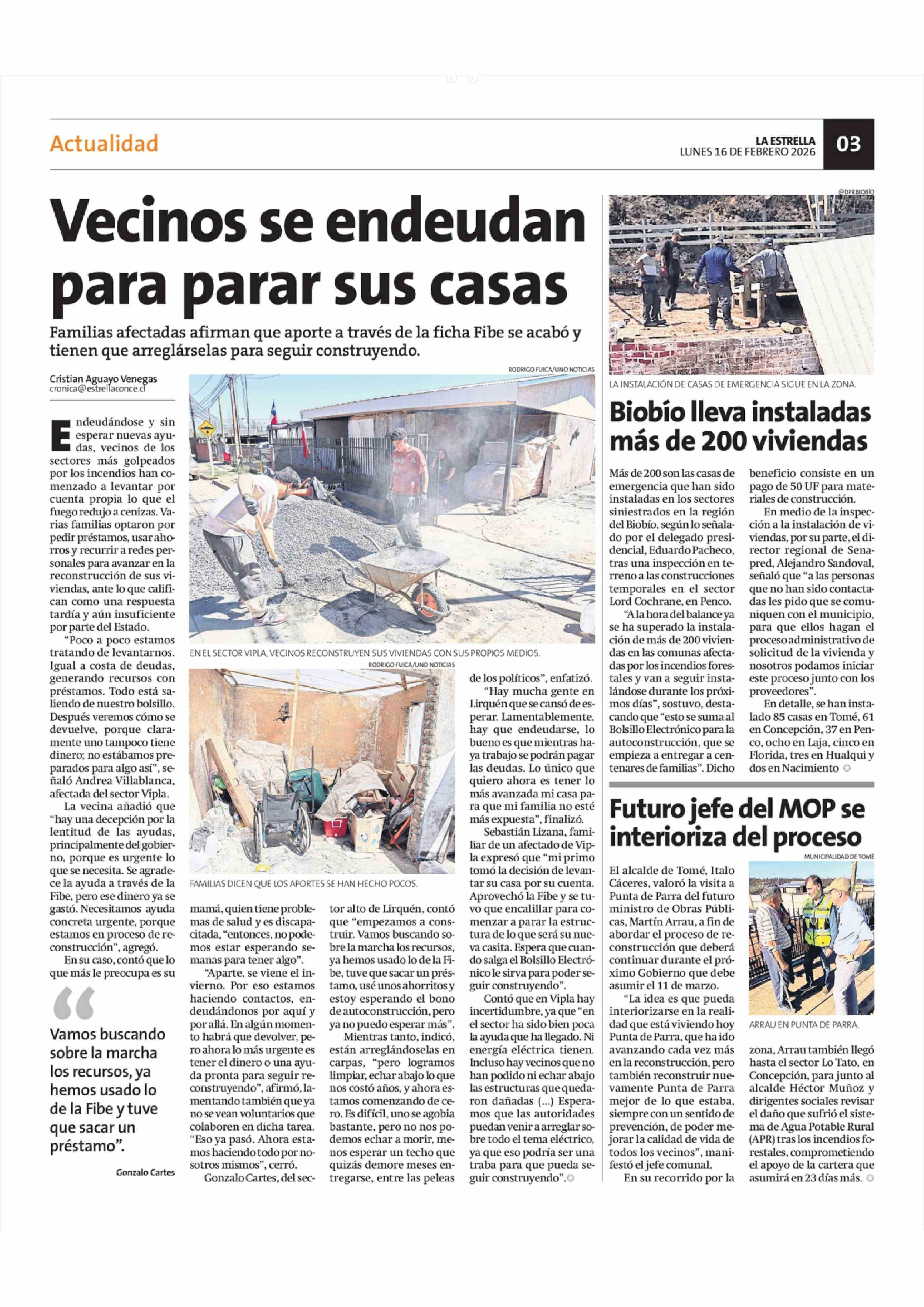 Biobio lleva instaladas más de 200 viviendas 16-02-2026 La Estrella de Concepción |