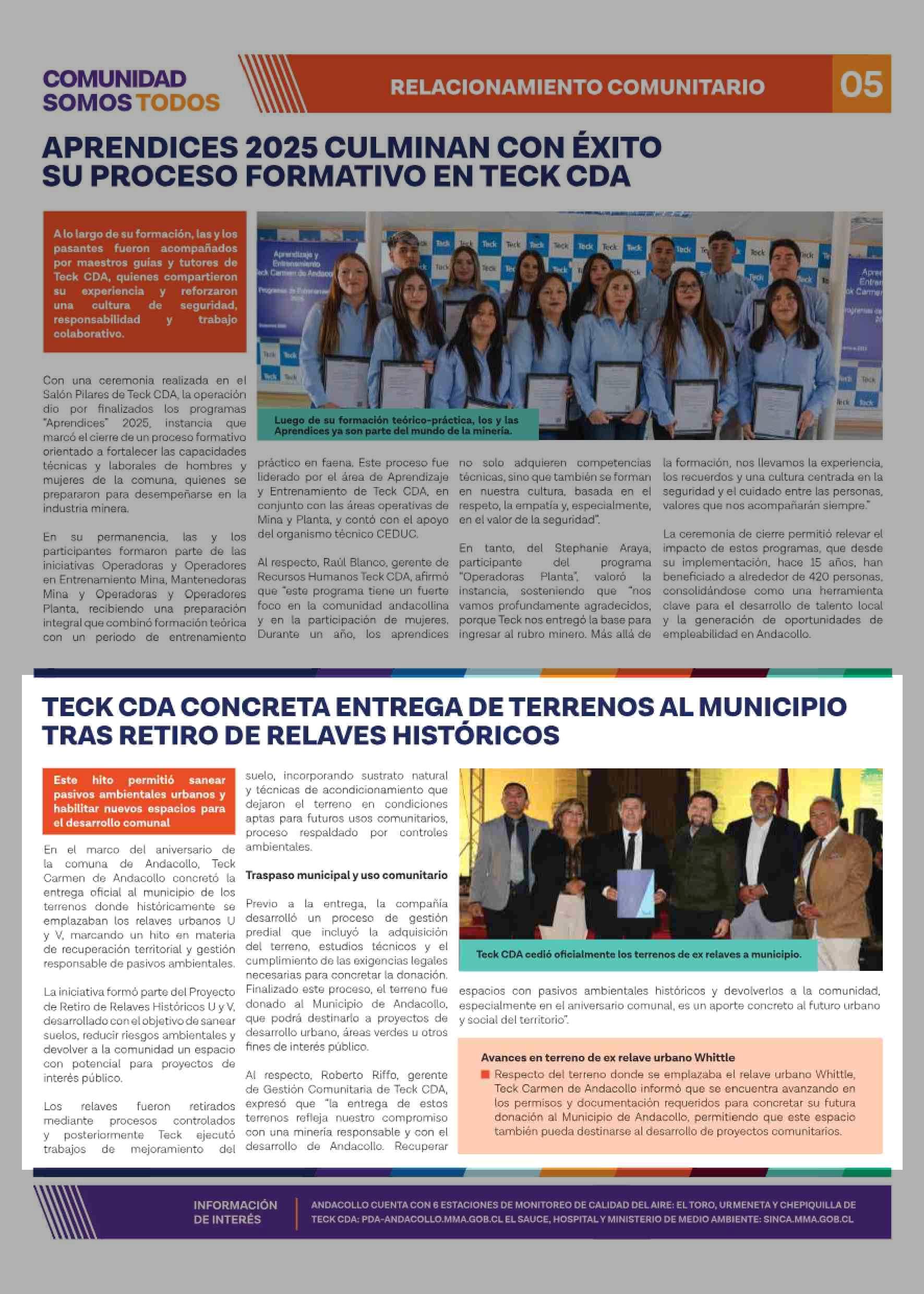 | Título: | TECK CDA CONCRETA ENTREGA DE TERRENOS AL MUNICIPIO TRAS RETIRO DE RELAVES HISTÓRICOS |