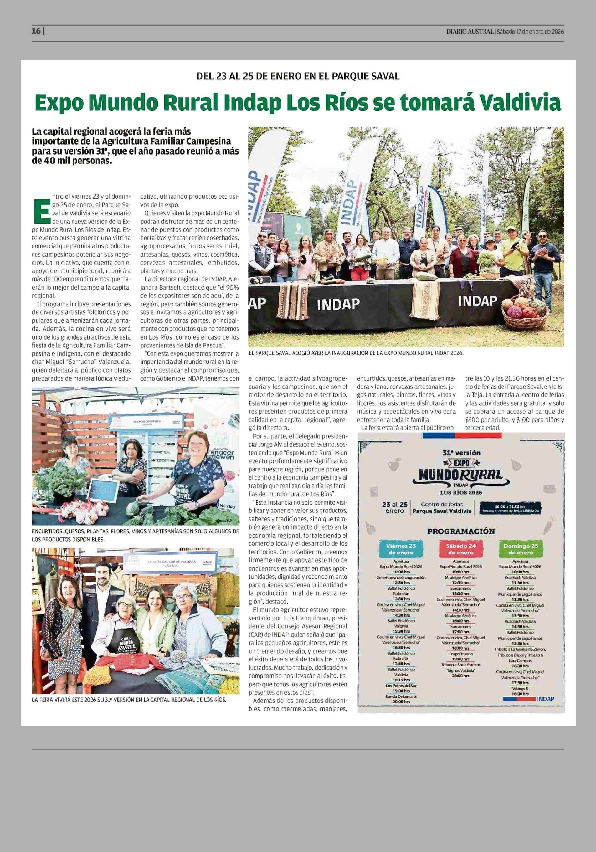 Expo Mundo Rural Indap Los Ríos se tomará Valdivia 17-01-2026 Diario Austral Región de Los Ríos |