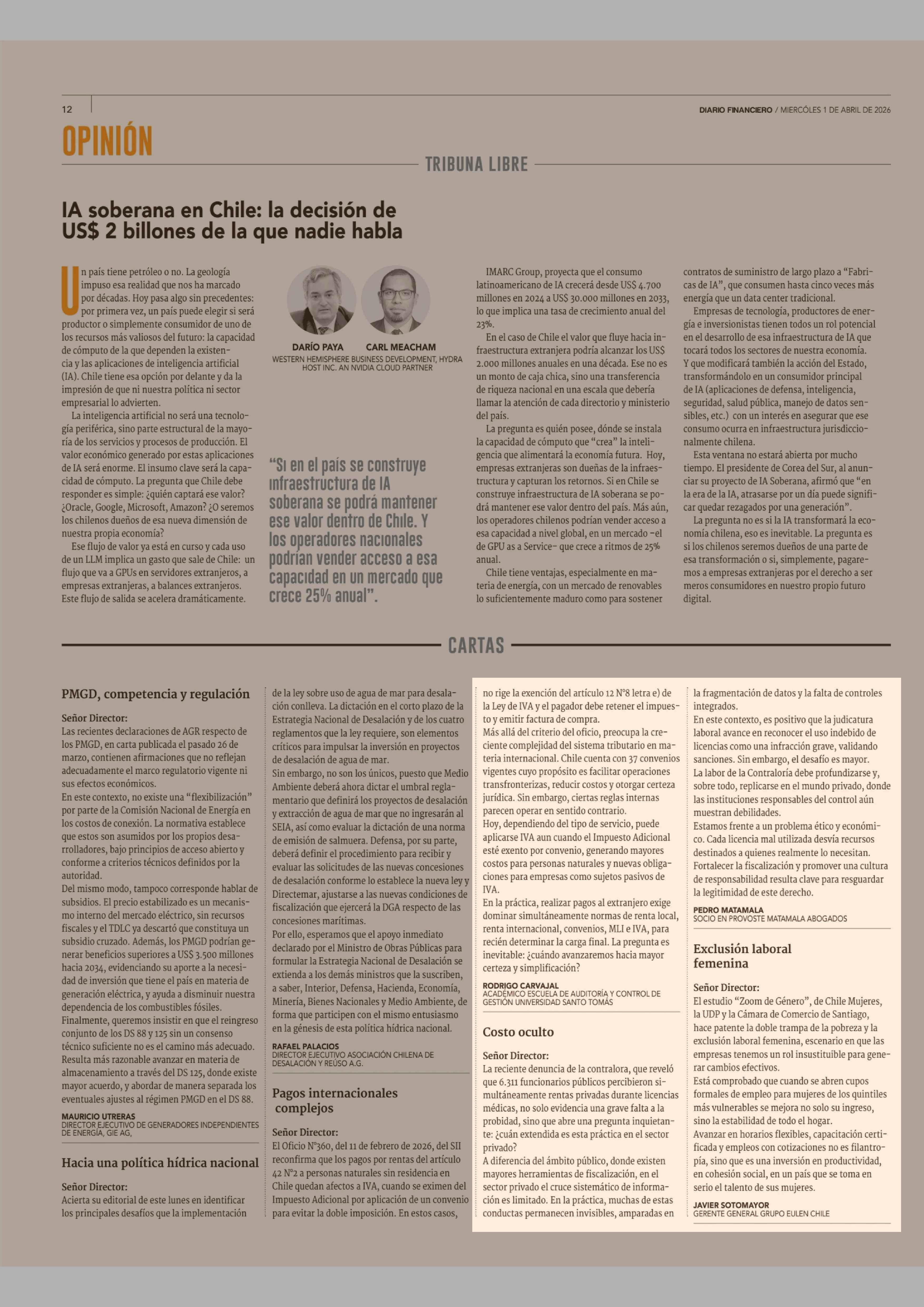 Cartas: Costo oculto 01-04-2026 Diario Financiero |