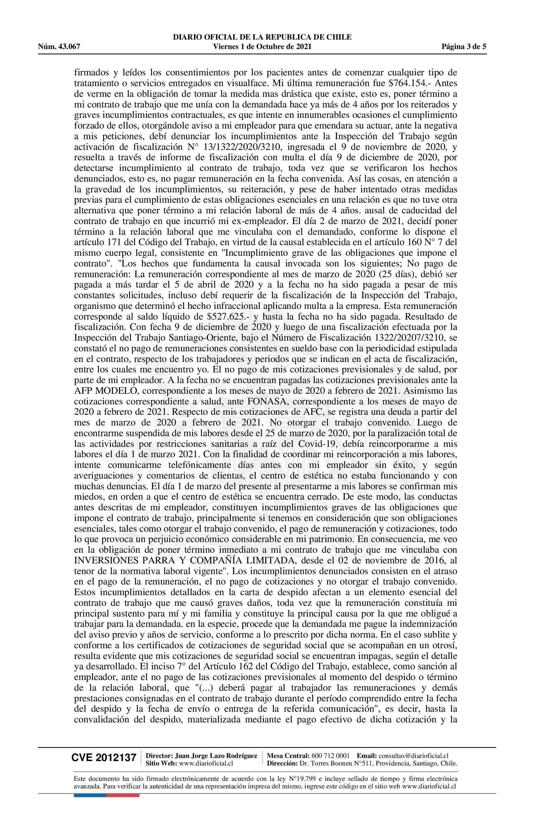 | Fuente: | Diario Oficial Edición Electrónica (Diario Oficial de Chile - 3 Public. Judiciales) | Página(s): | 1292-1296 |