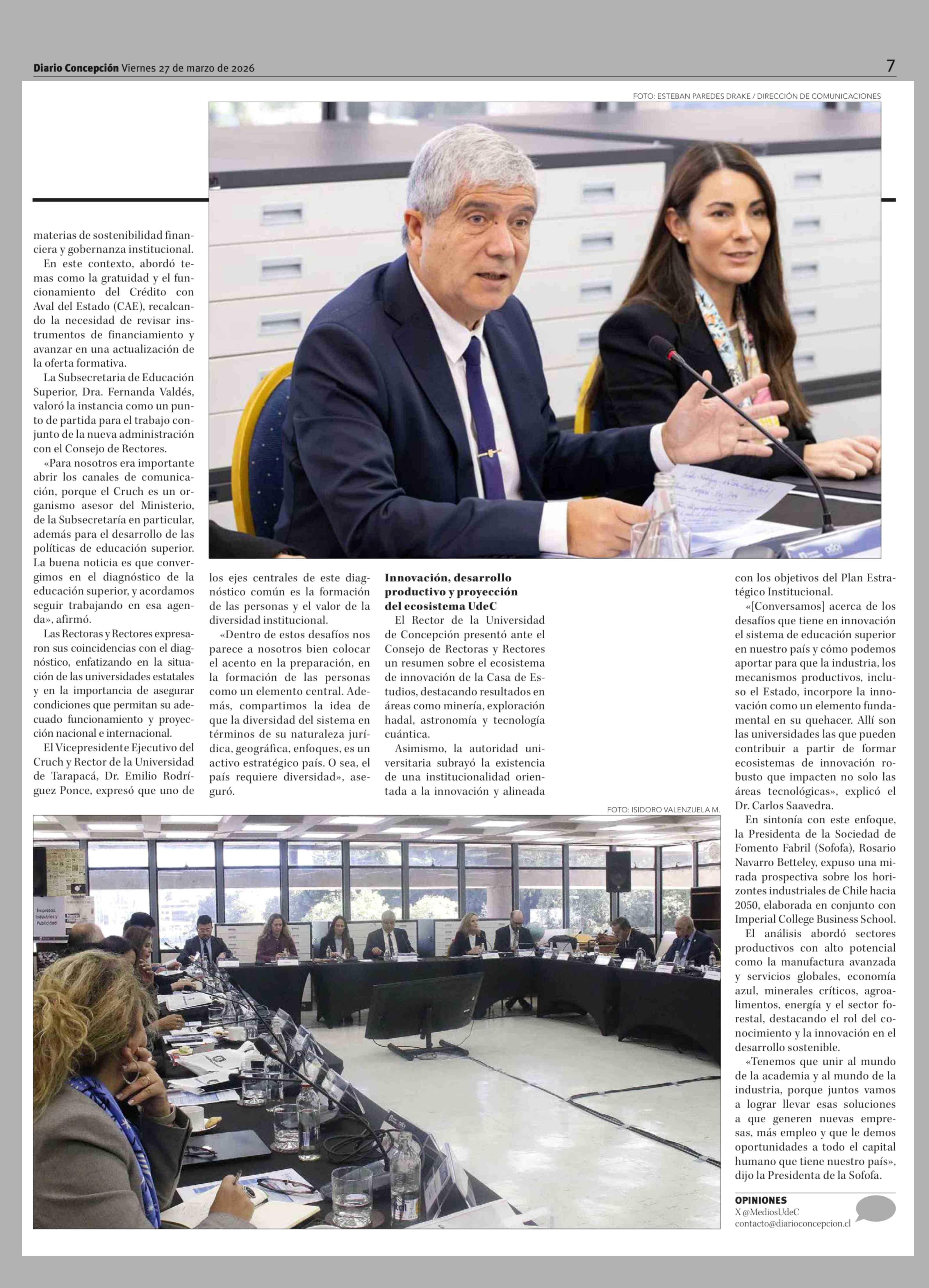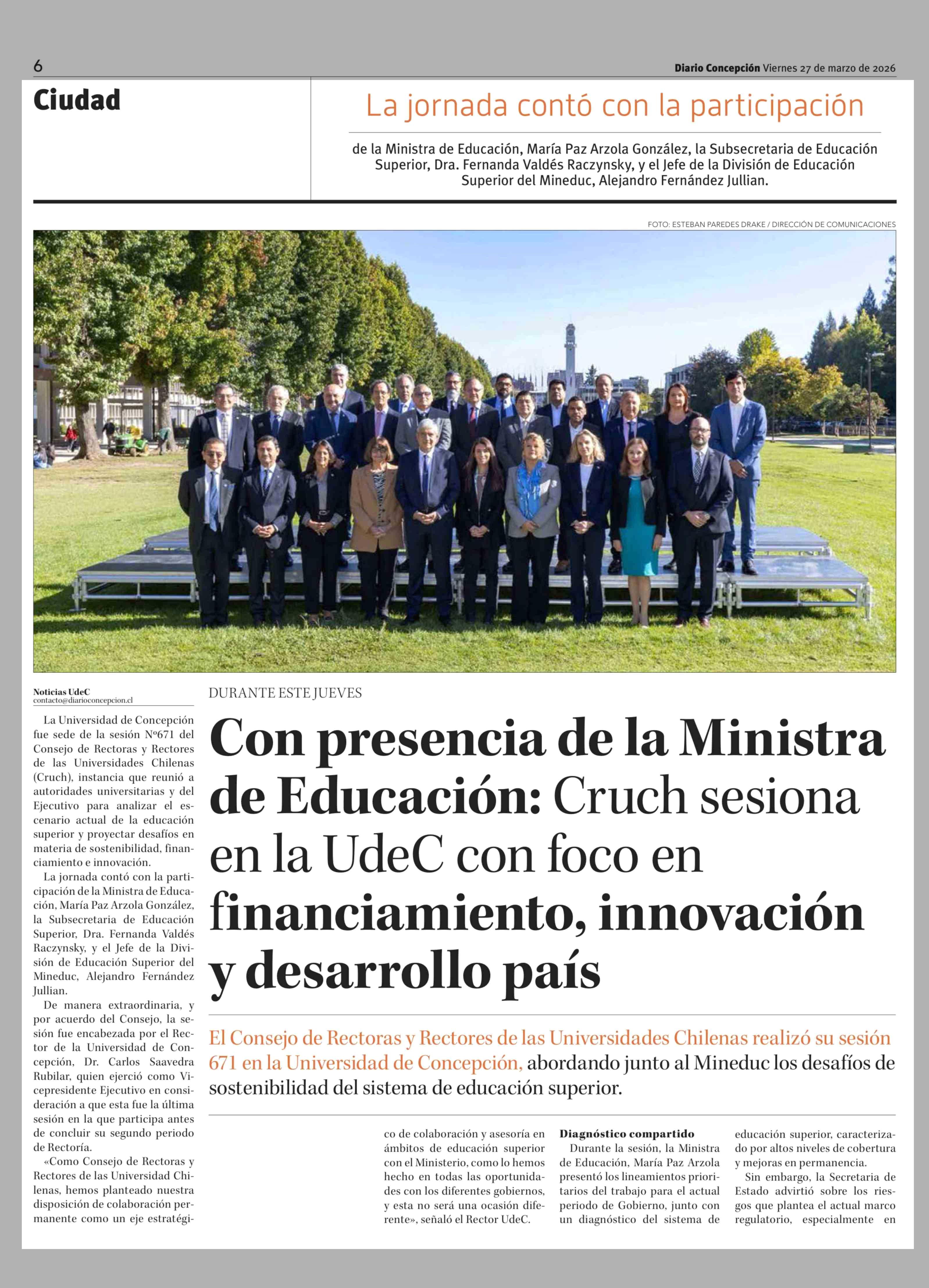 Título: Con presencia de la Ministra de Educación: Cruch sesiona en la UdeC con foco en financiamiento, innovación y desarrollo país