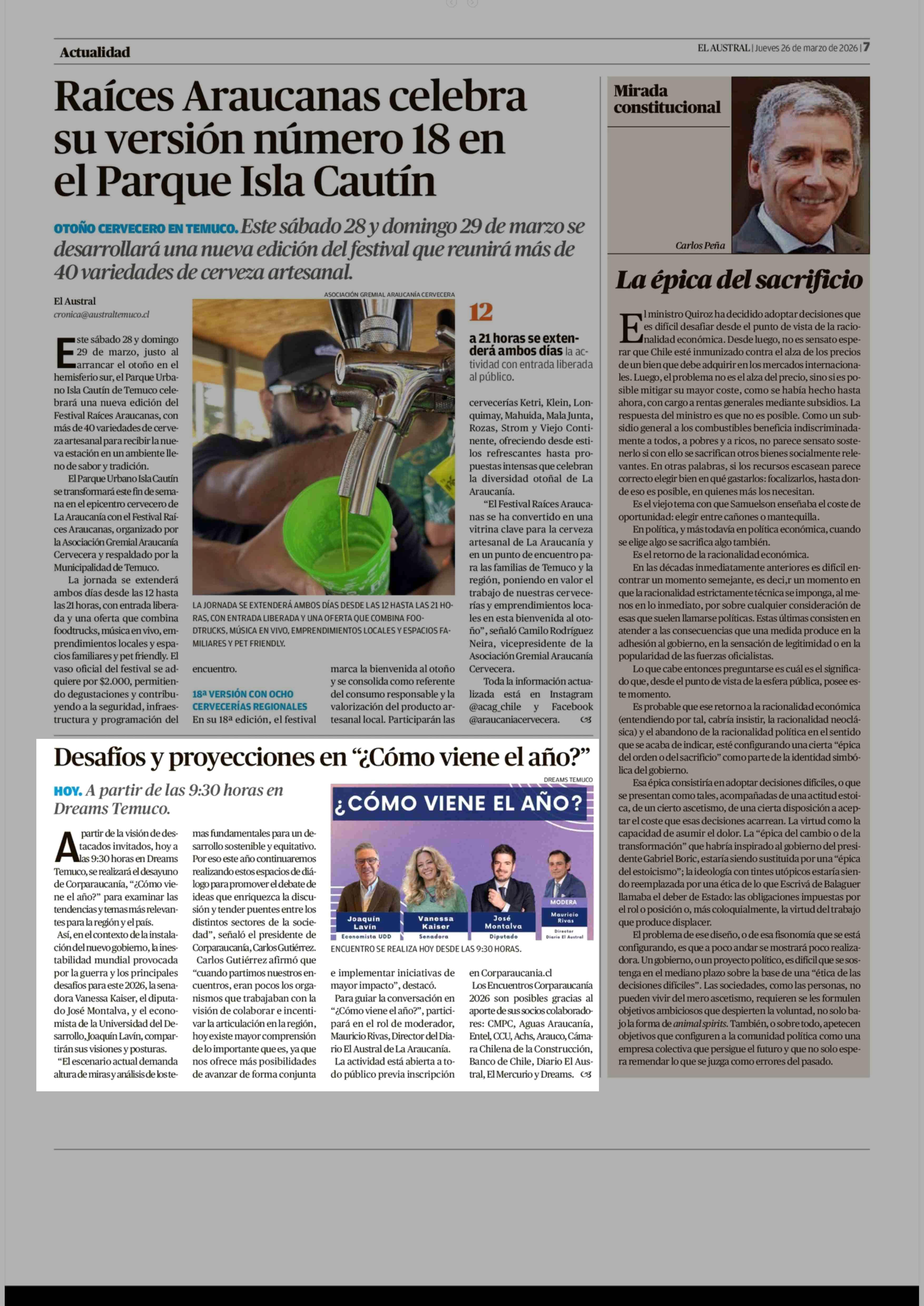 Desafíos y proyecciones en “¿Cómo viene el año?” 26-03-2026 El Austral de la Araucanía |