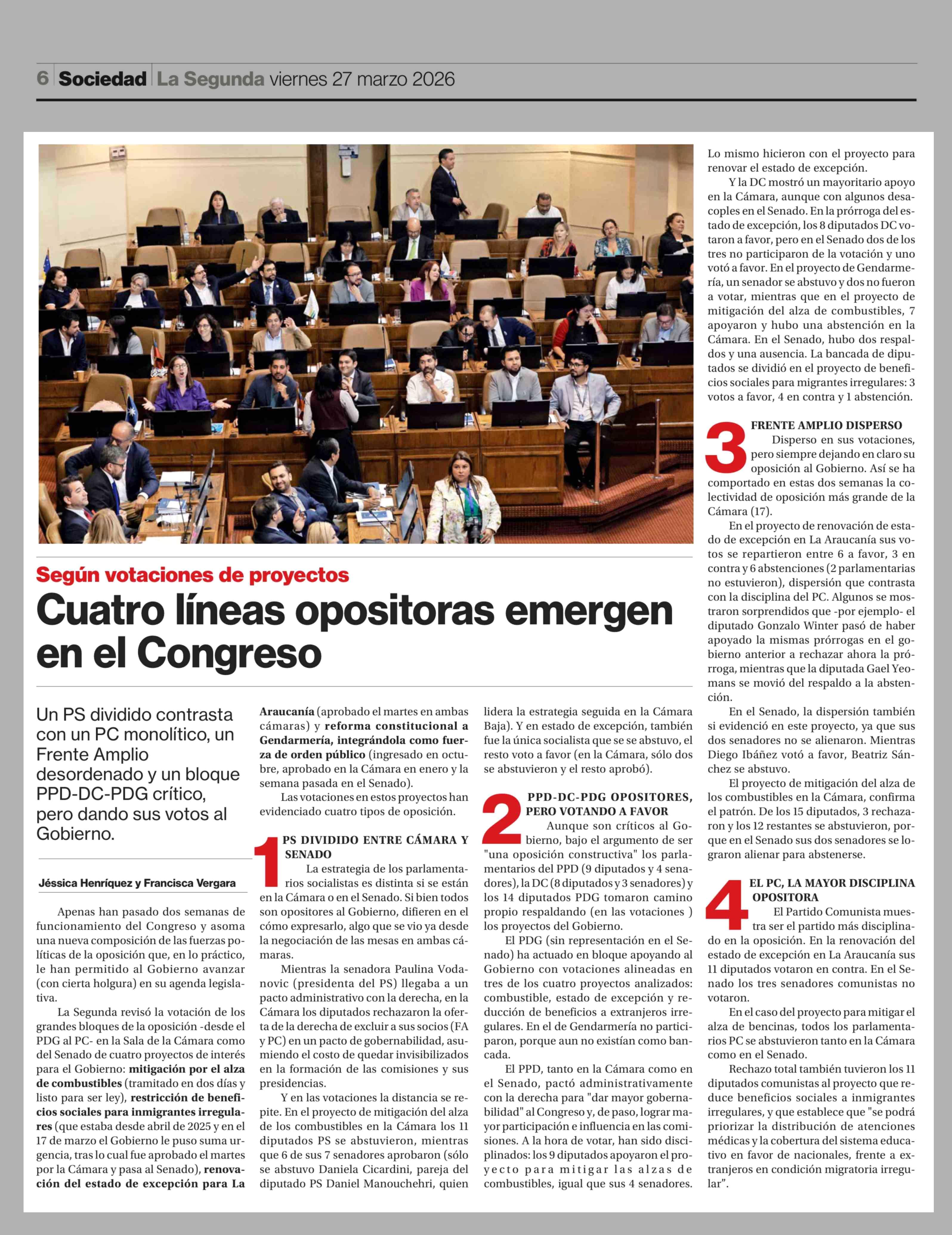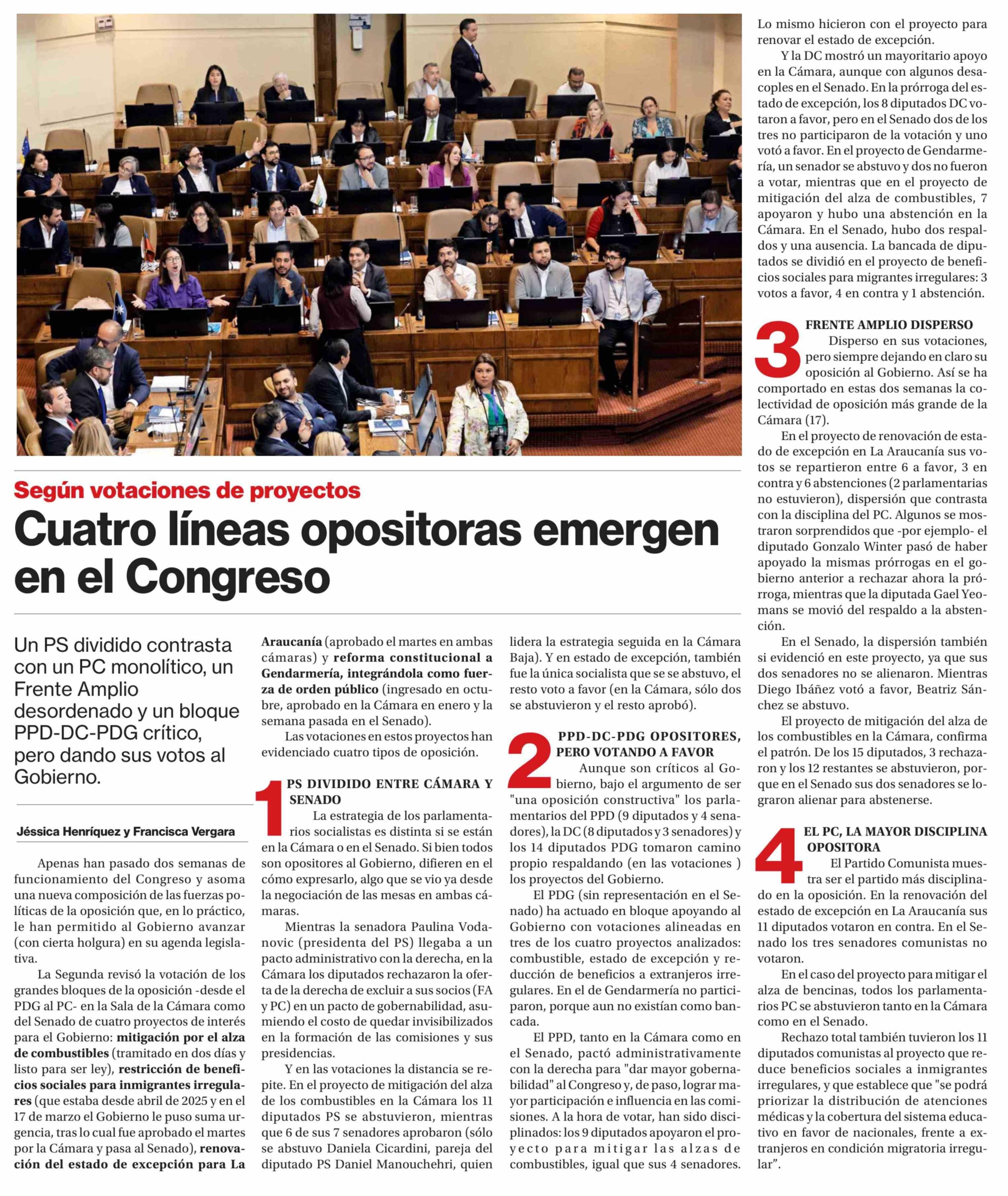 Cuatro líneas opositoras emergen en el Congreso 27-03-2026 La Segunda |