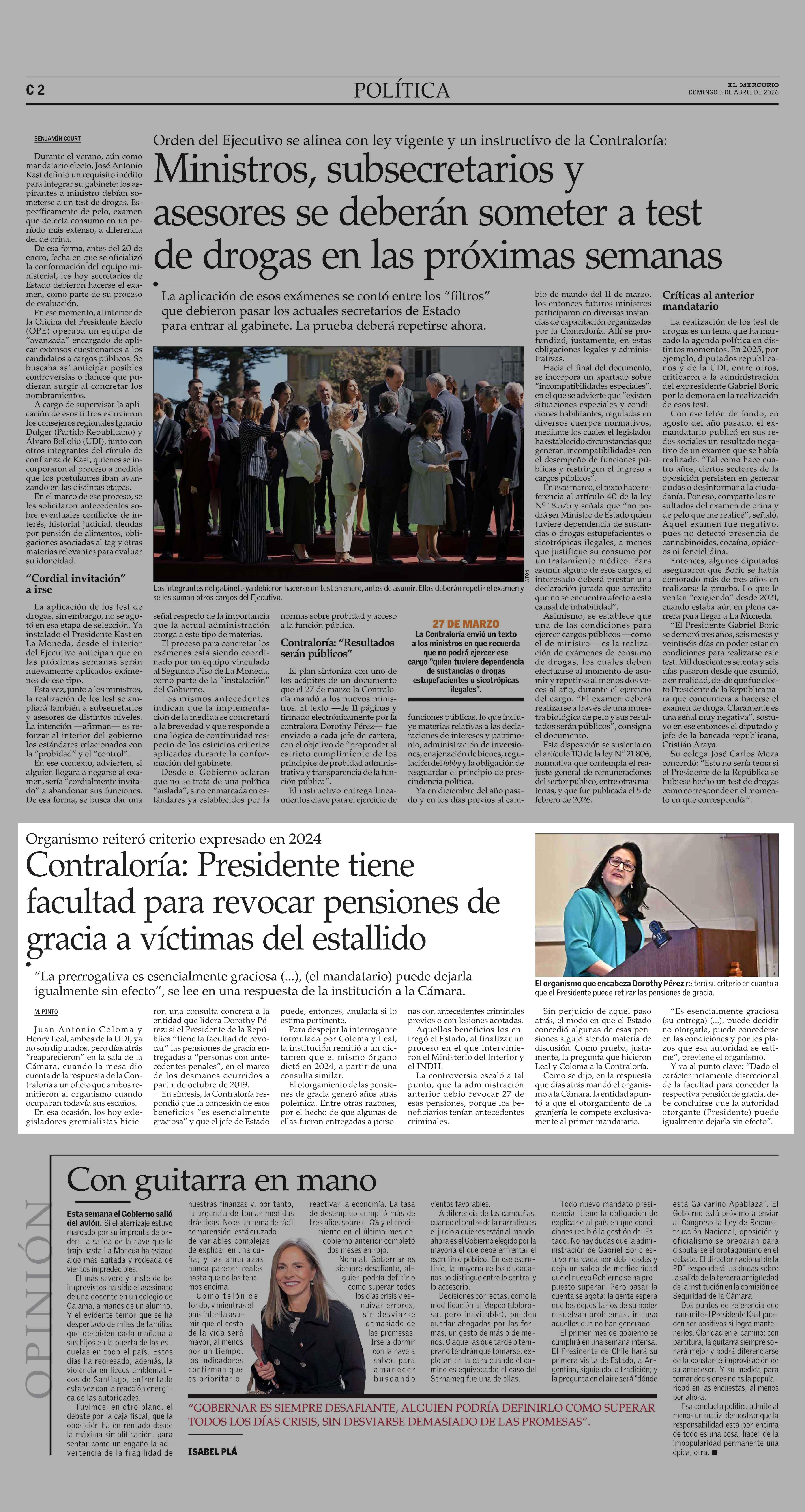 Contraloría: Presidente tiene facultad para revocar pensiones de gracia a víctimas del estallido 05-04-2026 El Mercurio |
