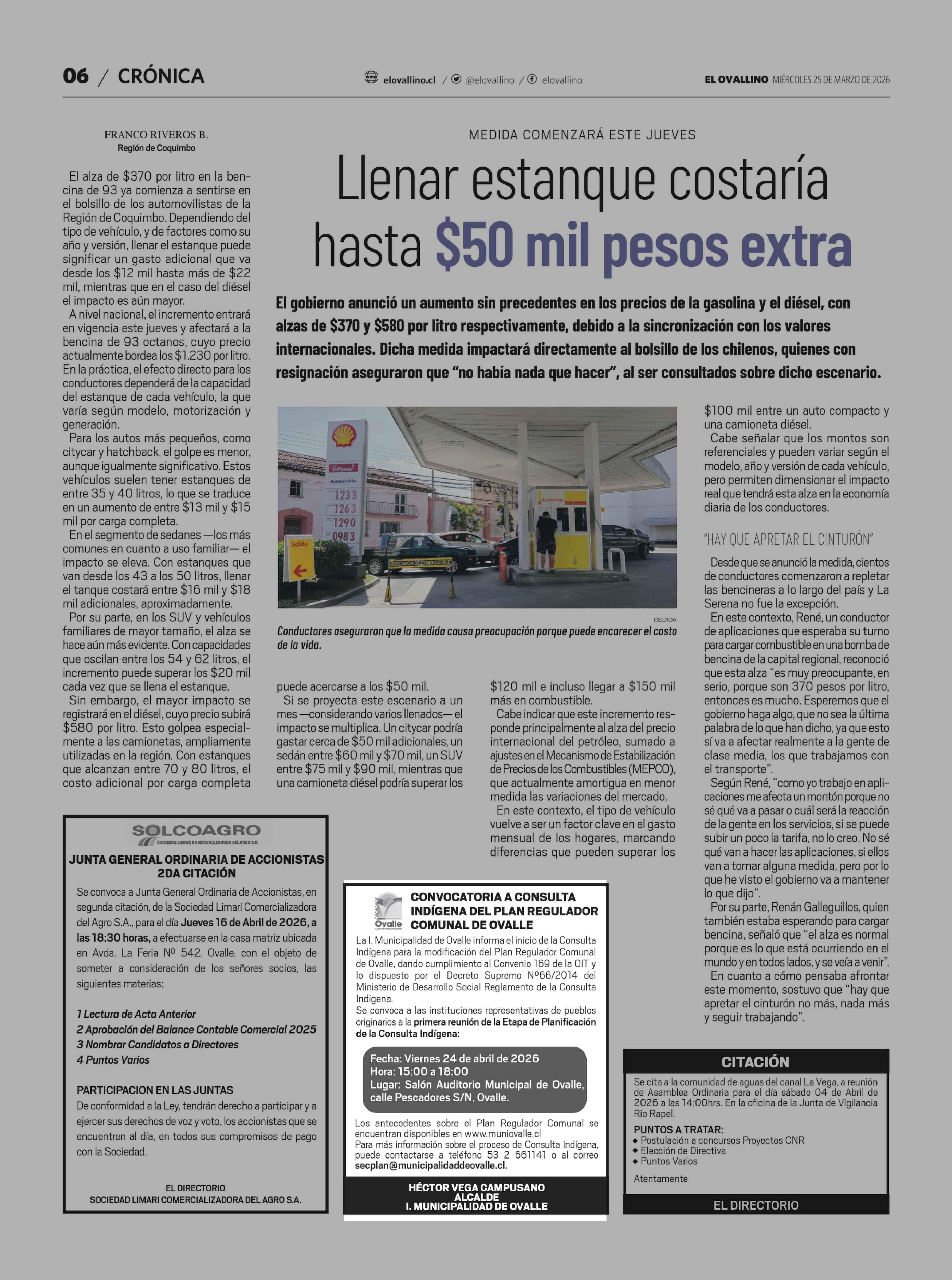 Extractos: CONVOCATORIA A CONSULTA INDÍGENA DEL PLAN REGULADOR COMUNAL DE OVALLE 25-03-2026 El Ovallino |