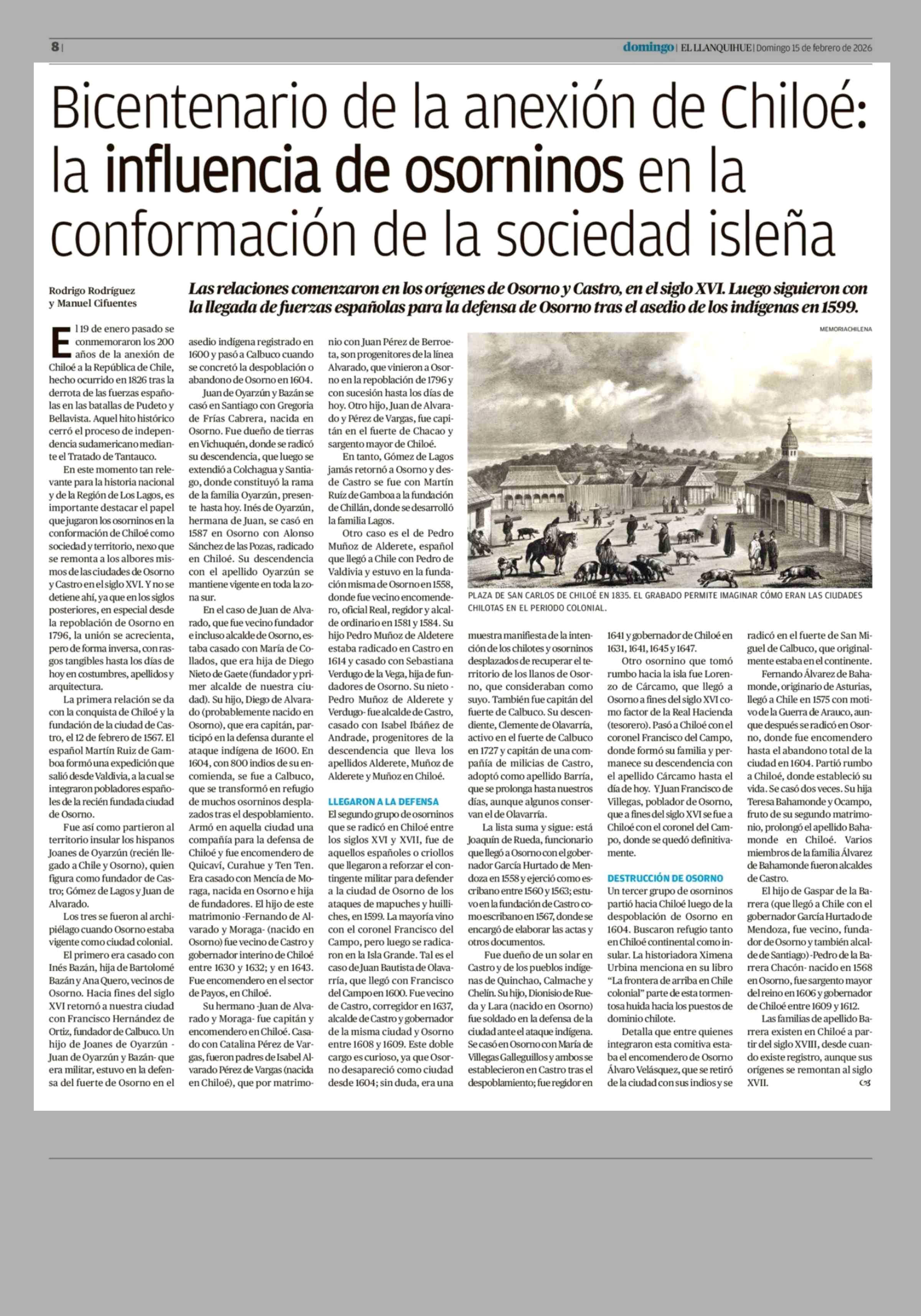 Bicentenario de la anexión de Chiloé: la influencia de osorninos en la conformación de la sociedad isleña