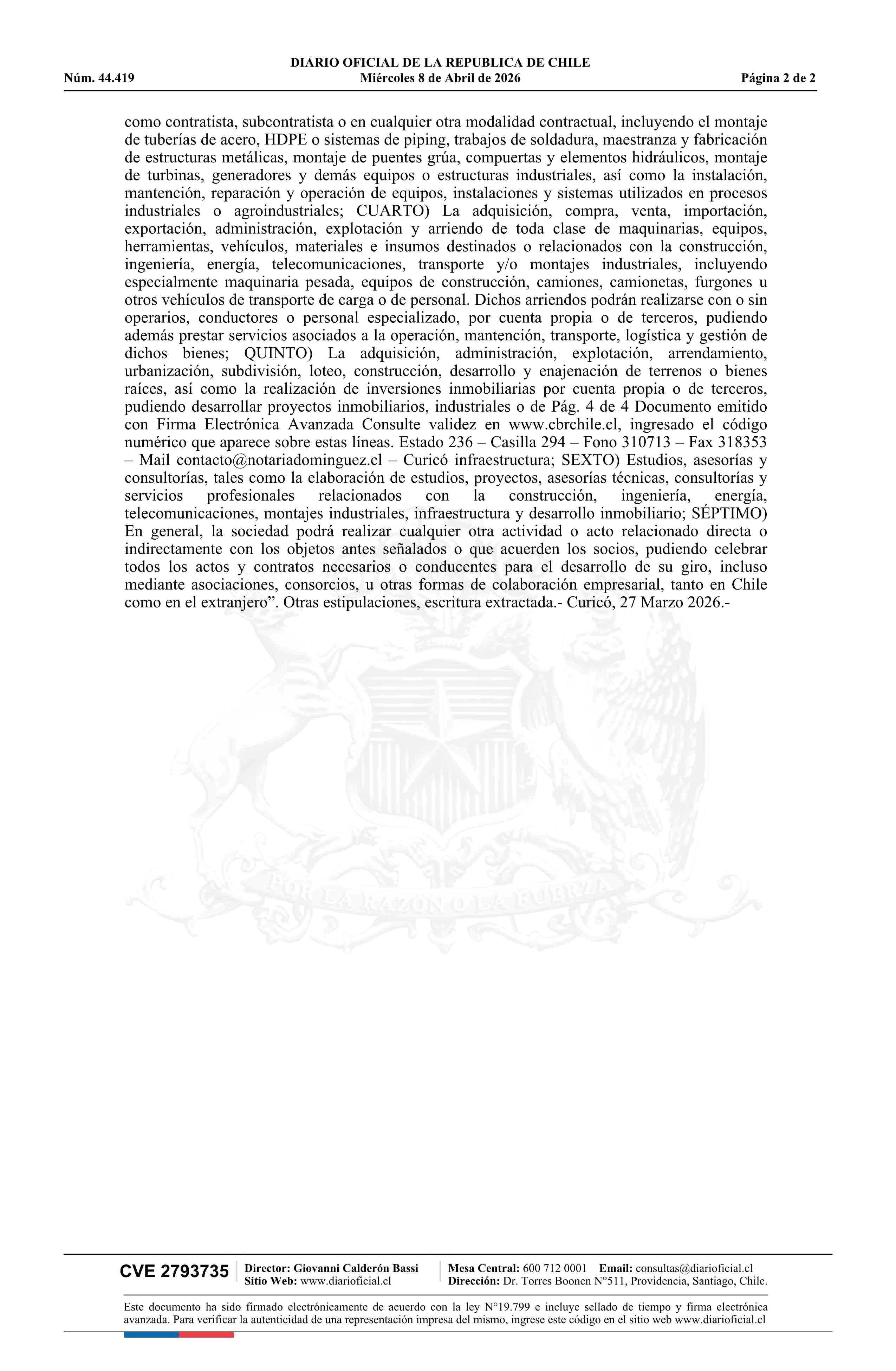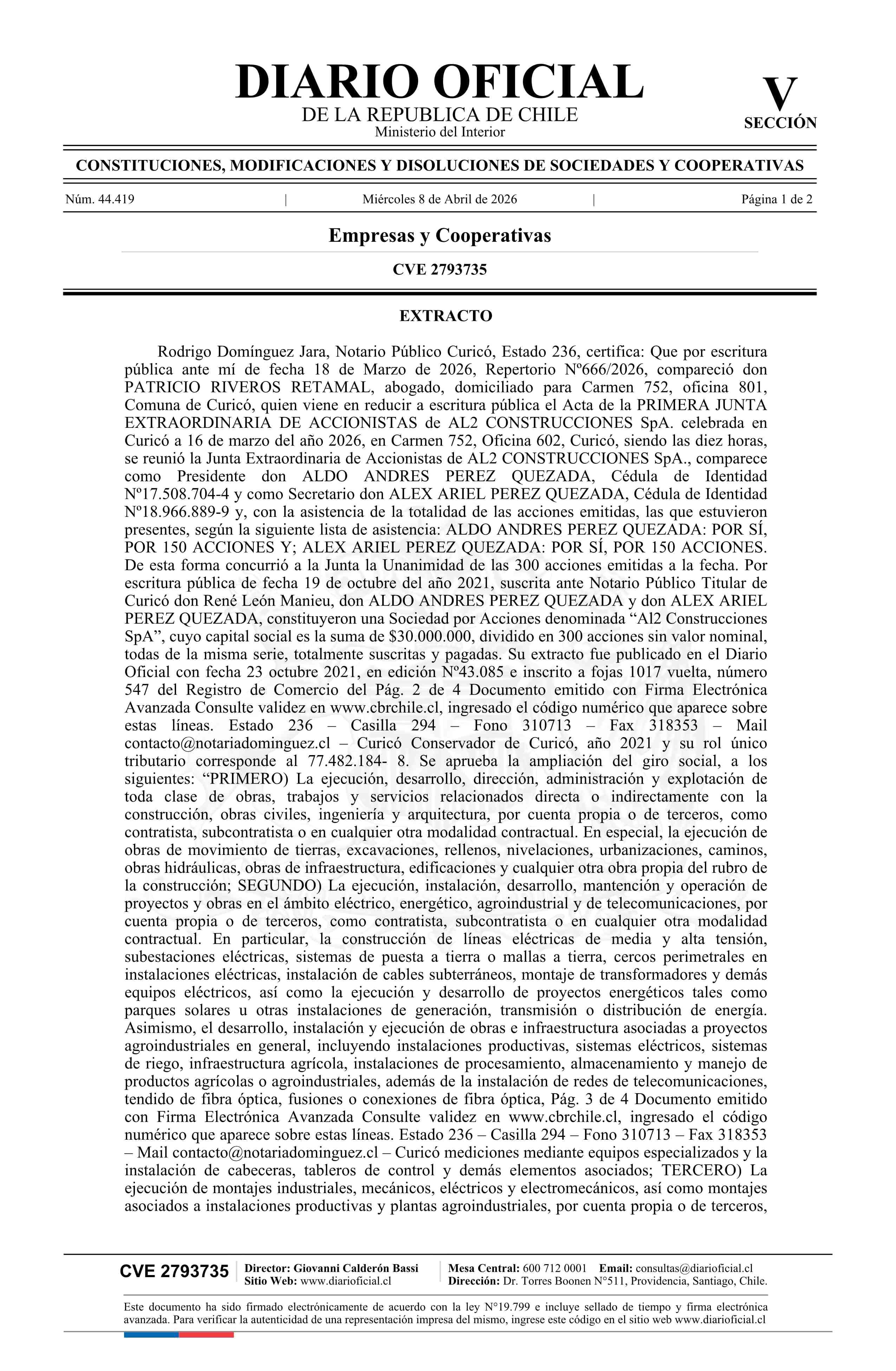 AL2 CONSTRUCCIONES SpA 77.482.184-8* 08-04-2026 Diario Oficial Edición Electrónica |