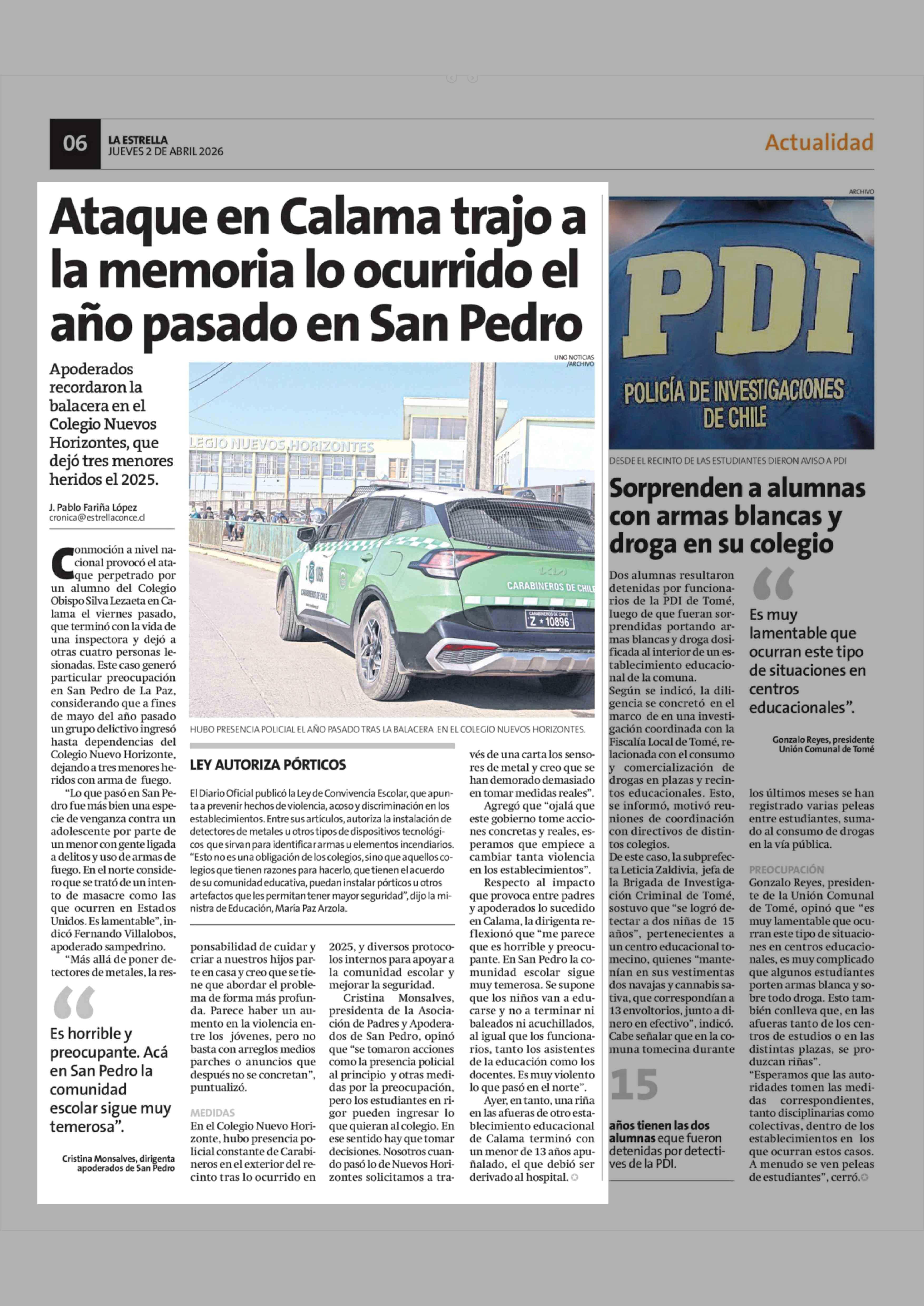 Ataque en Calama trajo a la memoria lo ocurrido el año pasado en San Pedro 02-04-2026 La Estrella de Concepción |