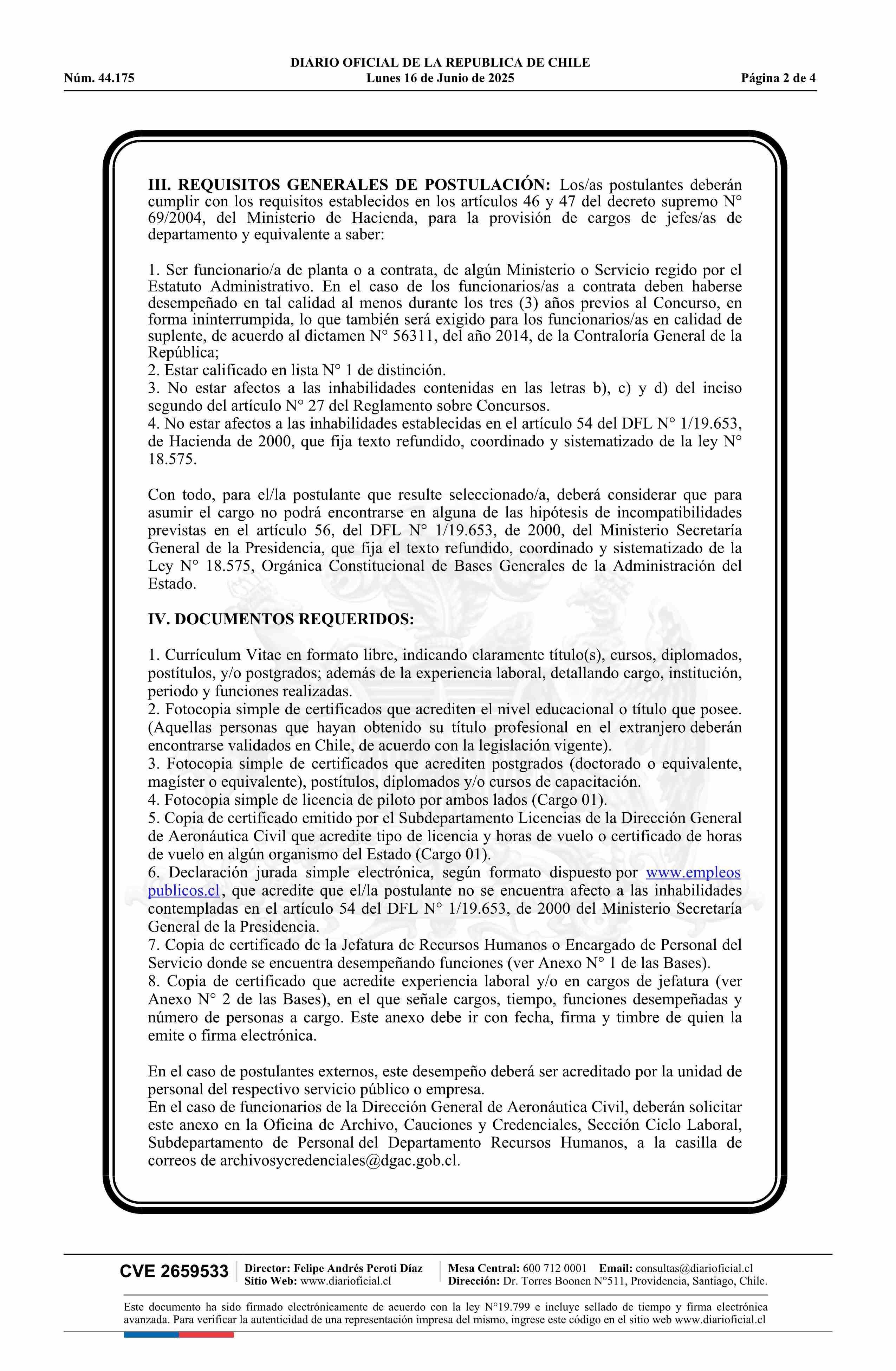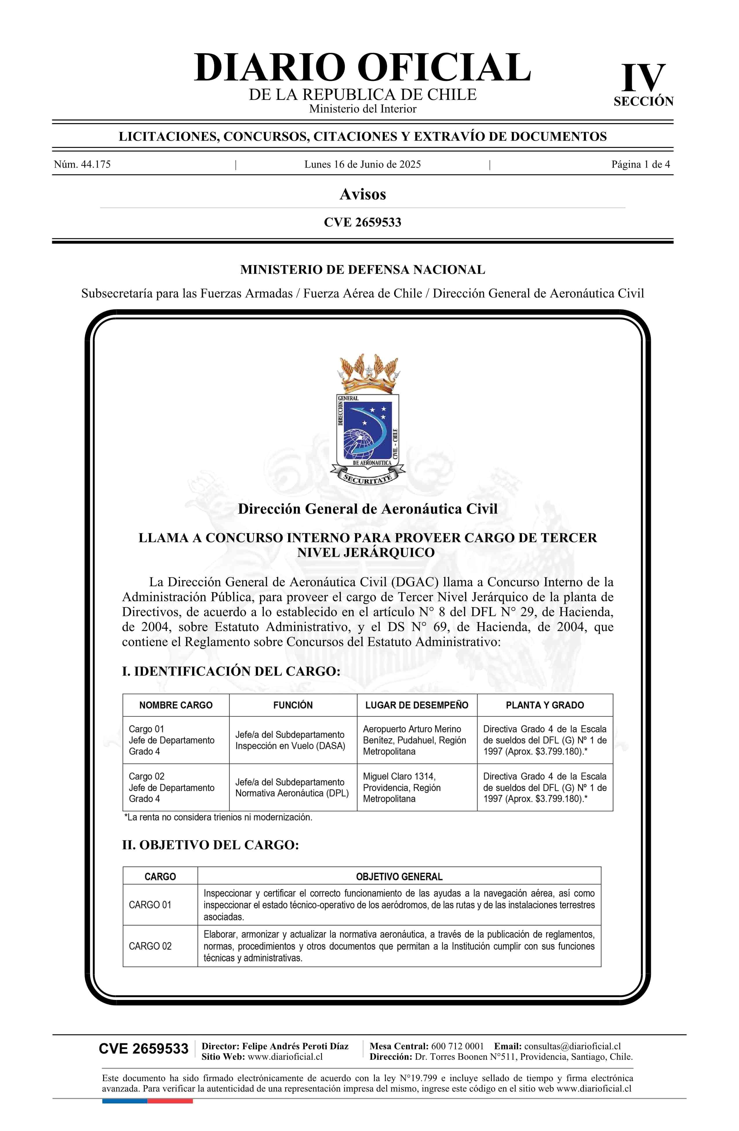 AVISO LICITACIONES: Llama a concurso interno de la Administración Pública, para proveer cargo de tercer nivel jerárquico que indica 16-06-2025 Diario Oficial Edición Electrónica |