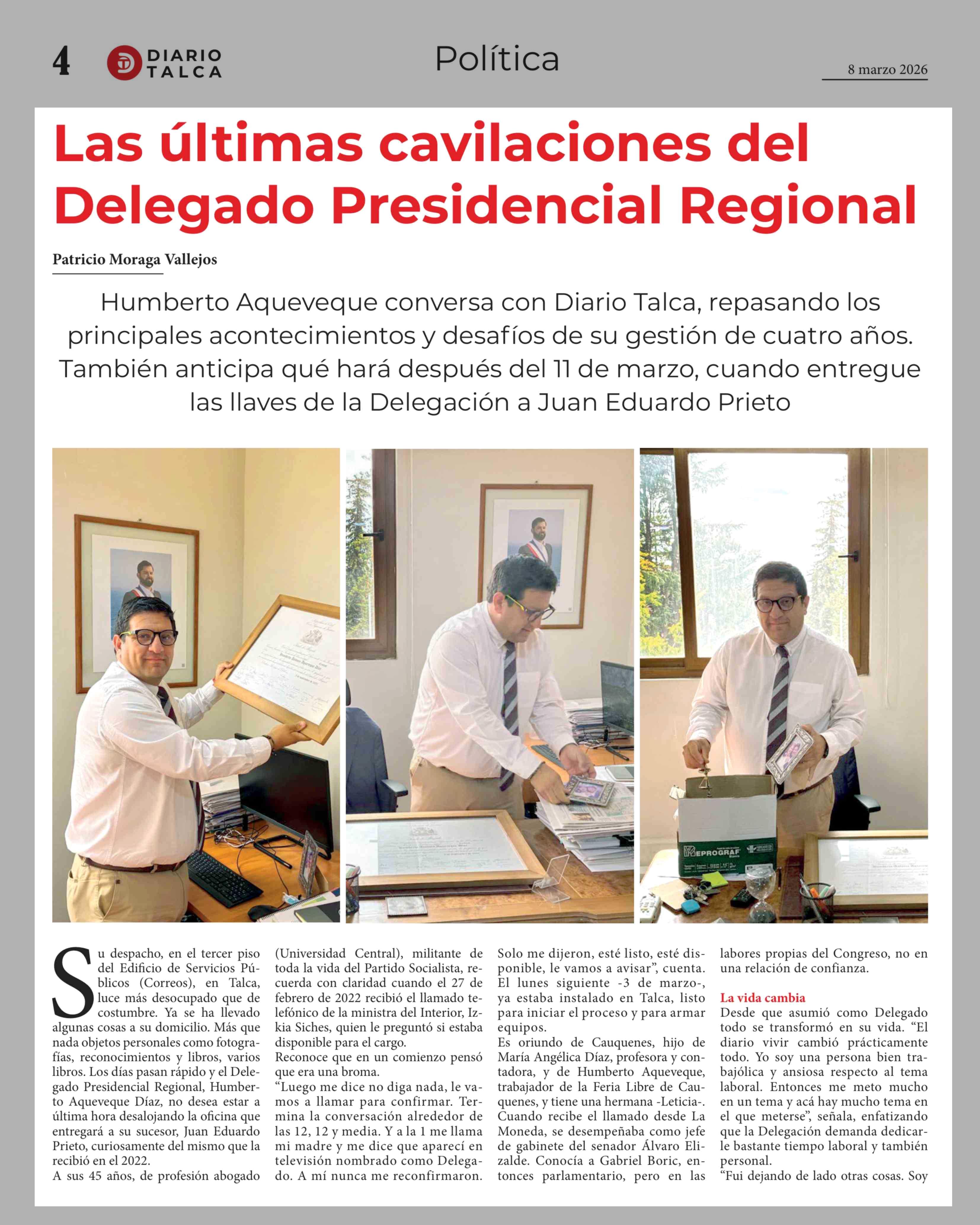 Las últimas cavilaciones del Delegado Presidencial Regional 08-03-2026 Diario Talca |