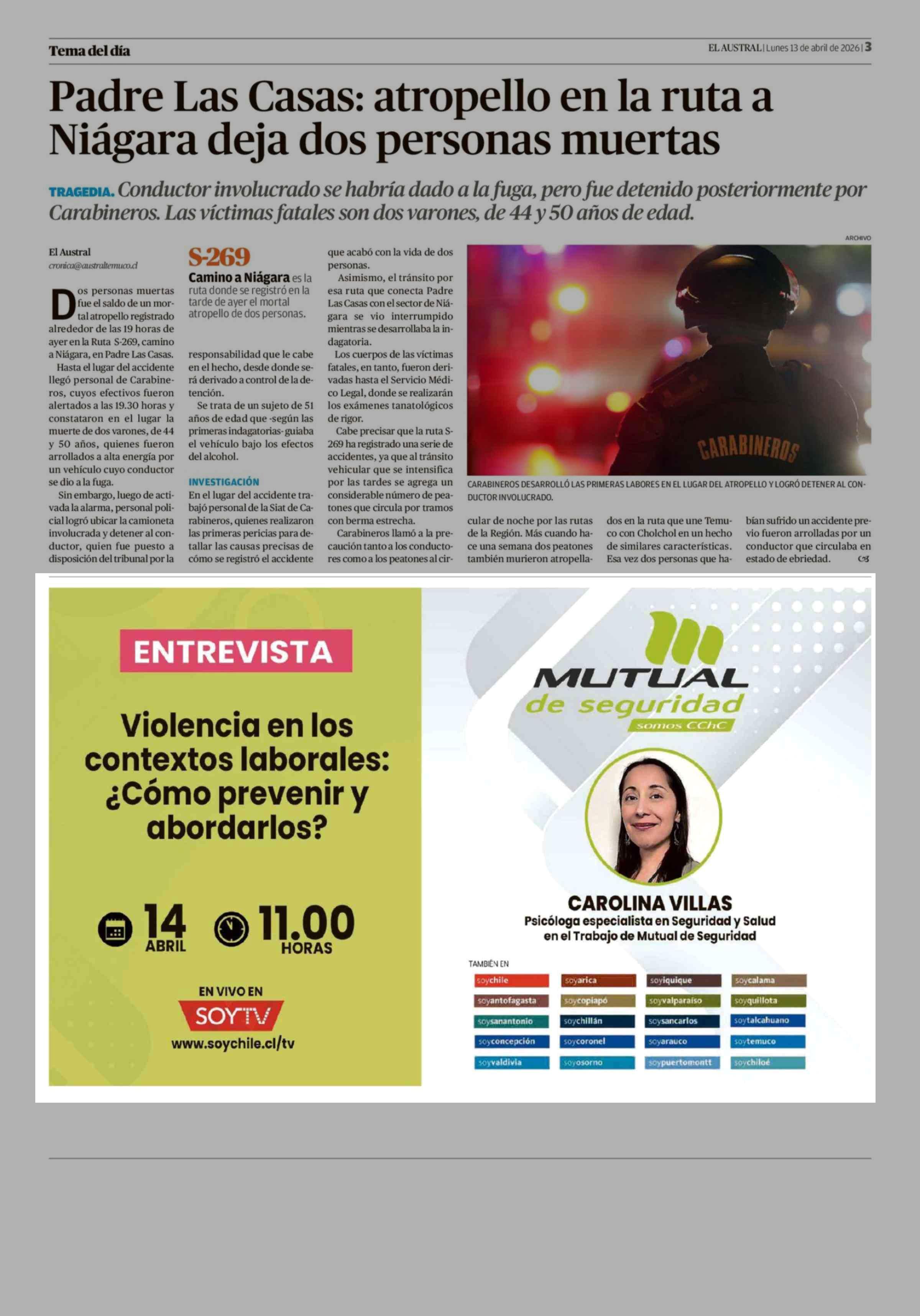 Aviso Publicitario: MUTUAL de seguridad 13-04-2026 El Austral de la Araucanía |