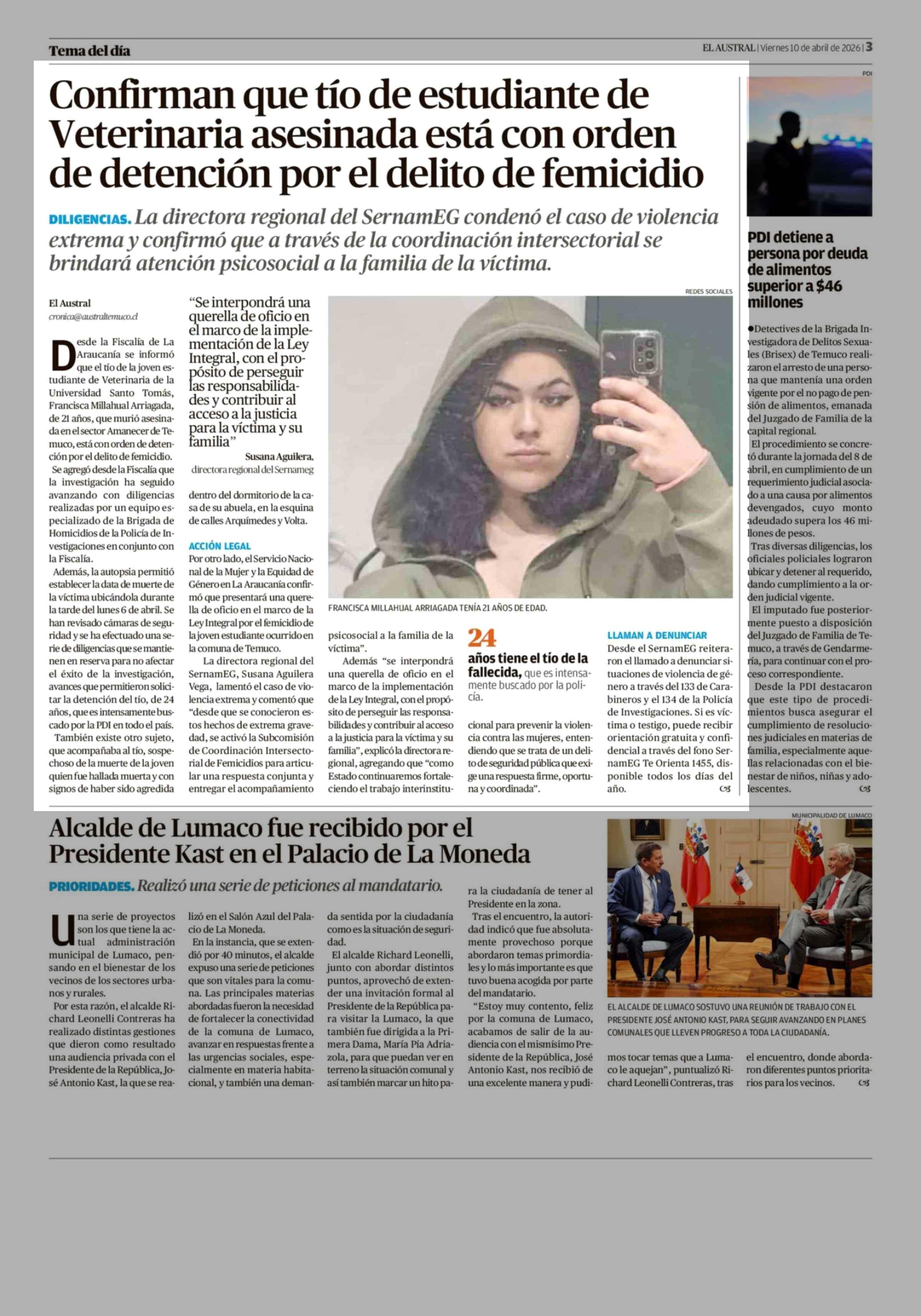 Fuente: El Austral de la Araucanía (El Austral de la Araucanía) Página(s): 3