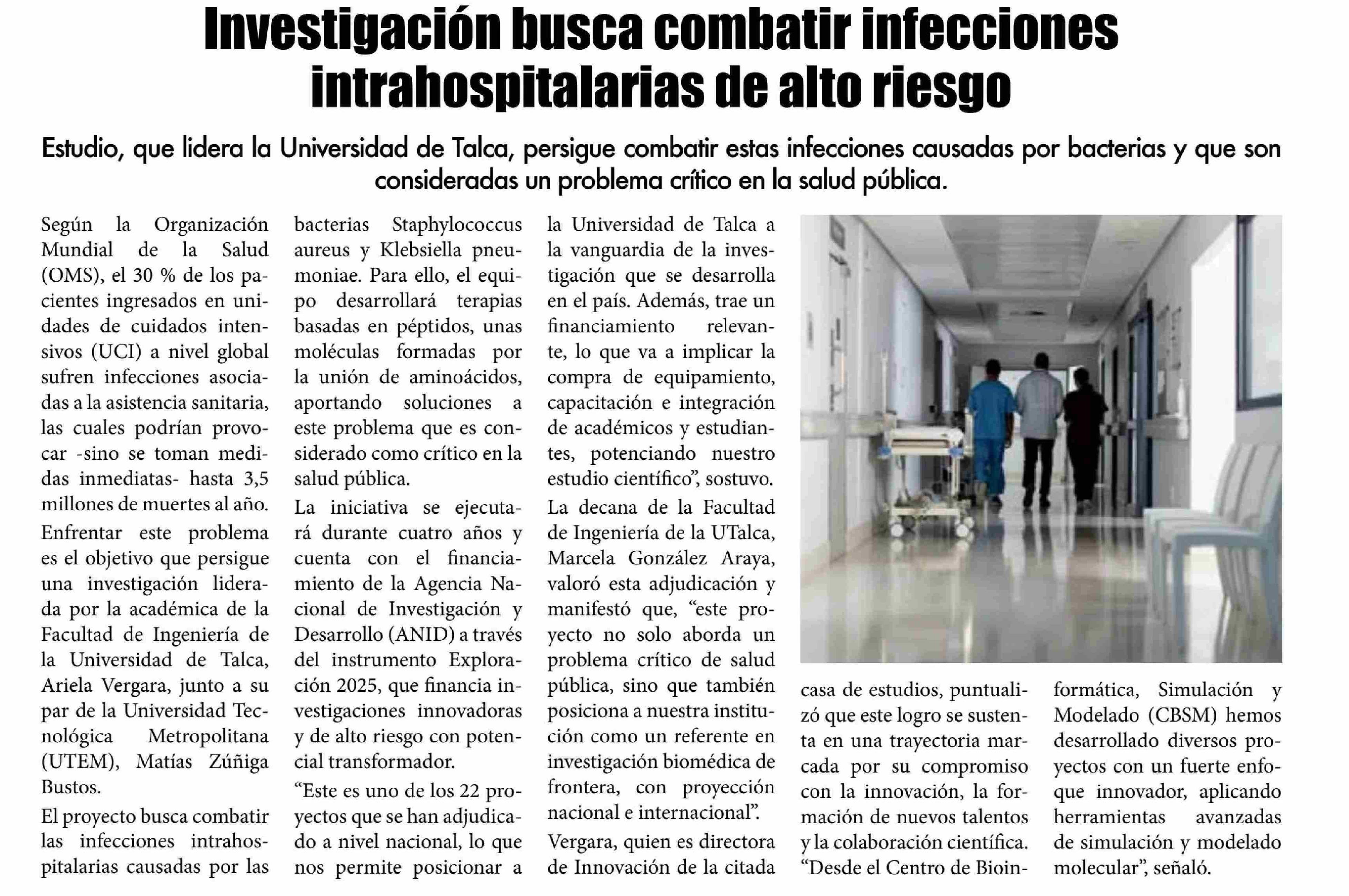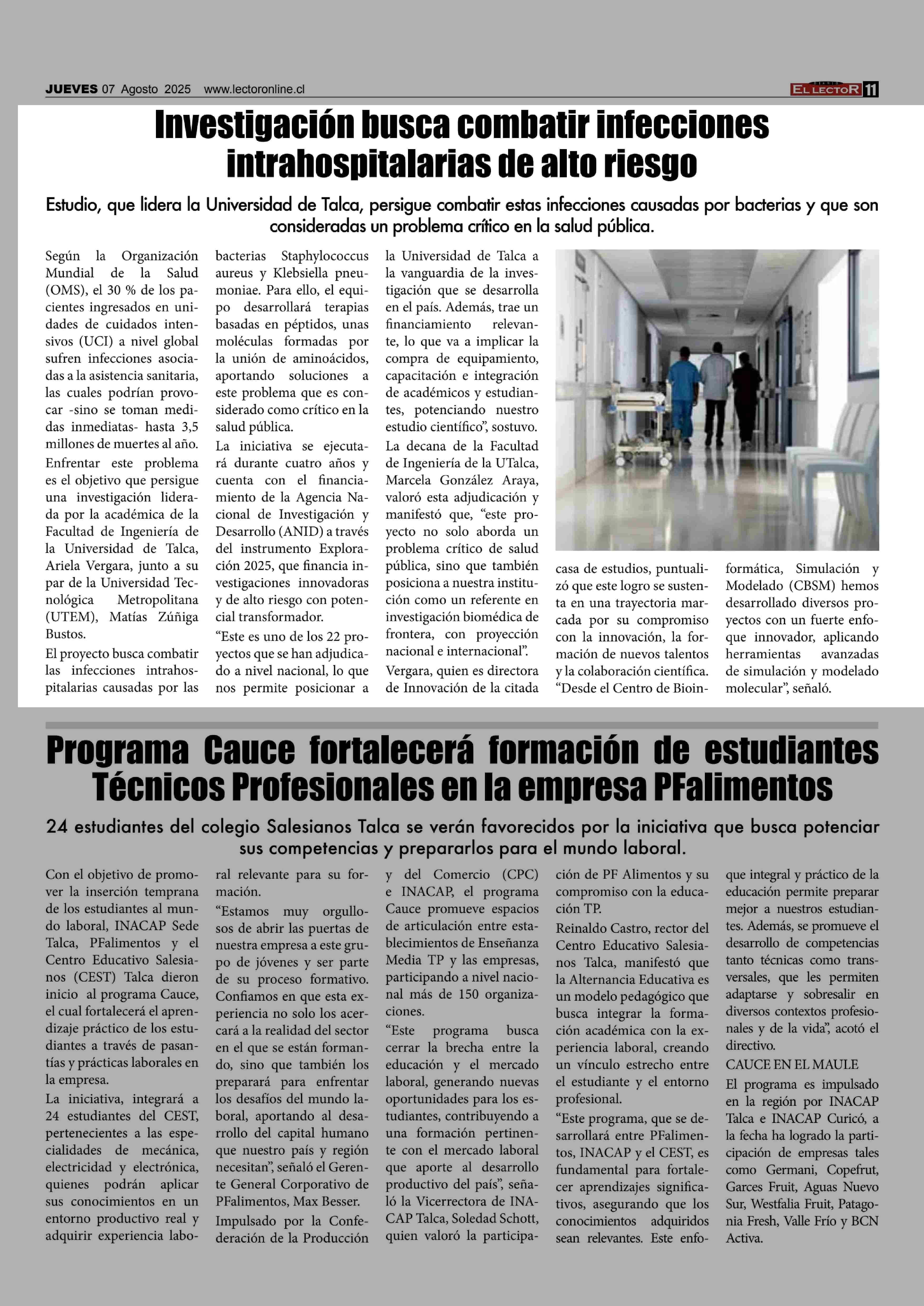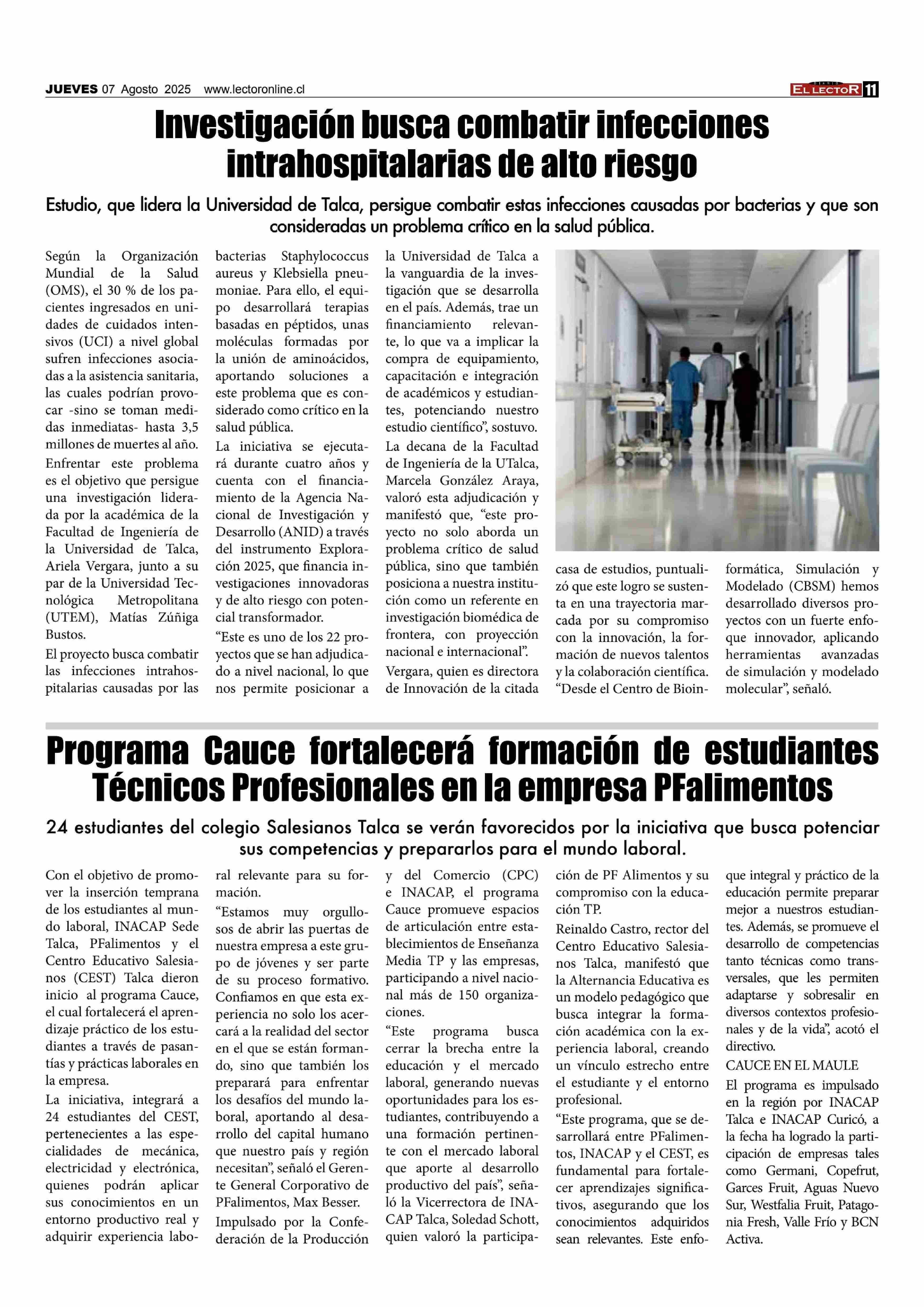 Investigación busca combatir infecciones intrahospitalarias de alto riesgo 07-08-2025 El Lector |